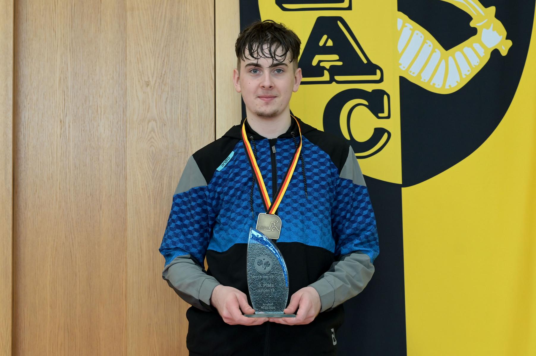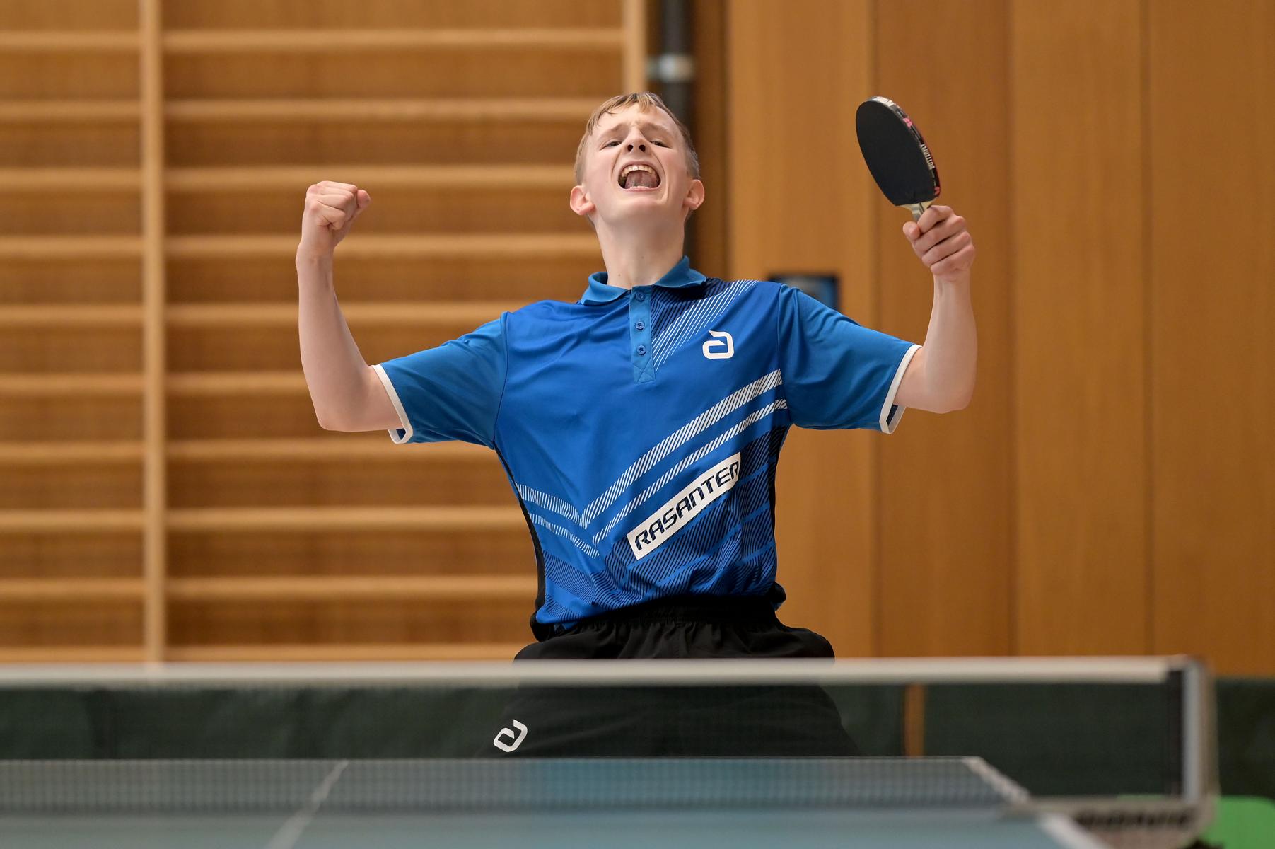 Gold war sein Ziel und Gold brauchte er mit nach Hause. Andre Bertelsmeier war das Maß aller Dinge. Mit einer beeindruckenden Bilanz von 11:0 Spielen und 33:1 in den Sätzen zeigte er eindrucksvoll, welch ein Ausnahmetalent er ist. In einigen Spielen war Andre seinen Gegnern derart überlegen, dass man den Eindruck gewinnen konnte, dass es sich nicht um die besten deutschen Talente handeln würde, die am Wochenende an den Start gingen.