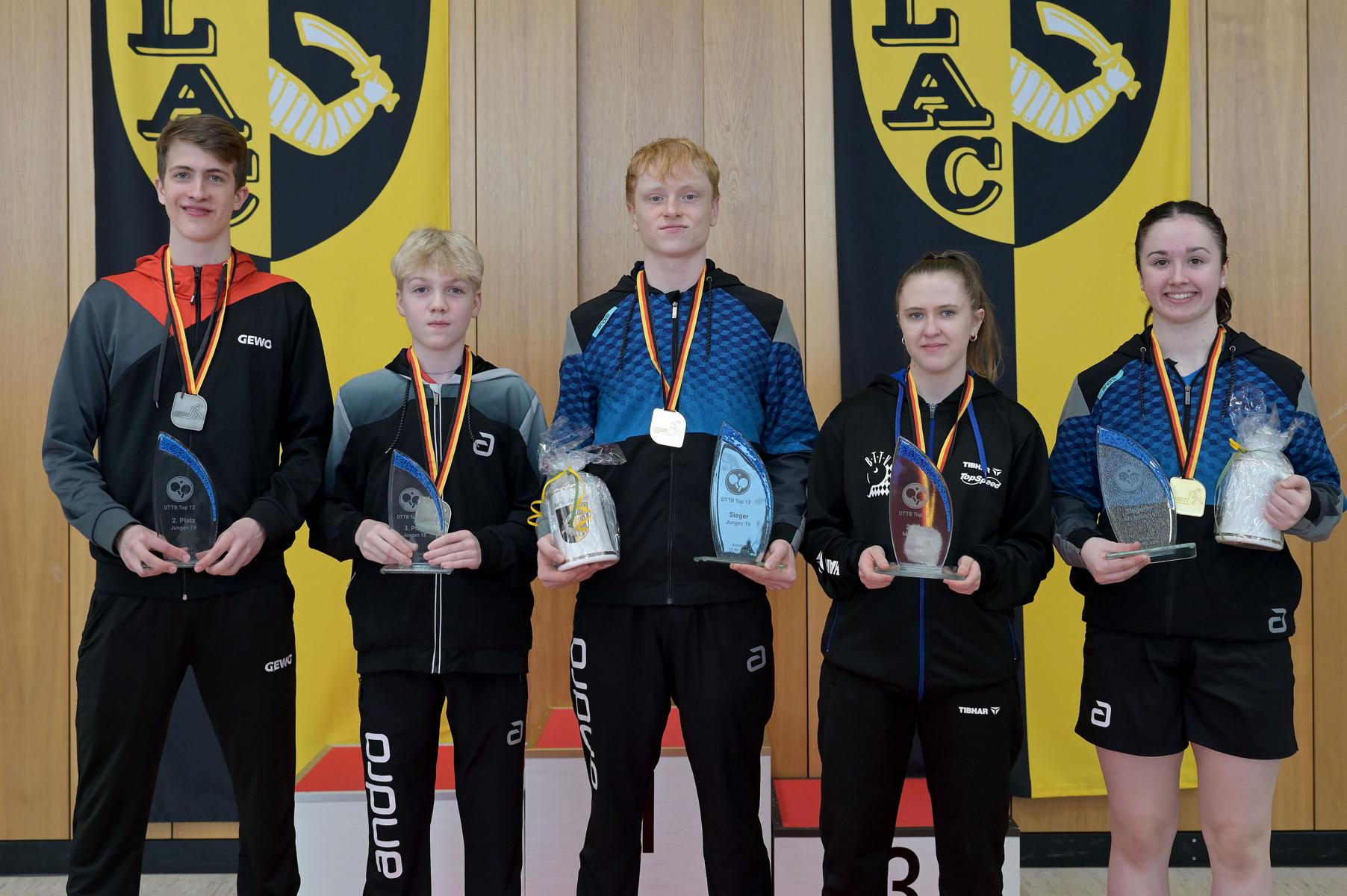 Am vergangenen Wochenende fanden die DTTB TOP 12 Ranglisten der Jugend 15/19 im beschaulichen Arnstorf satt. Leider mussten der zweitplatzierte der DTTB TOP 24 Wim Verdonschot (Borussia Dortmund) und Johann Mangus Mahl (Schalke 04) krankheitsbedingt absagen. So fuhren die Trainer, Betreuer und das Orgateam die mehr als 650km lange Strecke mit folgenden Nachwuchskünstlern des WTTV nach Bayern. Bei den Mädchen 15 starteten Reha Zhu Chen (Borussia Düsseldorf) und Ruoqi Wei (TG Neus). Für die Jugend 19 Ranglisten qualifizierten sich Eireen Kalaitzidou (Borussia Düsseldorf), Luisa Düchting (TTG Langenich), Andre Bertelsmeier (1. FC Köln), Friedrich Kühn von Burgsdorff (Post SV Gütersloh), Jamal Oudriss (TV Refrath) sowie Tobias Sältzer (Borussia Düsseldorf). Und mit 2x Gold und Bronze im Gepäck konnte die Heimreise am Sonntag angetreten werden.