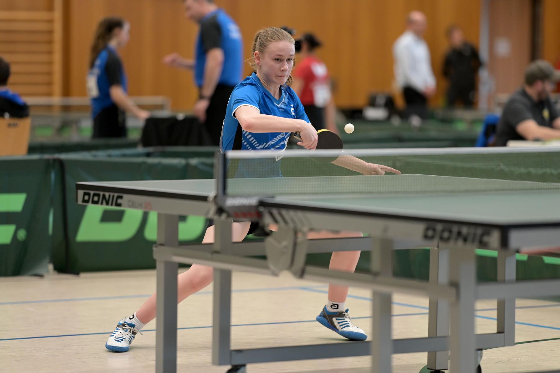 Eireen Kalaitzidou nahm die Favoritenrolle an. War sie doch beim DTTB TOP 24 Ranglistenturnier noch mit Bronze nach Düsseldorf zurückgekehrt, so war es am Sonntagnachmittag die Goldmedaille, die ihr als verdienten Lohn für ihre hervorragenden Leistungen an den Turniertagen überreicht wurde. Zum Schluss standen neun Siege und eine Niederlage auf dem Zettel. Entsprechend groß war ihre Freude bei der Siegerehrung.