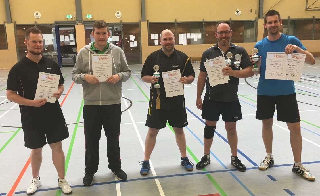 Am 3.Tag der Kreismeisterschaften wurden noch die Herren-B- und -D-Klasse ausgetragen. In der Herren-B-Klasse mit 14 Startern siegte Daniel Wich vom TVE Bad Münstereifel vor Thorsten Wesolowska vom TTV Lommersum. … Weiterlesen