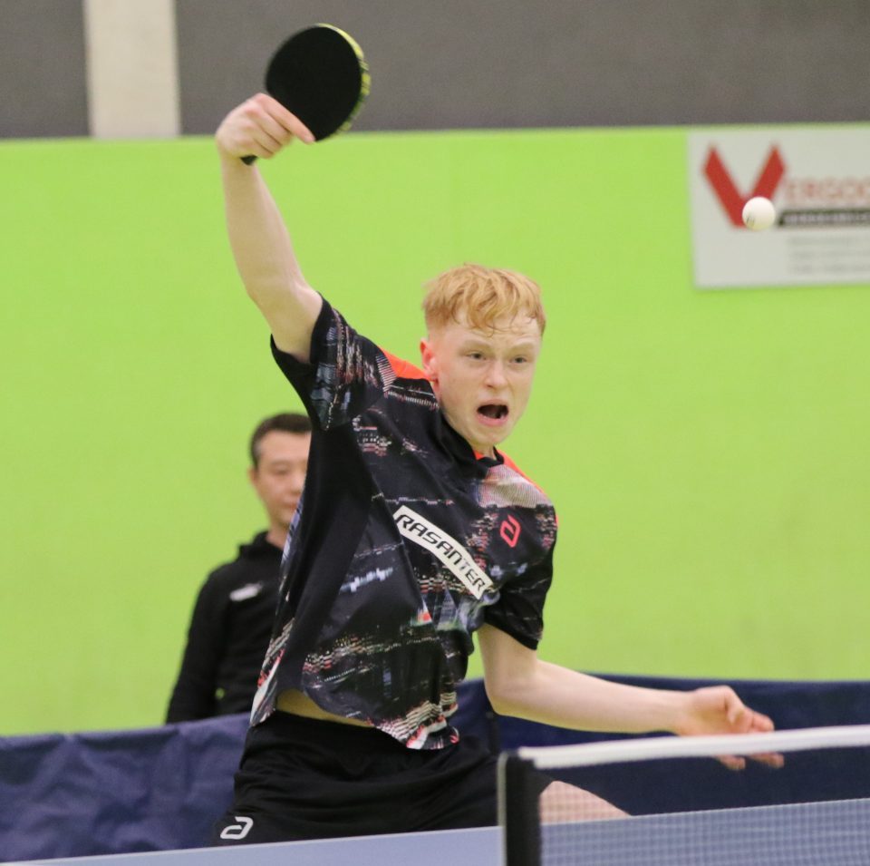 Bei den Herren treffen die großen Favoriten Bertelsmeier/Fadeev auf die klaren Außenseiter Pellny/Oudriss. Und sie machten von Beginn an Ernst. Das Ergebnis von 11:7, 11:5 und 11:7 bringt ihre Überlegenheit deutlich zum Ausdruck. Auch bei den Herren siegt damit kein eingespieltes Doppel. Die neuen Titelträger fanden erst am Vortag zusammen. Fadeev war ohne Doppelpartner angereist, Bertelsmeier wollte eigentlich mit seinem erkrankten Mannschaftskollegen Hippler spielen. Doch als klar war, dass sie gemeinsam antreten würden, waren sie sich sofort sehr sicher: „Wie waren wegen unserer TTR-Werte an 1 gesetzt und das wollten wir auch bestätigen. Glück gehabt, dass wir beide ohne Partner dastanden.“