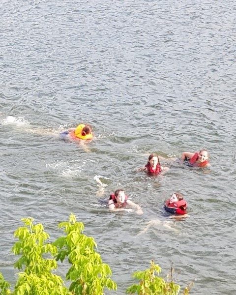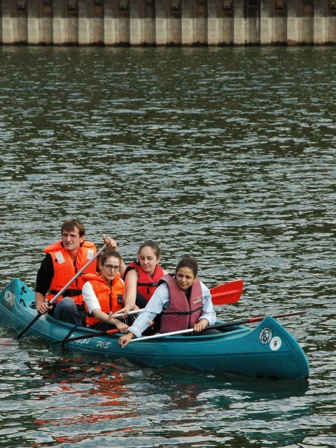 Nach der Stärkung ging es zum Rutschen und Kanufahren. Dank zweier erfahrener Kanuten ging keiner ungewollt schwimmen.