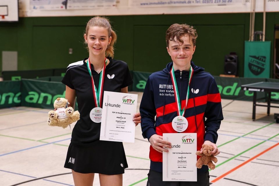 Am Samstag, den 11.06.2022 fand in Iserlohn das WTTV Top32 der Jungen 19 und das WTTV Top24 der Mädchen 19 statt. Bei den Mädchen qualifizierten sich jeweils die Gruppenersten für die Endrunde, in der die Plätze 1-4 ausgespielt wurden. In drei der vier Gruppen konnten sich die Favoritinnen Annika Meens (4:0, 12:1), Angelina Wulff (4:0, 12:0) und Samira Oudriss (5:0, 15:0) deutlich durchsetzen. In der Gruppe C wurde es hingegen sehr knapp. Gleich drei Athletinnen konnten je eine Bilanz von 3:1 erspielen, sodass schlussendlich die Sätze gezählt wurden. Mit 11:5 Sätzen sicherte sich Mara Stoetzel den ersten Platz vor Angela Degueldre (10:6) und Jana Schultza (10:7).