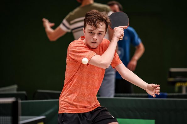 Bei den Jungen wurden zunächst acht 4er Gruppen gespielt, dabei qualifizierten sich die ersten zwei für das KO-Feld der oberen Hälfte, die Gruppendritten und -vierten spielten die Plätze 17-30 aus. Als einziger Abwehrspieler sicherte sich Paul Burkart (DJK Roland Rauxel) den Turniersieg. Im Finale setzte er sich gegen seinen ehemaligen Teamkollegen Marvin Lohsträter (TuS Holzen Sommerberg) in 4 Sätzen durch. Dabei begann das Turnier für Paul nicht so wie erhofft, denn er musste in der Gruppe zunächst eine 3:0 Niederlage gegen Timo Thönnissen (TTC Lövenich) hinnehmen.