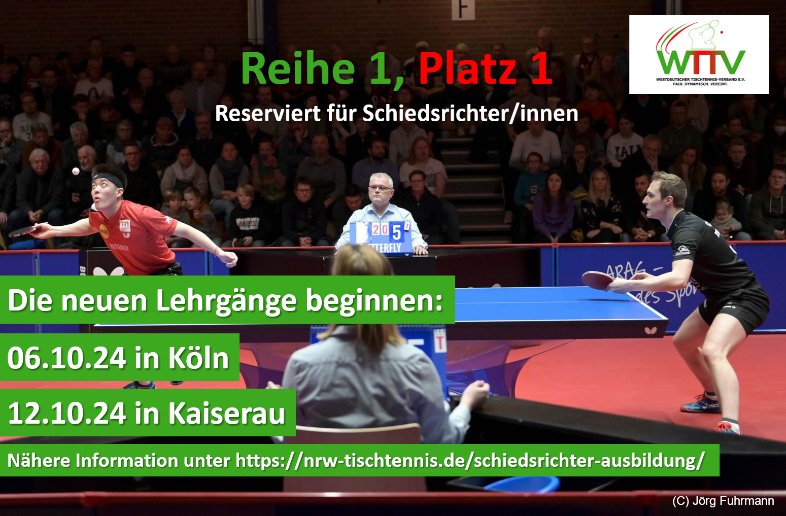 Am 30.05.2024 endete der Frühjahrs-Lehrgang für angehende Schiedsrichter wieder einmal erfolgreich. Der Westdeutsche Tischtennisverband darf sich über sechs neue Verbandsschiedsrichter in seinen Kreisen freuen. Wir gratulieren zur bestandenen Prüfung. Herzlichen … Weiterlesen