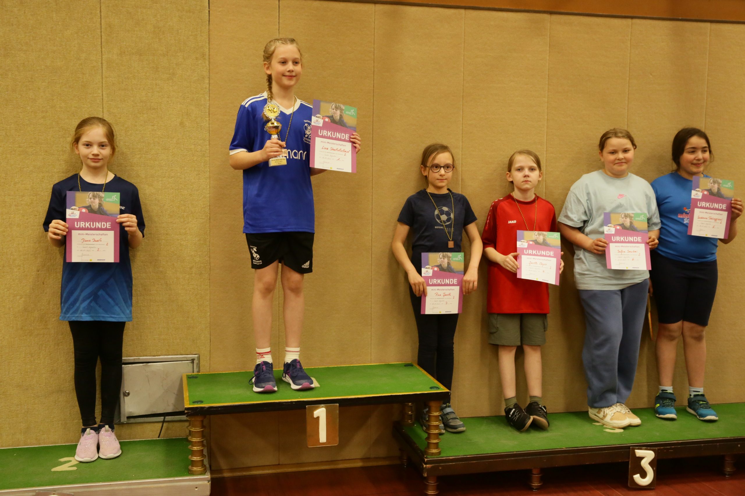 Am 06. April 2025 war es wieder soweit: Der Bezirksentscheid der Minimeisterschaften 2024/25 des Bezirks Rhein-Erft-Sieg fand bei der TTG Sankt Augustin in Sankt Augustin-Menden statt. 115 Mädchen und Jungen im Alter bis zwölf Jahre waren der Einladung von Ressortleiter Johannes Heinzen gefolgt – sie hatten sich seit September 2024 in insgesamt dreizehn Ortsentscheiden für diese Veranstaltung qualifiziert und nahmen mit ihren Eltern teilweise mehr als eine Stunde Fahrzeit in Kauf, um antreten zu können. Besonders erfreulich war, dass alle Mädchenklassen gut besetzt waren – aber auch die Jungenklassen mit Teilnehmerzahlen von bis zu 44 in einer Altersklasse konnten sich sehen lassen.