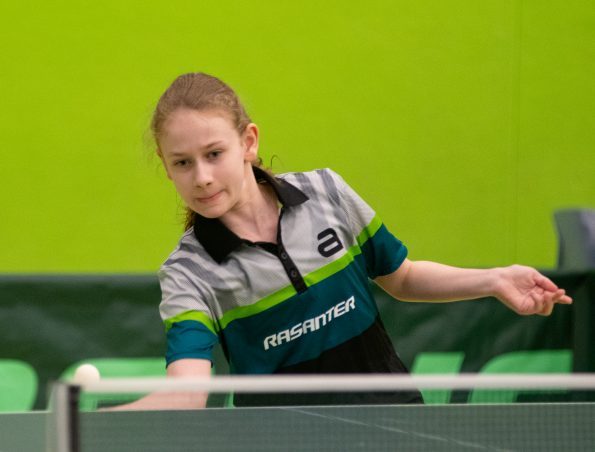 Bei den Schülerinnen erreichten Charlotte Schönau und Hannah Pollmeier durch ihre zweiten Plätze in der Vorrunde die Zwischenrunde, in der es um die Qualifikation für das Achtelfinale geht. Hier traf Hannah auf Franziska Brickl aus Bayern. Nach deutlichem Verlust des ersten Satzes kam Hannah besser ins Spiel, traute sich mehr zu, gewann Satz zwei, konnte das Spiel im Anschluss ausgeglichen gestalten, musste ihrer Gegnerin nach einem 1:3 aber trotzdem gratulieren.
