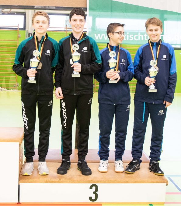 Im Viertelfinale war dann für alle drei WTTV’ler Endstation. Marko Panic traf auf den Favoriten und dritten der Schüler-Weltrangliste, Mike Hollo, aus Bayern und musste die Spielstärke von Mike beim 0:4 anerkennen. Bastian traf auf TOP 12-Sieger Tom Schwaiger aus Bayern. Bastian konnte zwar einen Satz gewinnen, unterlag am Ende aber deutlich mit 1:4. Und Wim schaffte gegen den späteren Deutschen Meister Felix Köhler aus der Pfalz keine weitere Überraschung. Zwar gewann auch Wim einen Satz, musste die Überlegenheit des Pfälzers nach dem 4:1 aber ebenfalls anerkennen.