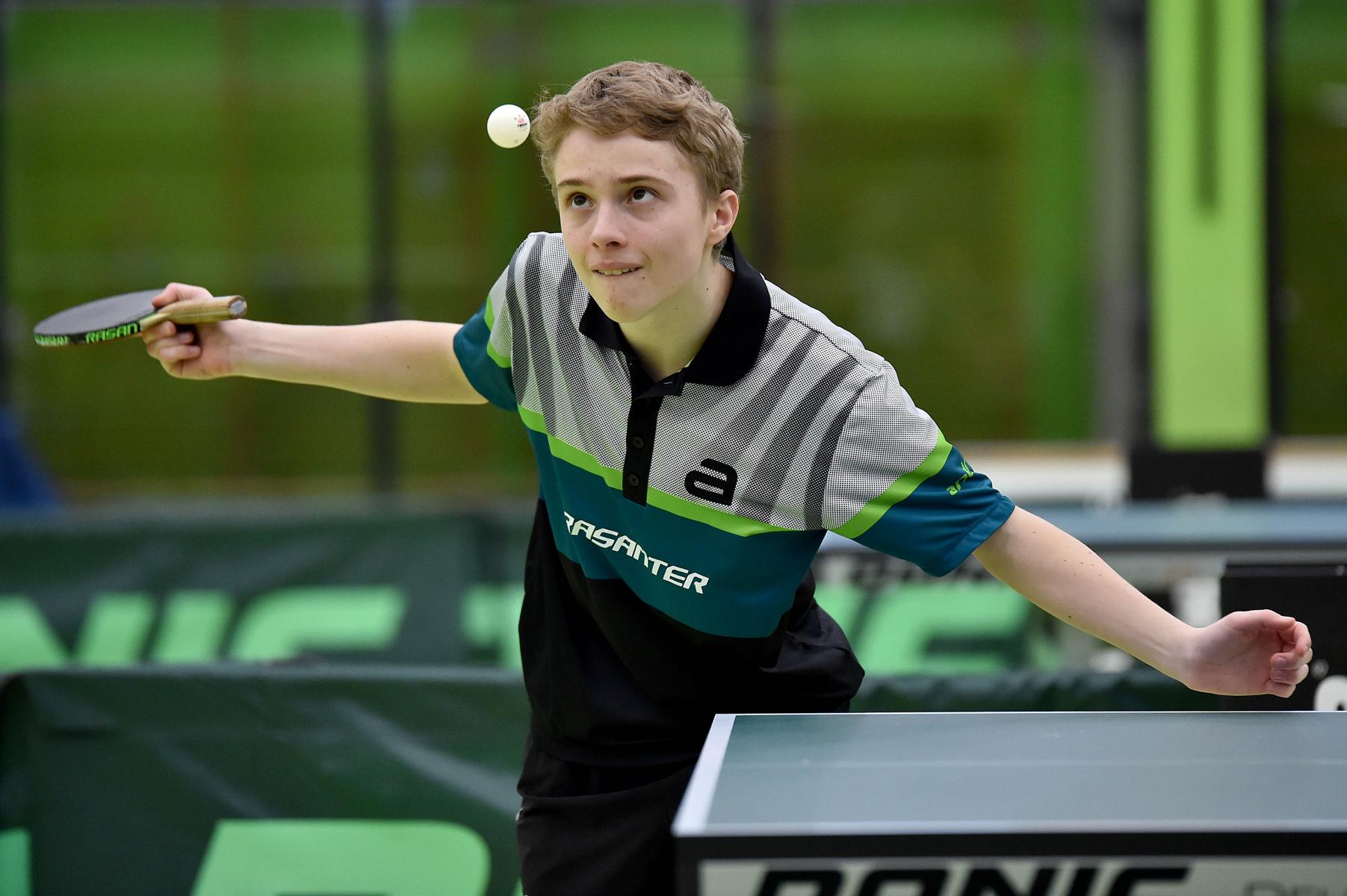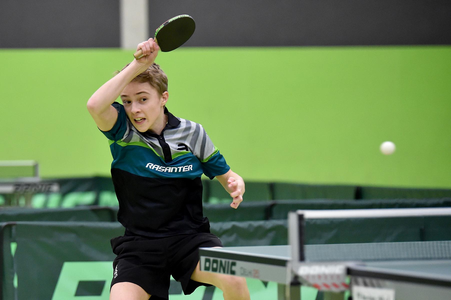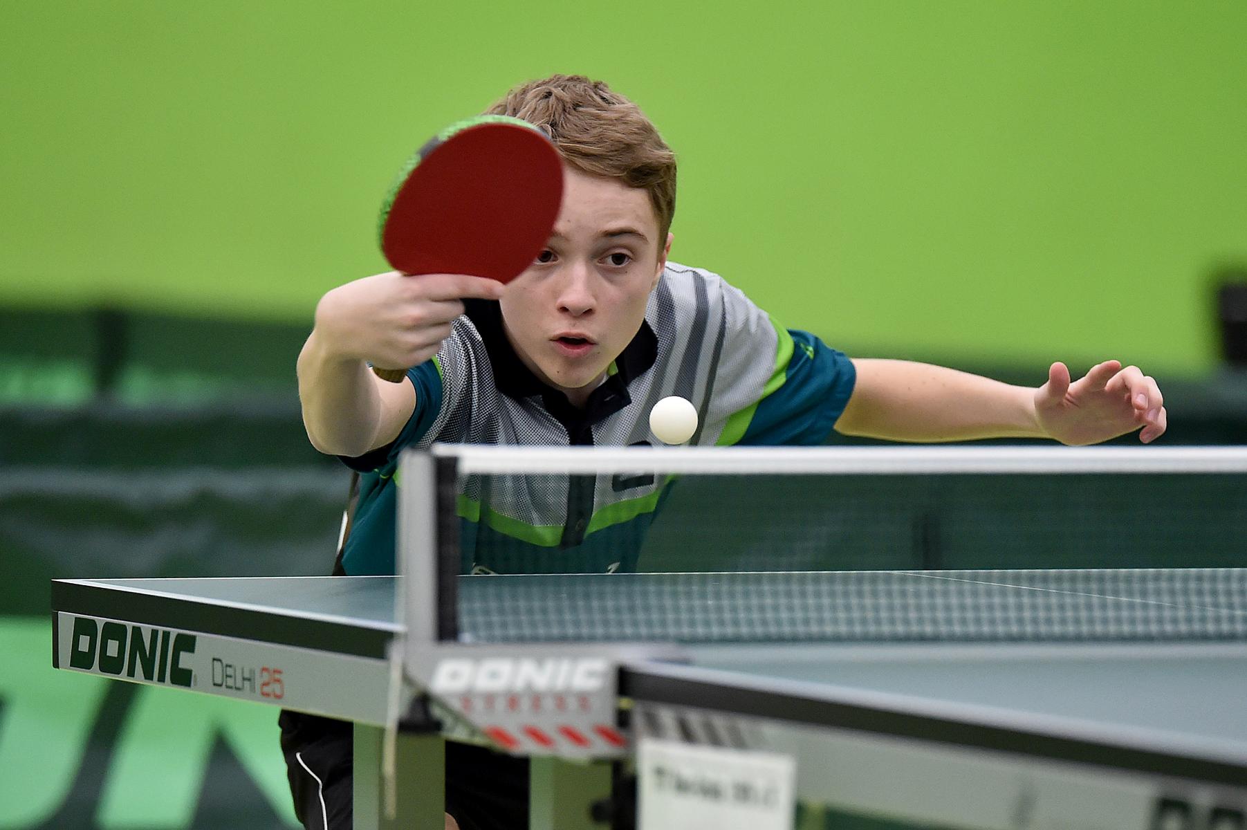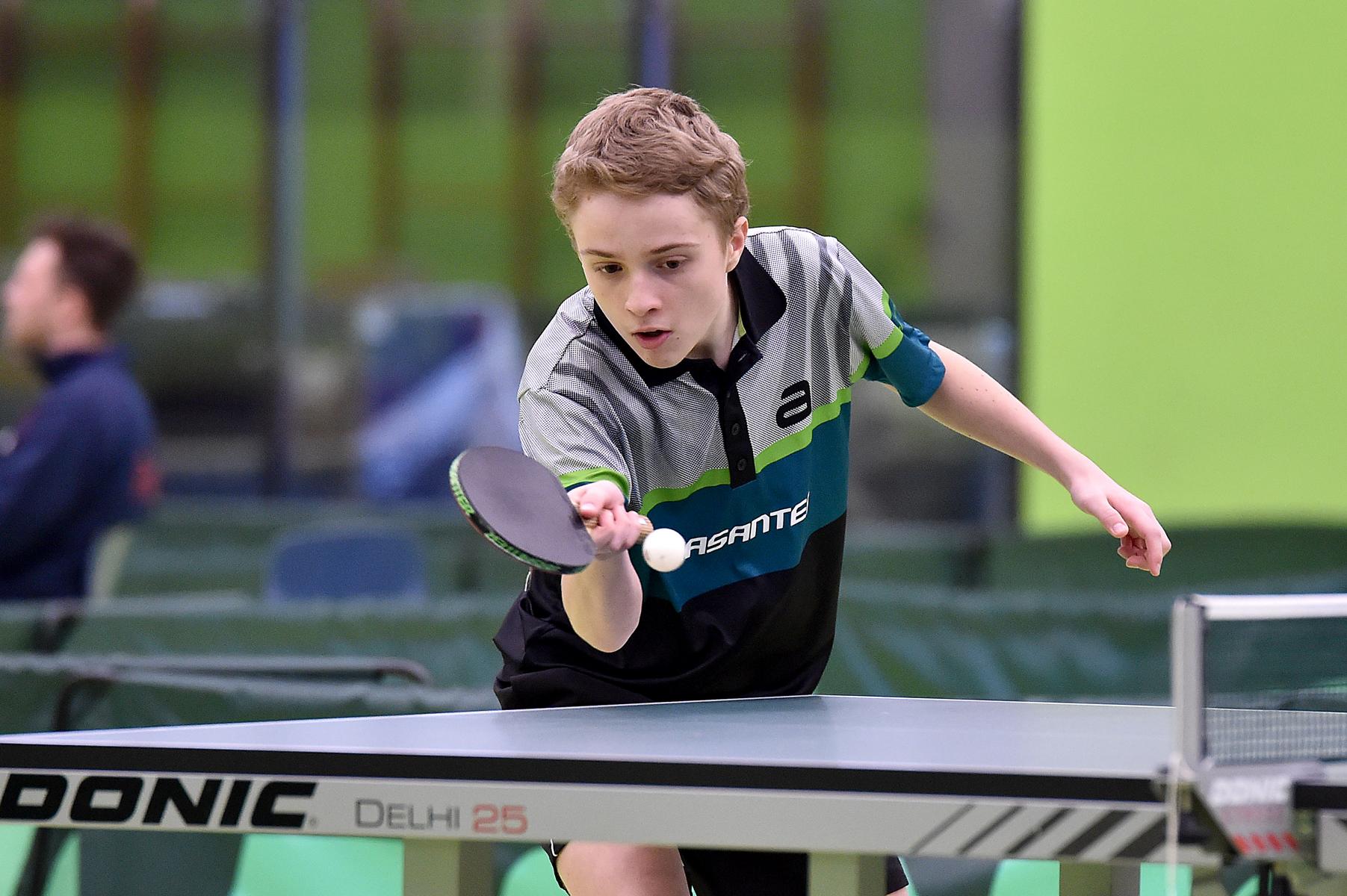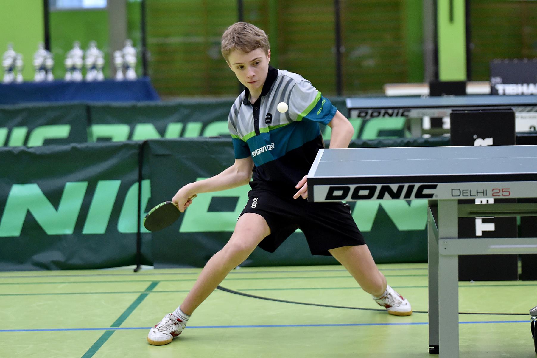 Sehr erfreulich war, dass sowohl Andre Bertelsmeier als auch Wim Verdonschot, die beide noch im nächsten Jahr bei den Schülern startberechtig sind, dieses auch erreichten. Beide kamen mit einer 2:1-Bilanz und damit Platz Zwei in der Gruppe in die Zwischenrunde. Wim traf hier auf Samuel Schürlein (TTBW) und es sah zu Beginn des Spiels gar nicht gut aus. Wim verlor die ersten beiden Sätze. Doch dann zündete er den Turbo, wurde immer offensiver und belohnte sich mit einem 11:3, 11:9, 11:5 und dem damit erreichten Achtelfinale.