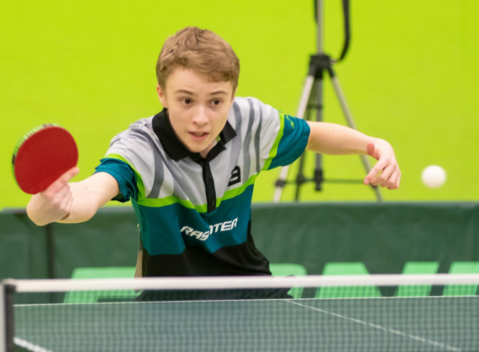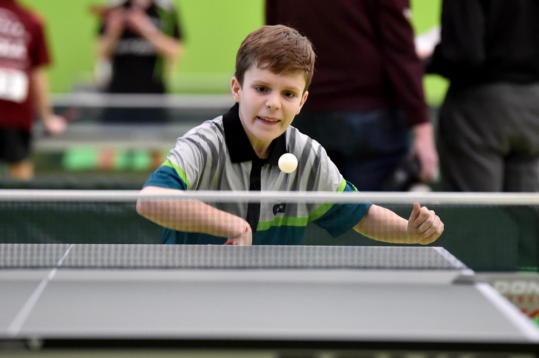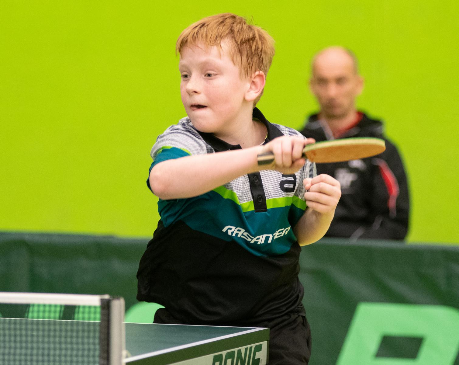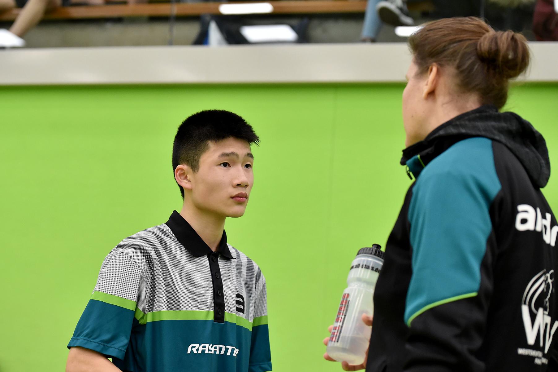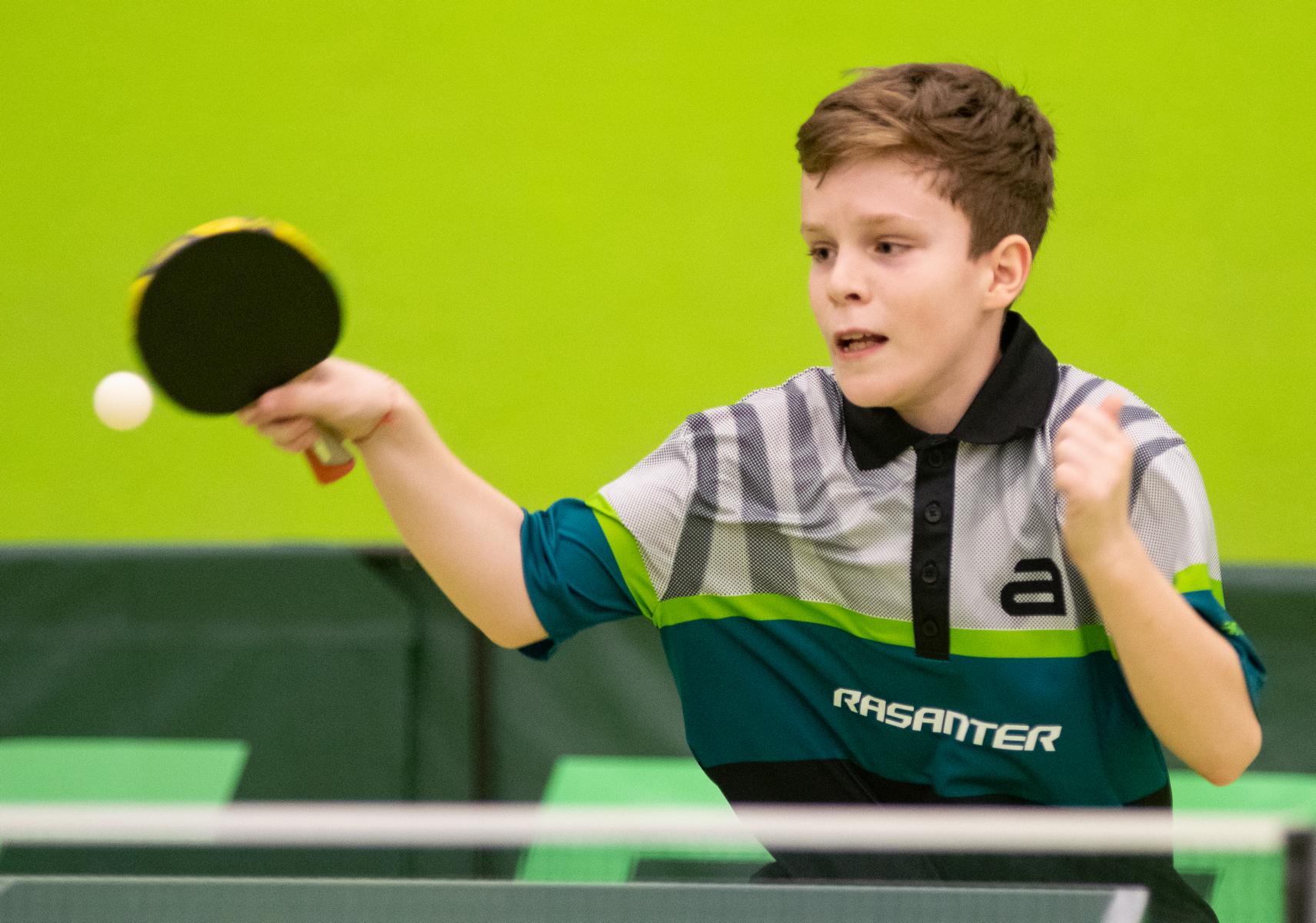 Sehr erfreulich war, dass sowohl Andre Bertelsmeier als auch Wim Verdonschot, die beide noch im nächsten Jahr bei den Schülern startberechtig sind, dieses auch erreichten. Beide kamen mit einer 2:1-Bilanz und damit Platz Zwei in der Gruppe in die Zwischenrunde. Wim traf hier auf Samuel Schürlein (TTBW) und es sah zu Beginn des Spiels gar nicht gut aus. Wim verlor die ersten beiden Sätze. Doch dann zündete er den Turbo, wurde immer offensiver und belohnte sich mit einem 11:3, 11:9, 11:5 und dem damit erreichten Achtelfinale.