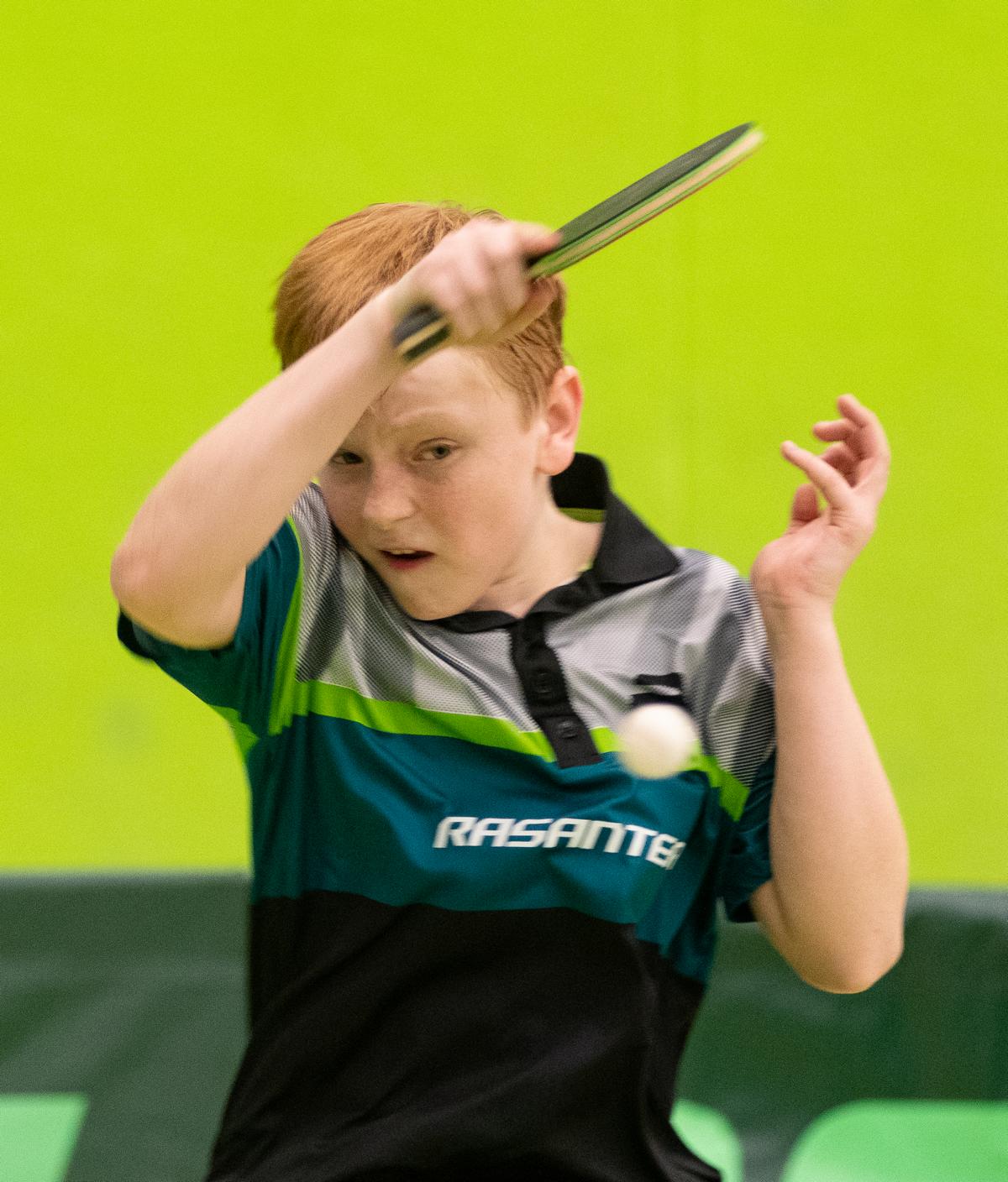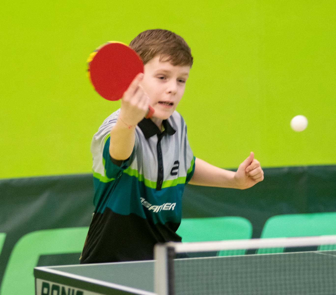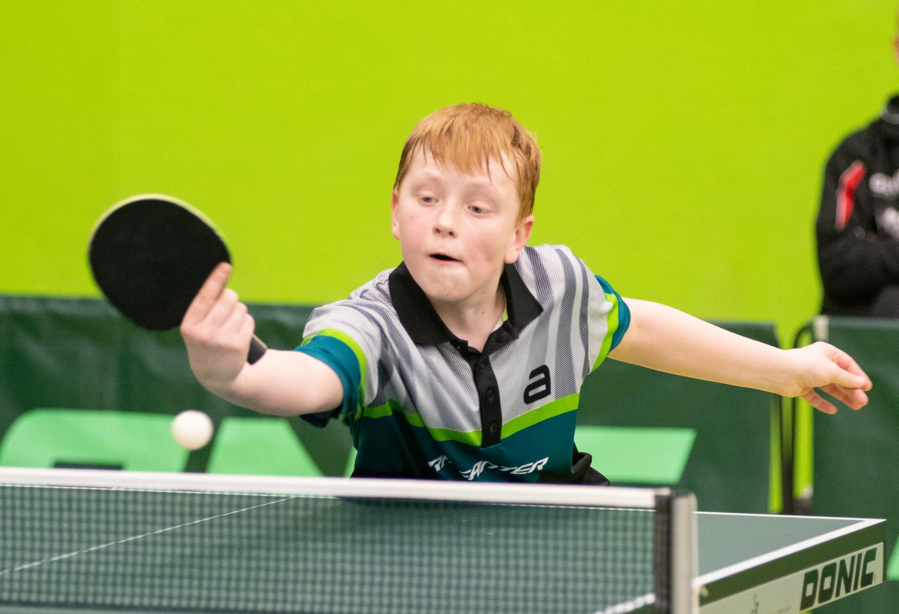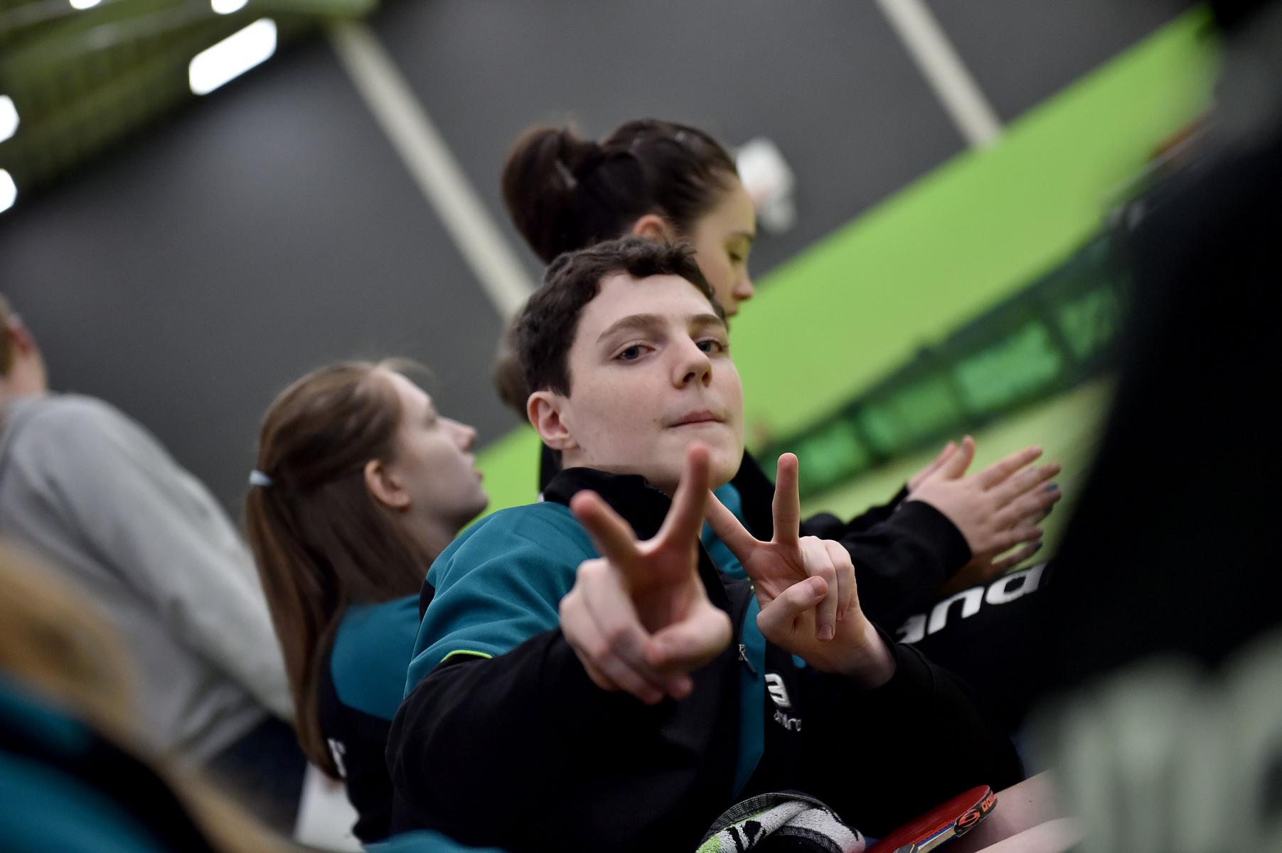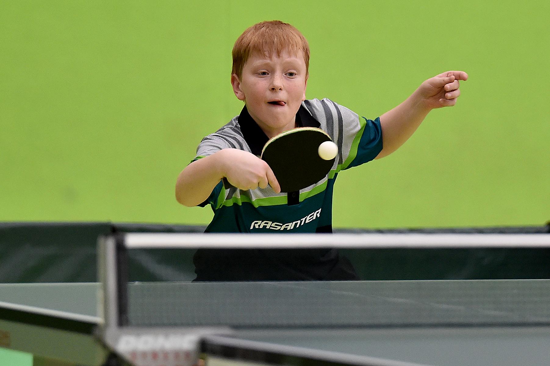 Sehr erfreulich war, dass sowohl Andre Bertelsmeier als auch Wim Verdonschot, die beide noch im nächsten Jahr bei den Schülern startberechtig sind, dieses auch erreichten. Beide kamen mit einer 2:1-Bilanz und damit Platz Zwei in der Gruppe in die Zwischenrunde. Wim traf hier auf Samuel Schürlein (TTBW) und es sah zu Beginn des Spiels gar nicht gut aus. Wim verlor die ersten beiden Sätze. Doch dann zündete er den Turbo, wurde immer offensiver und belohnte sich mit einem 11:3, 11:9, 11:5 und dem damit erreichten Achtelfinale.