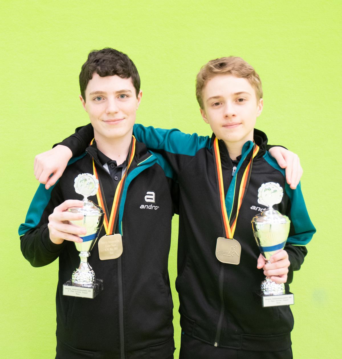 Auf dem Weg zur Bronzemedaille hatten Marko und Marco eine schwierige Situation zu überstehen. Nachdem sie in der ersten Runde ein Freilos hatten, trafen sie im Achtelfinale auf Ding/Knaub (BETTV/BYTTV). Nachdem sie die ersten beiden Sätze gewannen, drohte das Spiel zu kippen und der fünfte Satz musste die Entscheidung bringen. Hier behielten sie aber mit 11:9 am Ende die Nerven. Im Spiel um eine Medaille standen die beiden dann Kohne/Matthias (TTVN) gegenüber. Hier lief die Abstimmung zwischen Marko und Marco schon viel besser und sie holten sich unter großem Jubel durch ein 3:0 die Medaille. Dass es nicht mehr wurde, verhinderten die späteren Deutschen Meister im Doppel Hollo/Köhler (BYTTV/PTTV) eindrucksvoll durch ein 3:1.