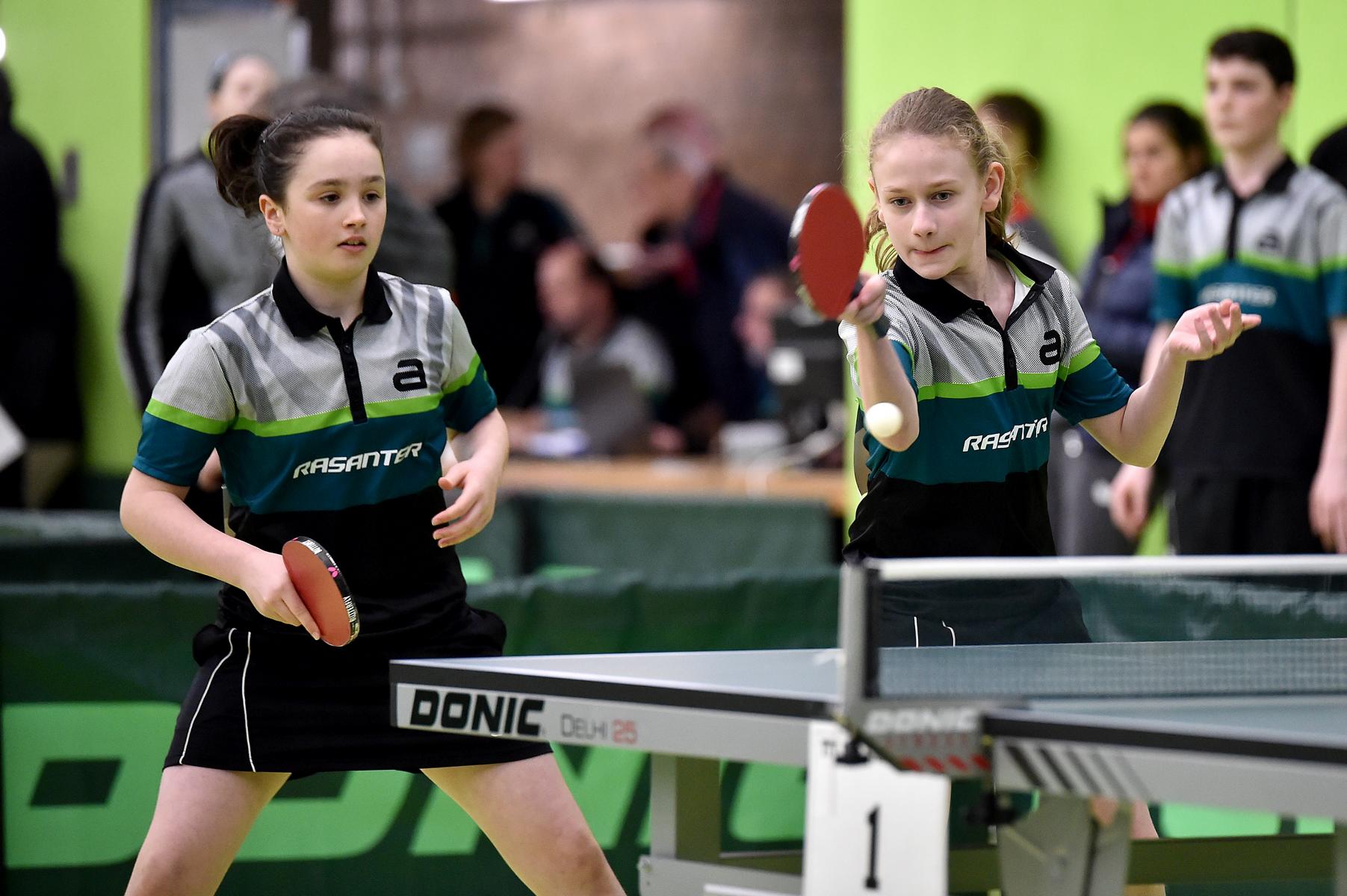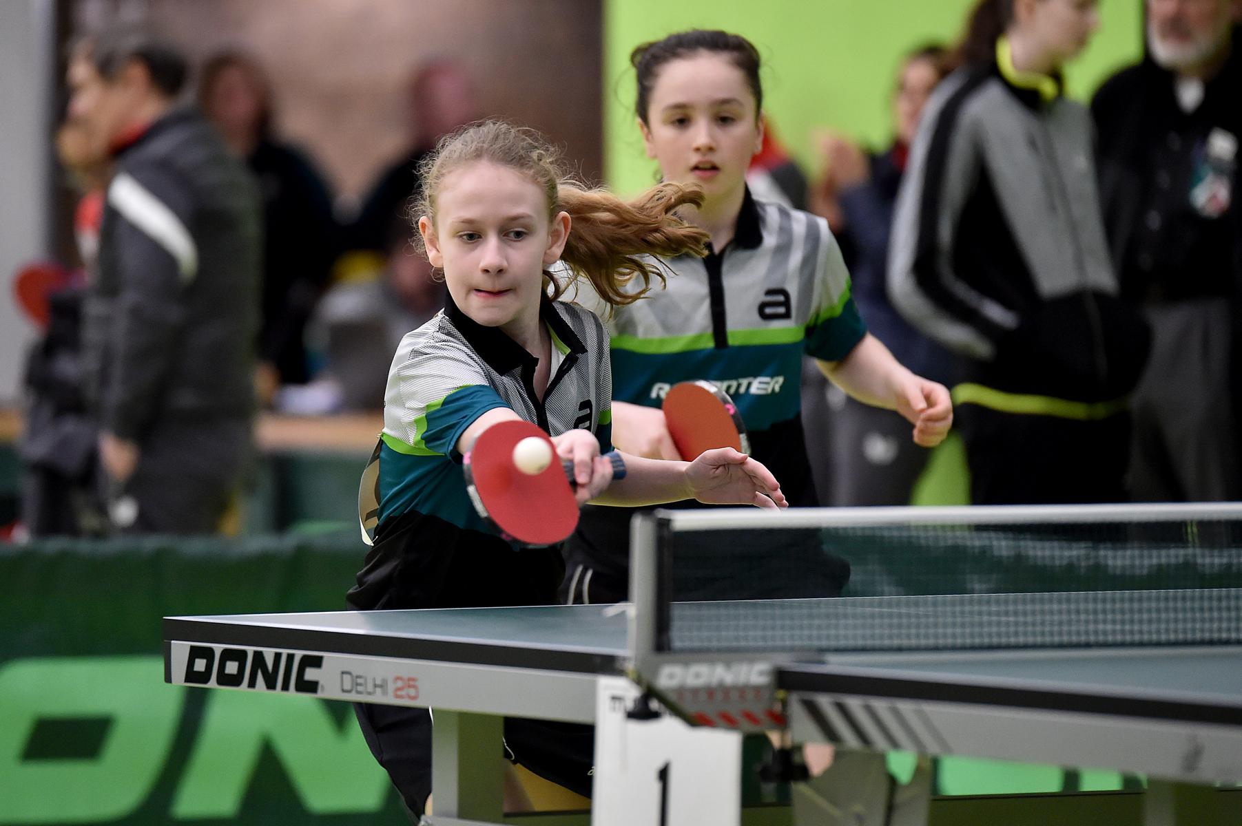 Bei den Schülerinnen erreichten Charlotte Schönau und Hannah Pollmeier durch ihre zweiten Plätze in der Vorrunde die Zwischenrunde, in der es um die Qualifikation für das Achtelfinale geht. Hier traf Hannah auf Franziska Brickl aus Bayern. Nach deutlichem Verlust des ersten Satzes kam Hannah besser ins Spiel, traute sich mehr zu, gewann Satz zwei, konnte das Spiel im Anschluss ausgeglichen gestalten, musste ihrer Gegnerin nach einem 1:3 aber trotzdem gratulieren.