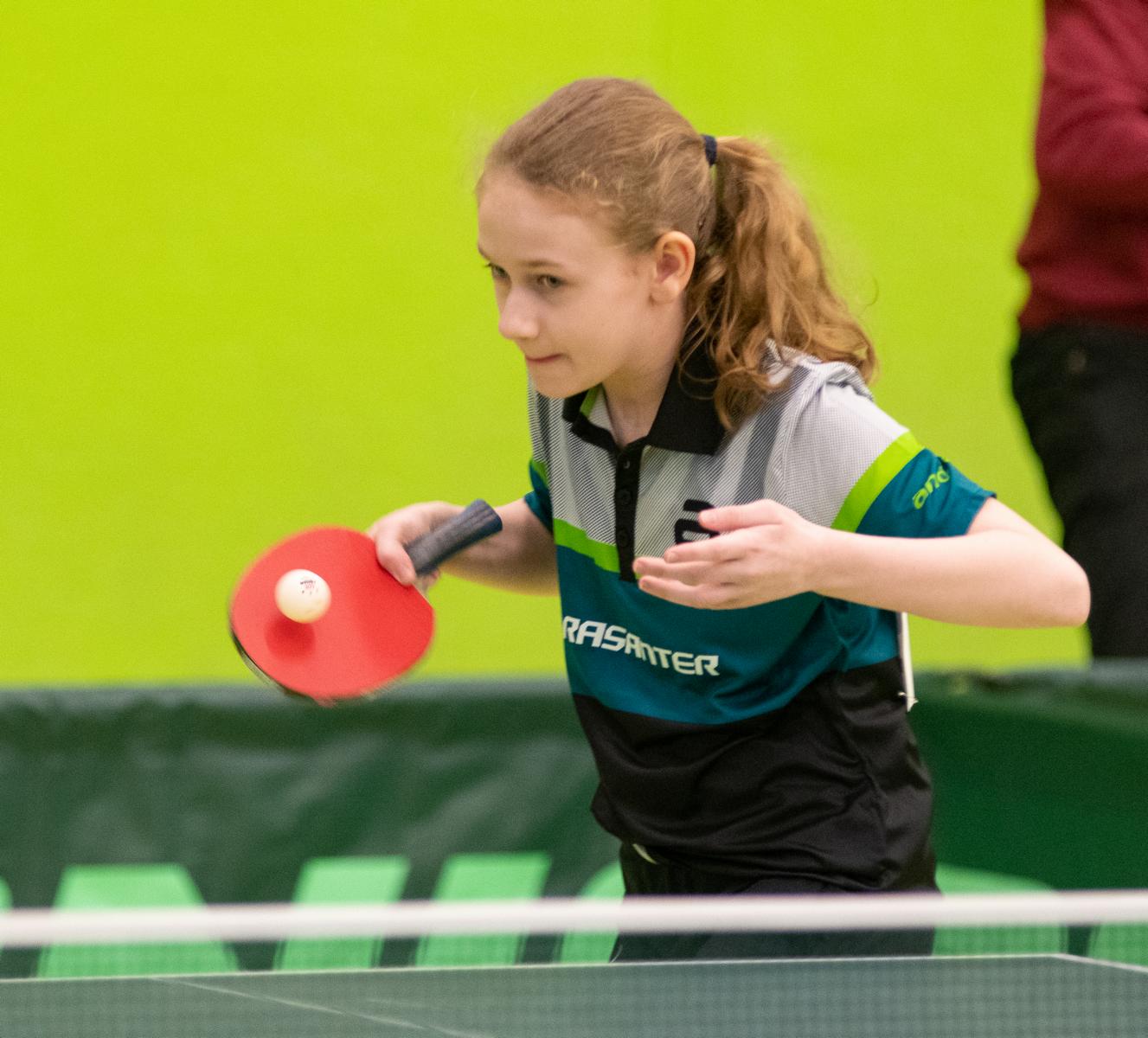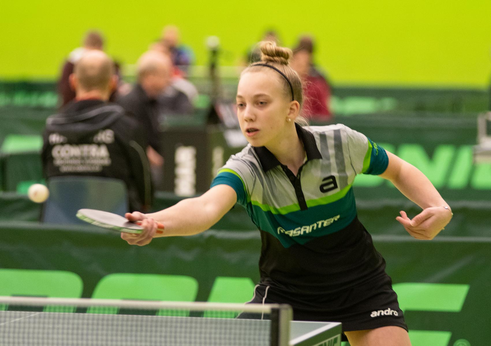 Charlotte traf ebenfalls auf eine Spielerin aus Bayern, Cathrin Singer, und machte es sehr spannend, denn das Spiel musste im fünften Satz entschieden werden. Charlotte behielt die Nerven und zog durch ein 11:5 ins Achtelfinale ein. Hier traf sie auf Sofia Stefanska (TTVN). Auch wenn am Ende ein 0:4 zu buche steht, war in dem Spiel mehr drin und das Glück war an diesem Tag nicht auf der Seite von Charlotte. Die ersten drei Sätze waren komplett ausgeglichen und Charlotte zog jeweils mit 10:12, 11:13 und 9:11 den Kürzeren. Im vierten Satz war dann etwas die Luft raus, so dass das deutliche 0:4 zu Stande kam.