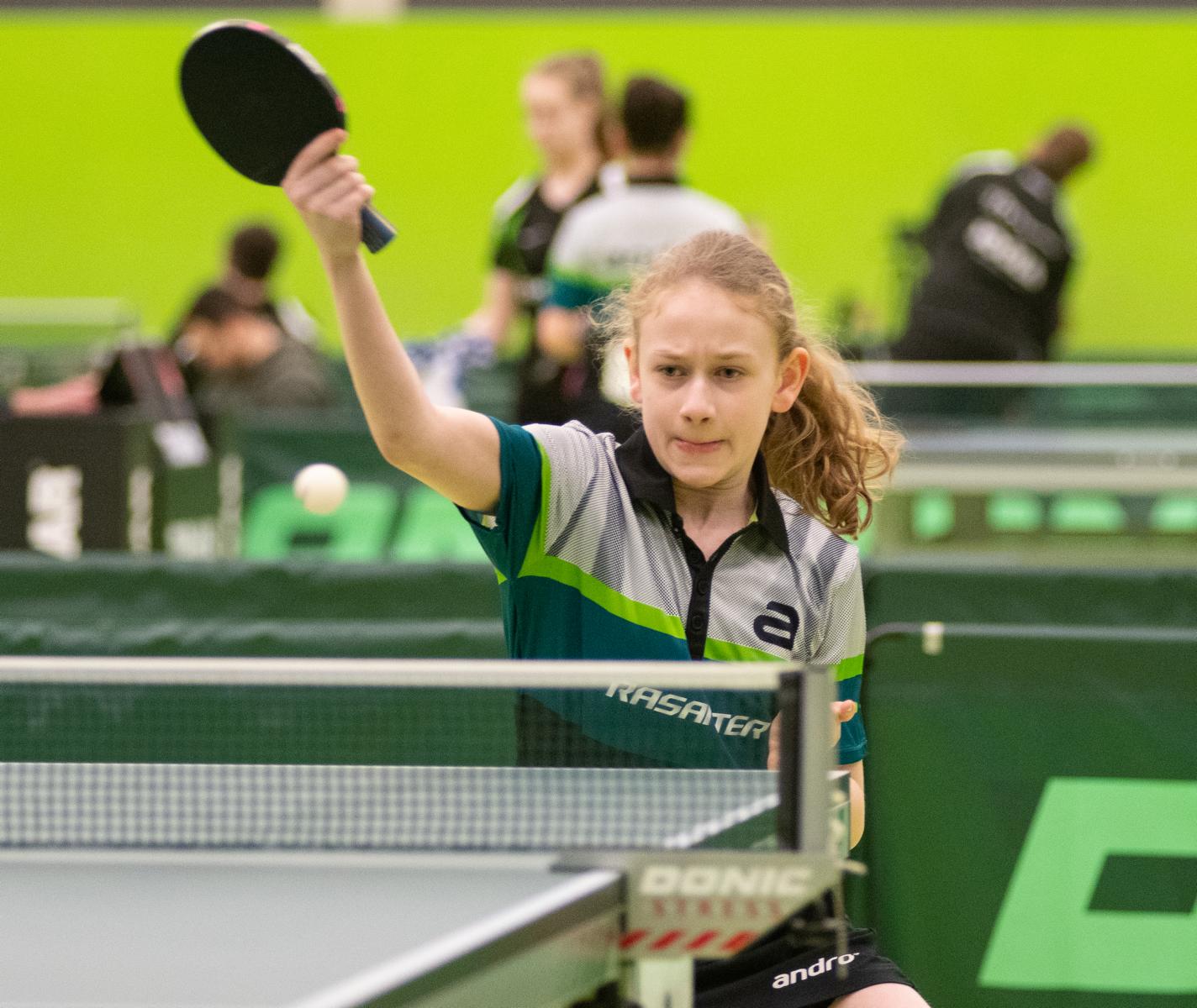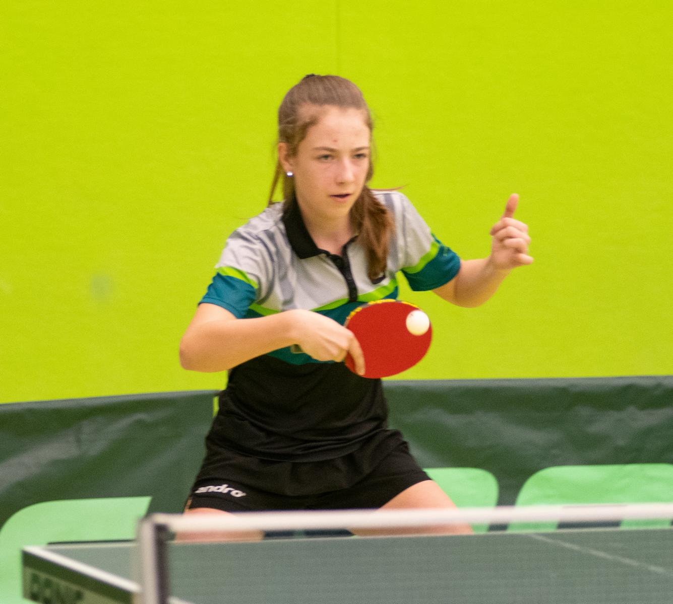Melinda Maiwald startet gegen die spätere Siegerin Naomi Pranjkovic aus Bayern gut in das Turnier. Zwar unterlag die 14jährige mit 1:3, konnte aber gegen die Favorit zum Teil mithalten. Danach musste Melinda allerdings zwei bittere Fünf-Satz-Niederlagen einstecken, was Platz vier in der Gruppe und leider das Aus bedeutete.