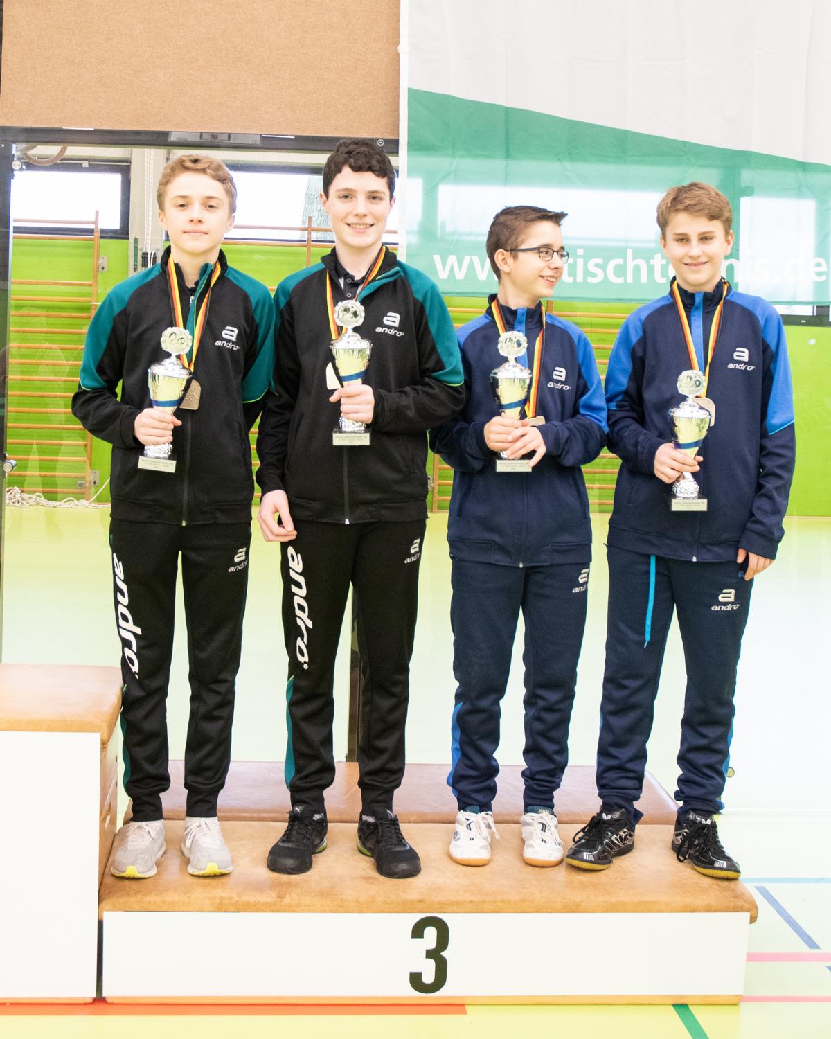 Im Viertelfinale war dann für alle drei WTTV’ler Endstation. Marko Panic traf auf den Favoriten und dritten der Schüler-Weltrangliste, Mike Hollo, aus Bayern und musste die Spielstärke von Mike beim 0:4 anerkennen. Bastian traf auf TOP 12-Sieger Tom Schwaiger aus Bayern. Bastian konnte zwar einen Satz gewinnen, unterlag am Ende aber deutlich mit 1:4. Und Wim schaffte gegen den späteren Deutschen Meister Felix Köhler aus der Pfalz keine weitere Überraschung. Zwar gewann auch Wim einen Satz, musste die Überlegenheit des Pfälzers nach dem 4:1 aber ebenfalls anerkennen.