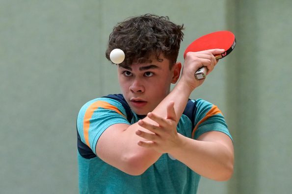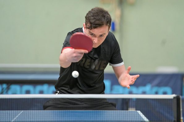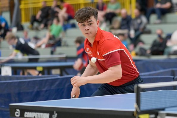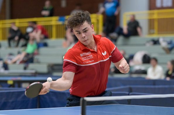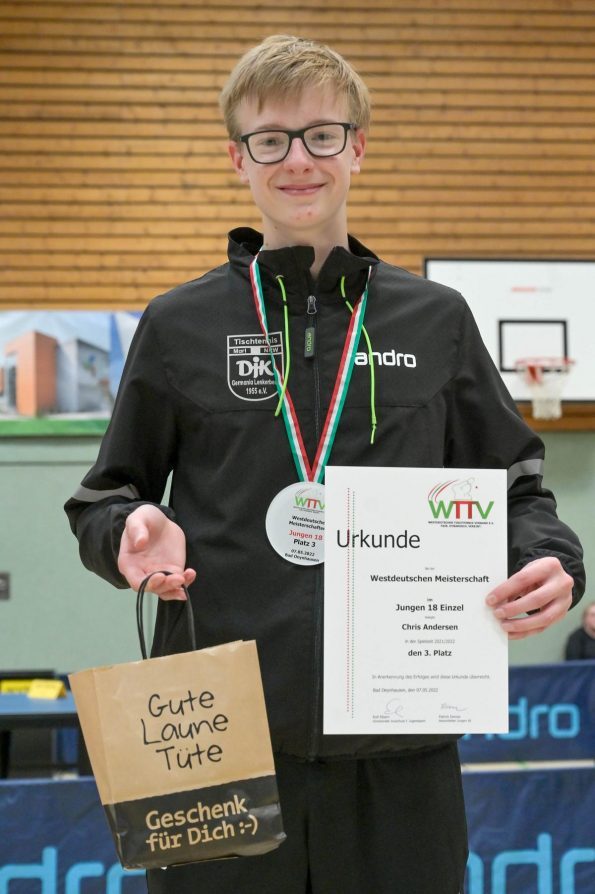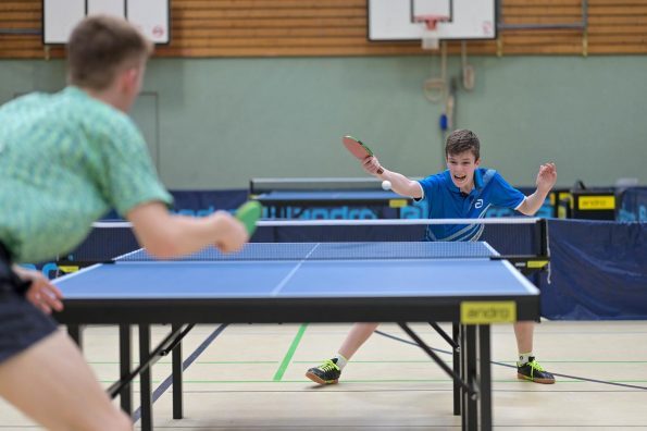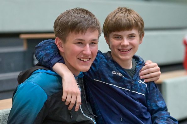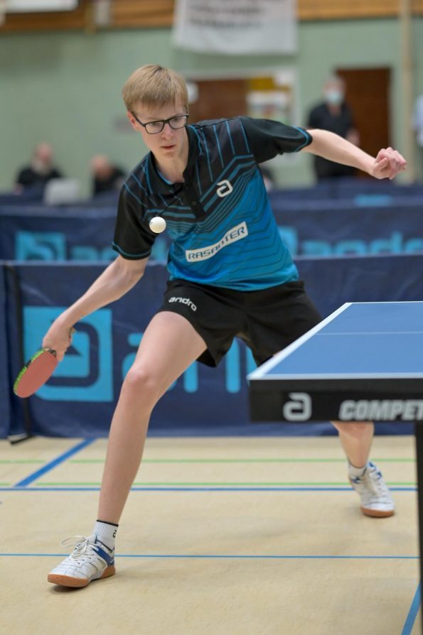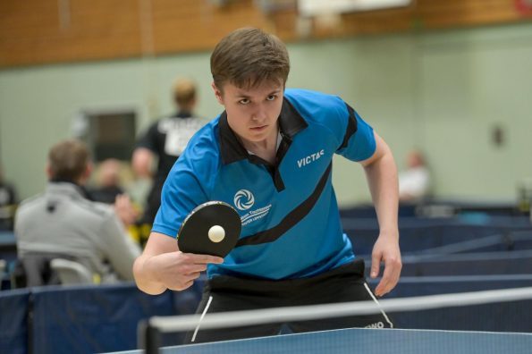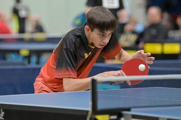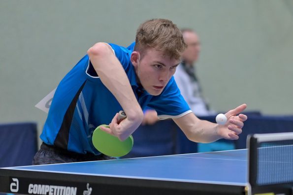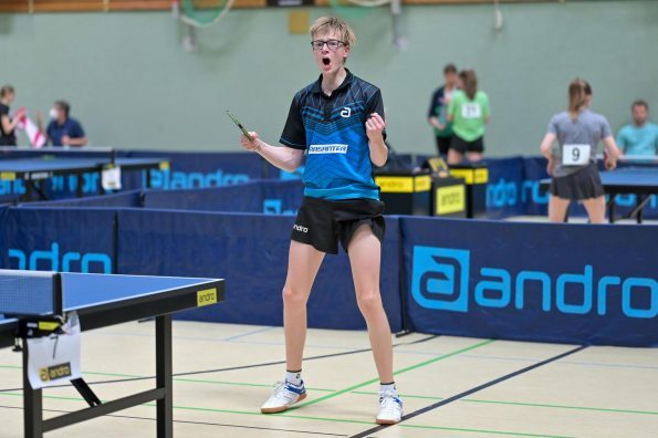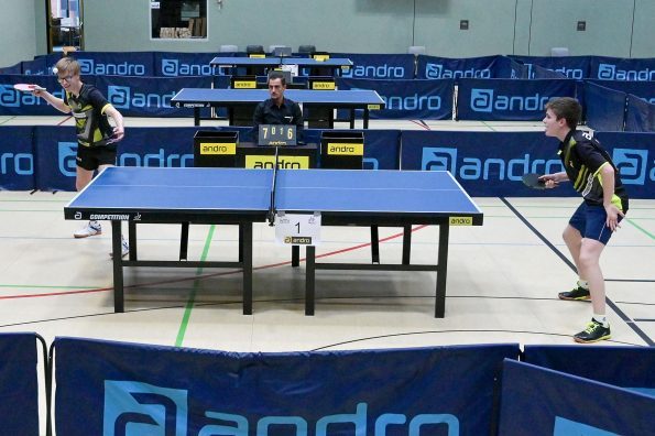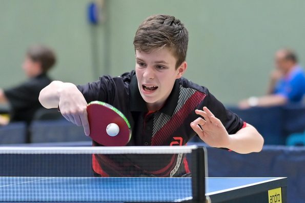 Los ging es am Samstag mit den älteren Athleten, der U18-Konkurrenz. Bei den Jungen setzte sich mit Wim Verdonschot (Borussia Dortmund), der im gesamten Turnier lediglich drei Sätze abgeben musste; verdient der topgesetzte Spieler durch. Sehr erfreulich war hier das Abschneiden der beiden U15-Spieler Friedrich Kühn von Burgsdorff (Post SV Gütersloh) und Noah Hersel (1. FC Köln), die sich beide erst dem späteren Sieger mit 3:0 bzw. 3:1 geschlagen geben mussten. Noah schaffte es im Finale sogar, Wim fast in den Entscheidungssatz zu zwingen, verlor den vierten Satz aber nach hartem Kampf mit 10:12. Platz drei sicherte sich neben Friedrich, Chris Andersen 8DJK Germania Lenkerbeck), der im Halbfinale Noah mit 1:3 unterlegen war.