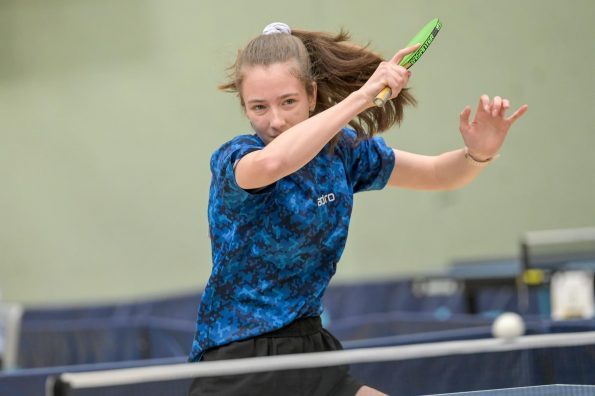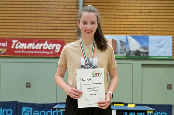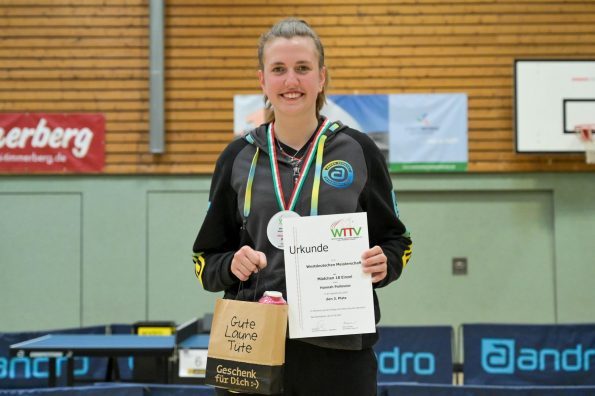Auch bei den Mädchen 18 gab es in der Vorrunde keine Überraschungen und alle Favoritinnen zogen in die KO-Runde ein. Im Viertelfinale musste sich dann aber die an Position eins gesetzte Melinda Maiwald (TTV Hövelhof) Luisa Düchting (TTG Langenich) mit 1:3 geschlagen geben. Luisa traf dann im Halbfinale auf Felina Busch (SC Fortuna Bonn) und die beiden zeigten gerade im ersten Satz ein sehr spannendes Spiel, denn dieser endete mit 23:21 für Felina, die am Ende das Spiel dann in vier Sätzen für sich entscheiden konnte. Das zweite Halbfinale bestritten Charlotte Schönau (TTC GW Fritzdorf) und Hannah Pollmeier (TTV Hövelhof). Auch dieses Spiel gestaltete sich äußerst knapp, denn alle Sätze wurden nur mit zwei Punkten Unterscheid gewonnen. Am Ende zog Charlotte mit einem 3:1 ins Finale gegen Felina ein.