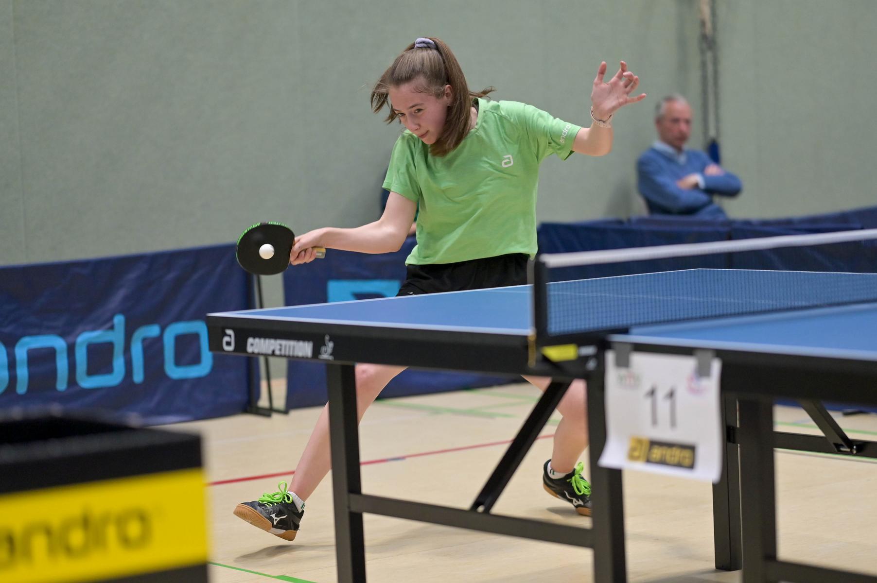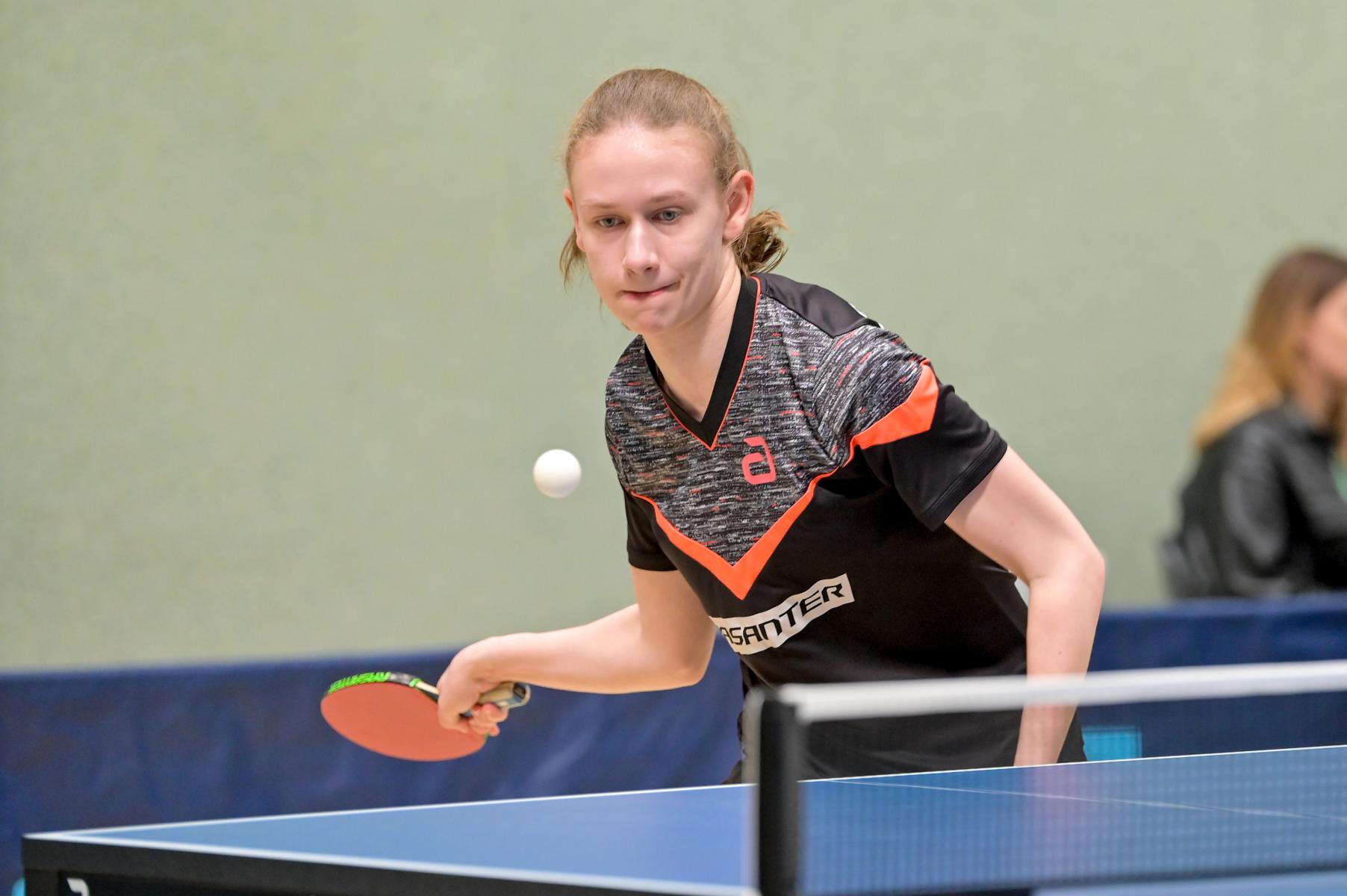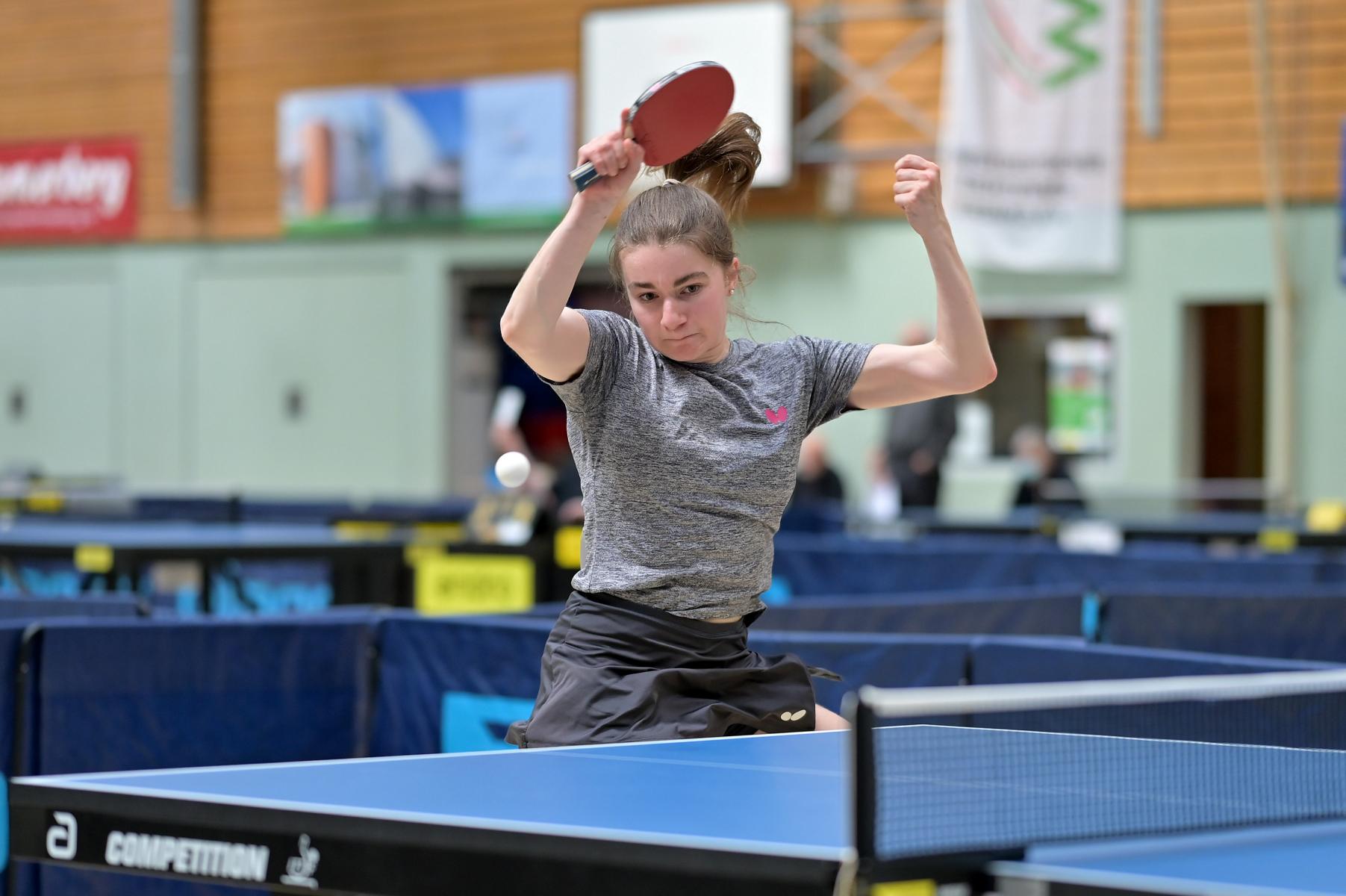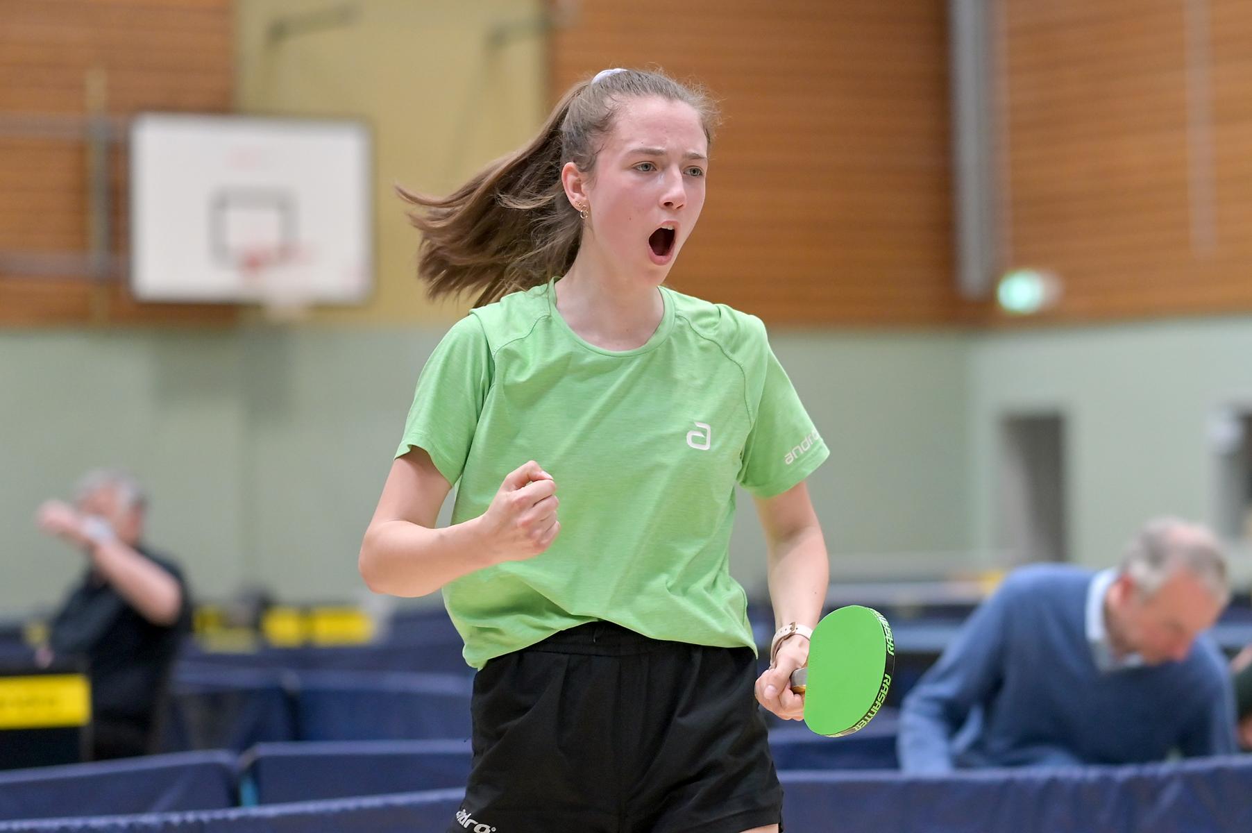 Auch bei den Mädchen 18 gab es in der Vorrunde keine Überraschungen und alle Favoritinnen zogen in die KO-Runde ein. Im Viertelfinale musste sich dann aber die an Position eins gesetzte Melinda Maiwald (TTV Hövelhof) Luisa Düchting (TTG Langenich) mit 1:3 geschlagen geben. Luisa traf dann im Halbfinale auf Felina Busch (SC Fortuna Bonn) und die beiden zeigten gerade im ersten Satz ein sehr spannendes Spiel, denn dieser endete mit 23:21 für Felina, die am Ende das Spiel dann in vier Sätzen für sich entscheiden konnte. Das zweite Halbfinale bestritten Charlotte Schönau (TTC GW Fritzdorf) und Hannah Pollmeier (TTV Hövelhof). Auch dieses Spiel gestaltete sich äußerst knapp, denn alle Sätze wurden nur mit zwei Punkten Unterscheid gewonnen. Am Ende zog Charlotte mit einem 3:1 ins Finale gegen Felina ein.