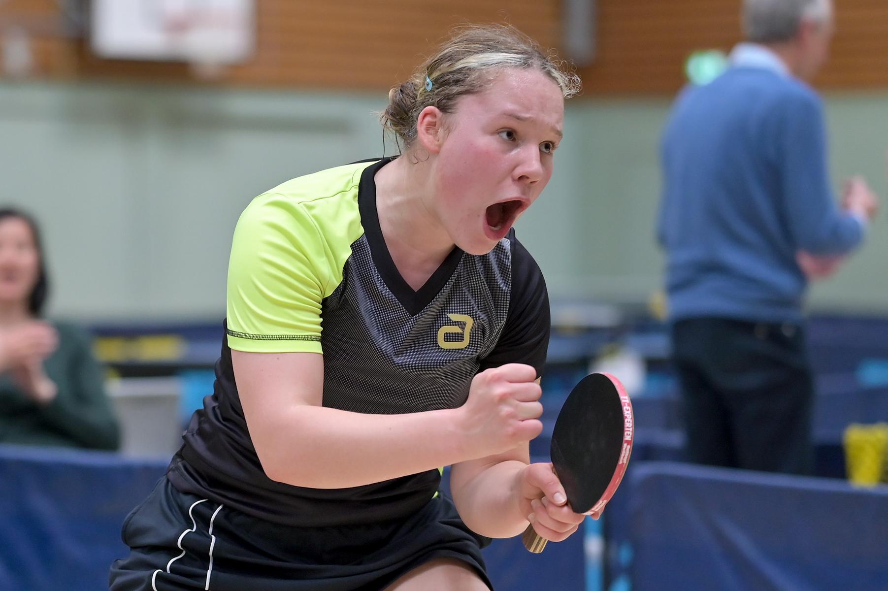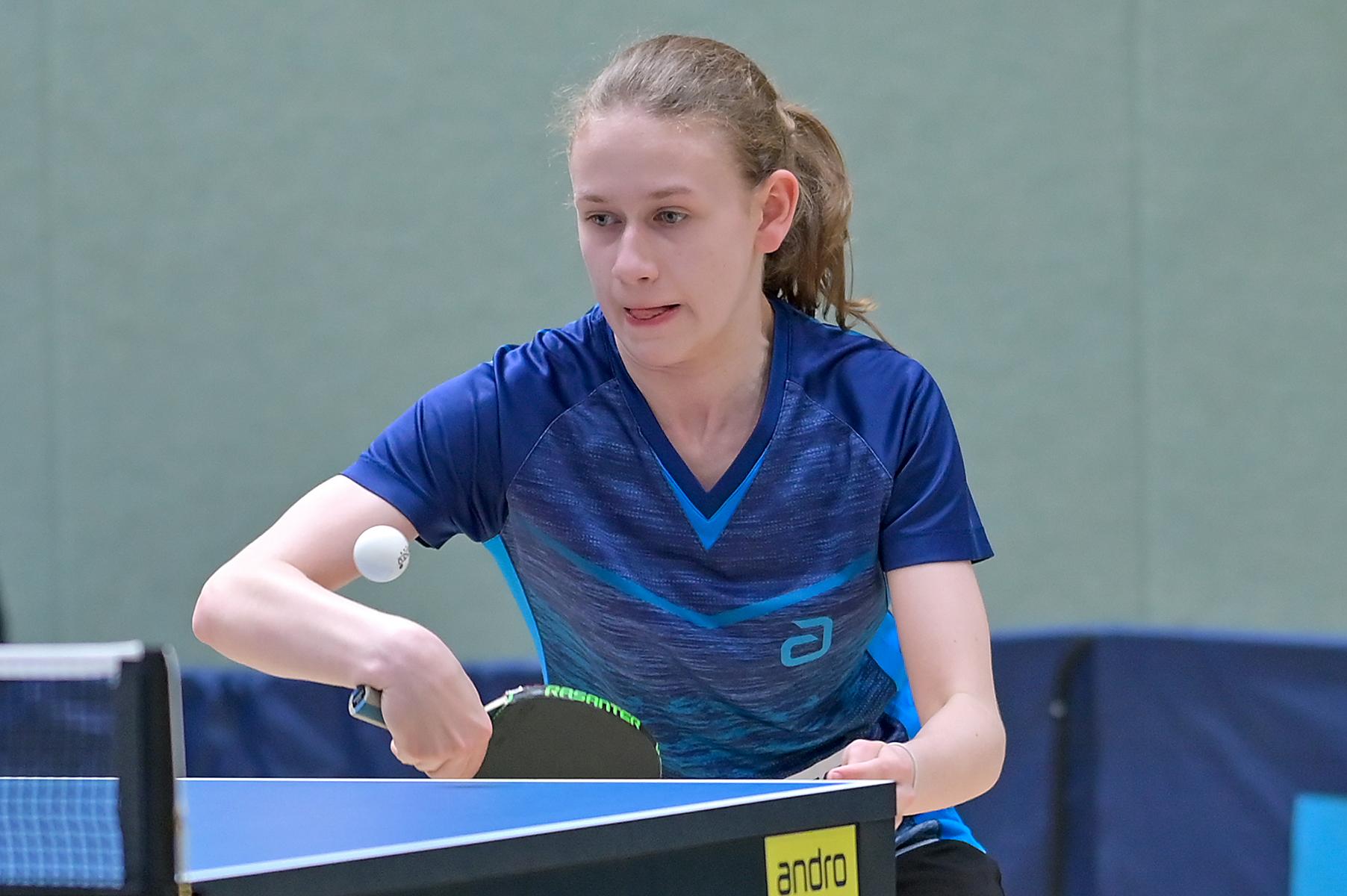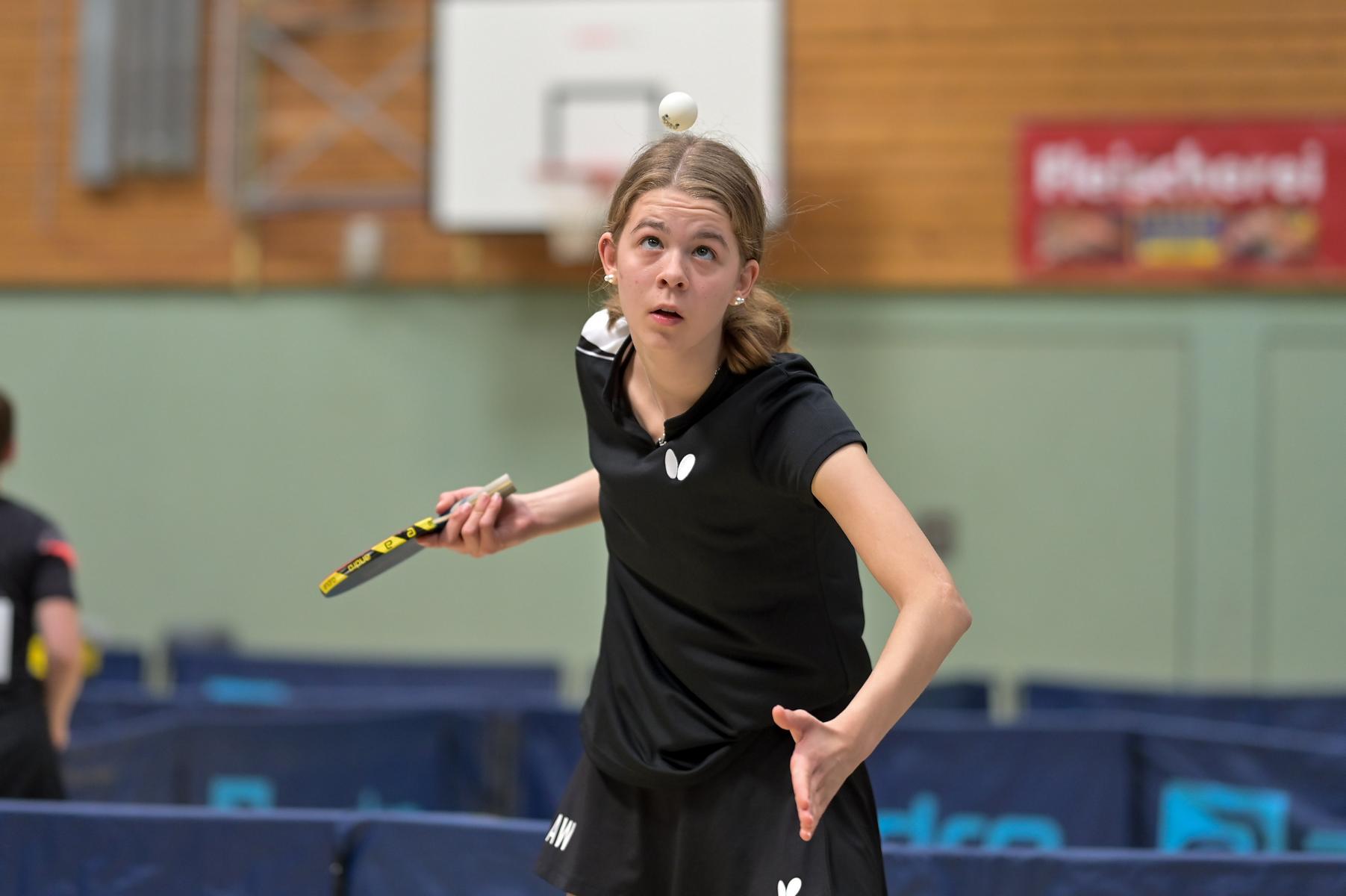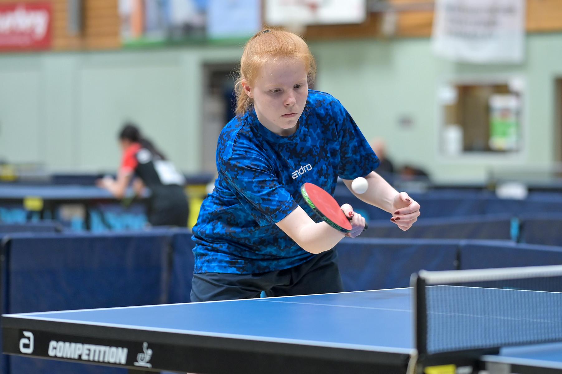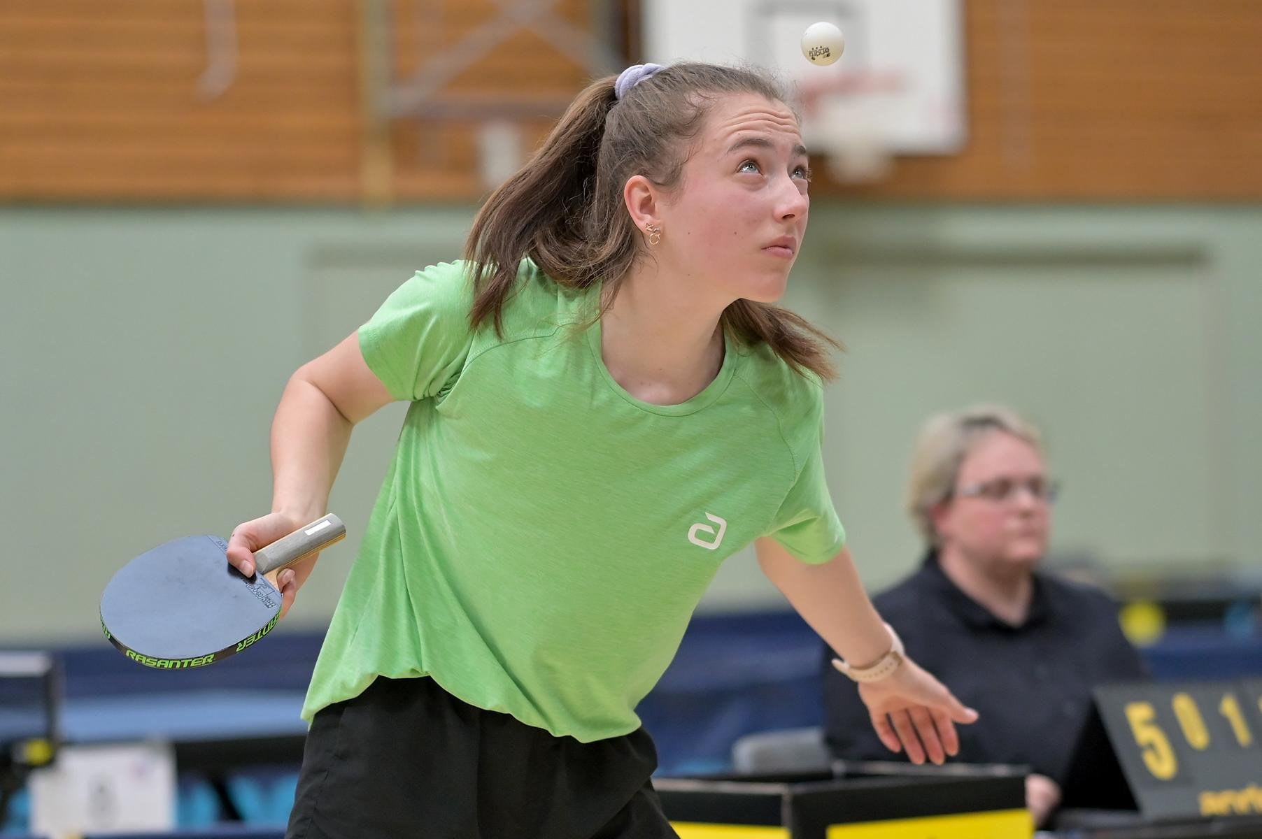 Auch bei den Mädchen 18 gab es in der Vorrunde keine Überraschungen und alle Favoritinnen zogen in die KO-Runde ein. Im Viertelfinale musste sich dann aber die an Position eins gesetzte Melinda Maiwald (TTV Hövelhof) Luisa Düchting (TTG Langenich) mit 1:3 geschlagen geben. Luisa traf dann im Halbfinale auf Felina Busch (SC Fortuna Bonn) und die beiden zeigten gerade im ersten Satz ein sehr spannendes Spiel, denn dieser endete mit 23:21 für Felina, die am Ende das Spiel dann in vier Sätzen für sich entscheiden konnte. Das zweite Halbfinale bestritten Charlotte Schönau (TTC GW Fritzdorf) und Hannah Pollmeier (TTV Hövelhof). Auch dieses Spiel gestaltete sich äußerst knapp, denn alle Sätze wurden nur mit zwei Punkten Unterscheid gewonnen. Am Ende zog Charlotte mit einem 3:1 ins Finale gegen Felina ein.
