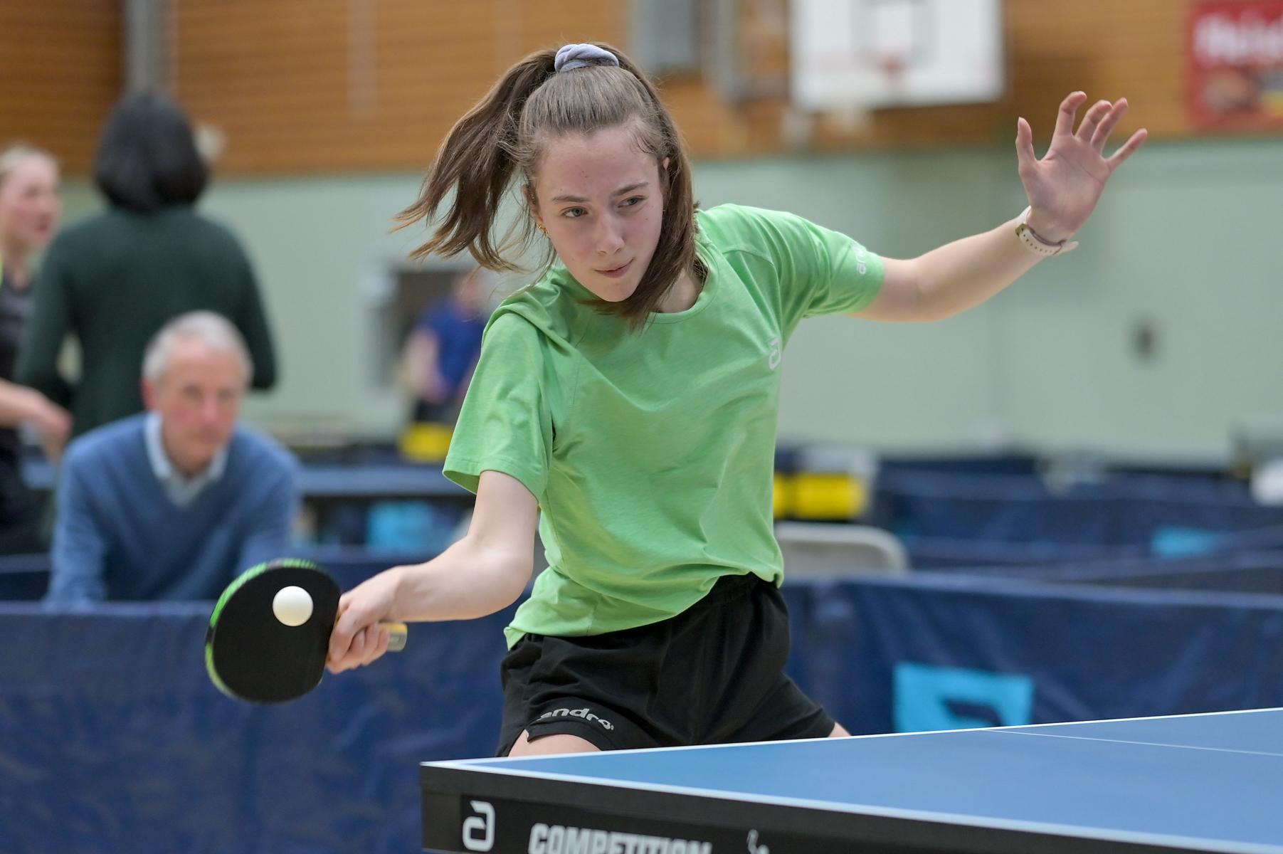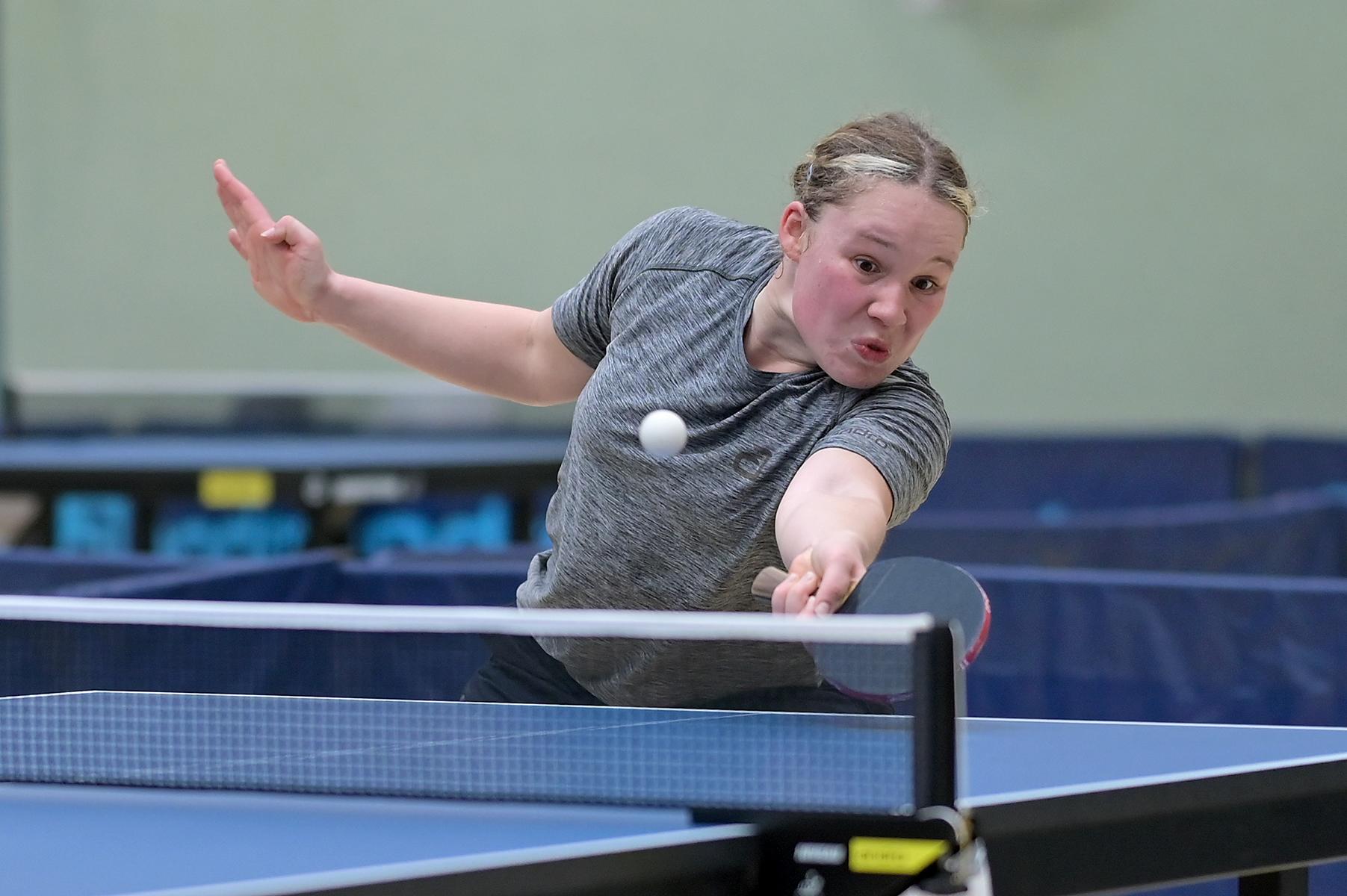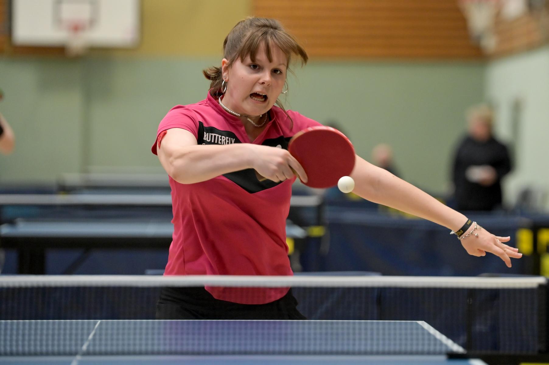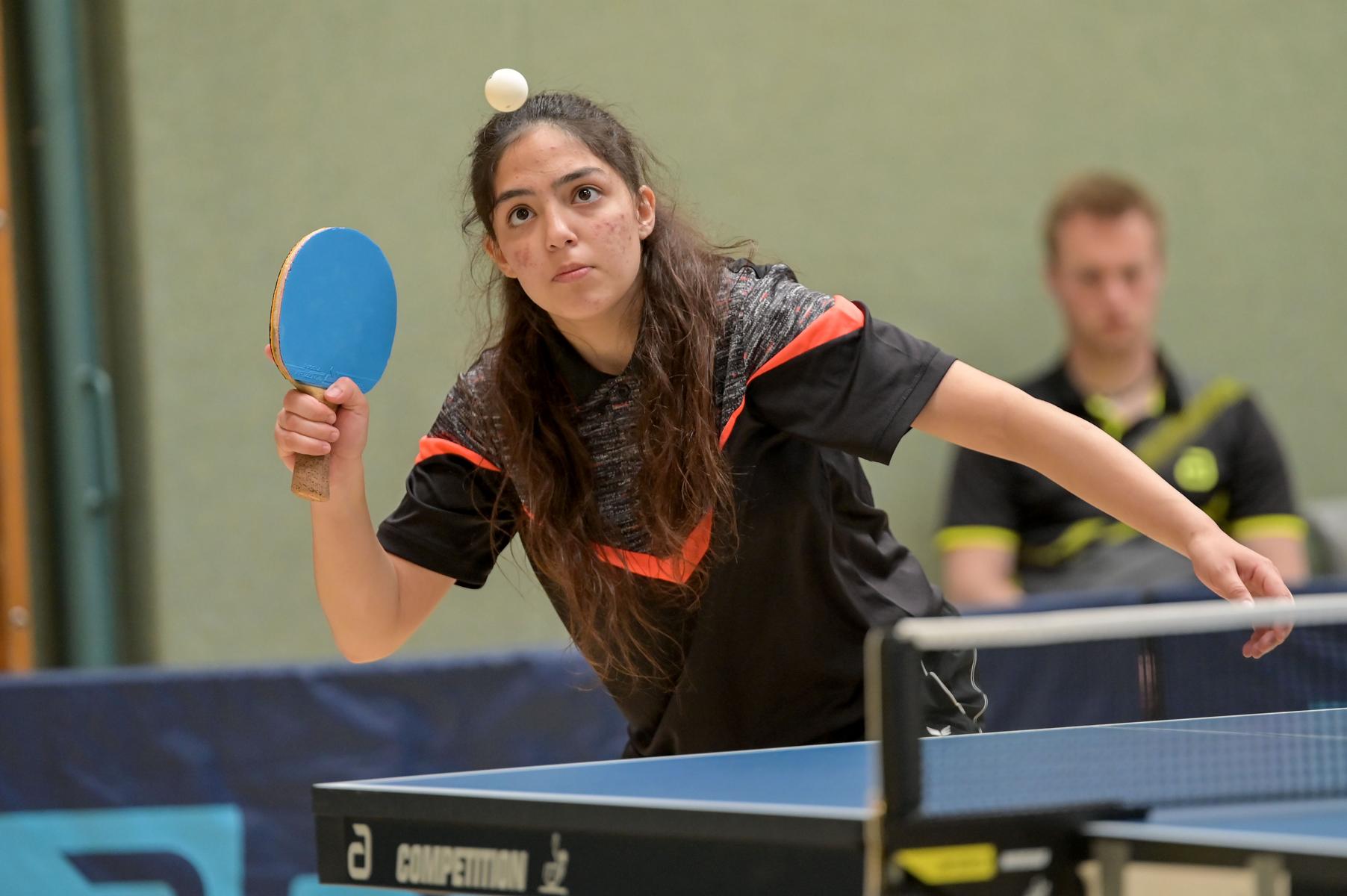 Auch bei den Mädchen 18 gab es in der Vorrunde keine Überraschungen und alle Favoritinnen zogen in die KO-Runde ein. Im Viertelfinale musste sich dann aber die an Position eins gesetzte Melinda Maiwald (TTV Hövelhof) Luisa Düchting (TTG Langenich) mit 1:3 geschlagen geben. Luisa traf dann im Halbfinale auf Felina Busch (SC Fortuna Bonn) und die beiden zeigten gerade im ersten Satz ein sehr spannendes Spiel, denn dieser endete mit 23:21 für Felina, die am Ende das Spiel dann in vier Sätzen für sich entscheiden konnte. Das zweite Halbfinale bestritten Charlotte Schönau (TTC GW Fritzdorf) und Hannah Pollmeier (TTV Hövelhof). Auch dieses Spiel gestaltete sich äußerst knapp, denn alle Sätze wurden nur mit zwei Punkten Unterscheid gewonnen. Am Ende zog Charlotte mit einem 3:1 ins Finale gegen Felina ein.
