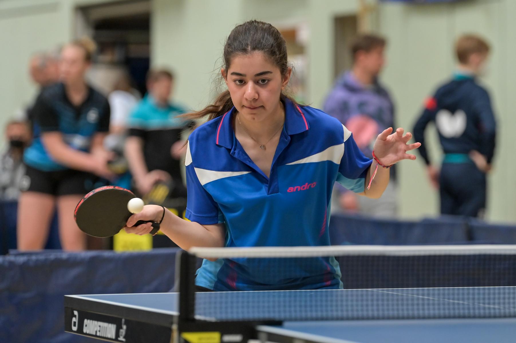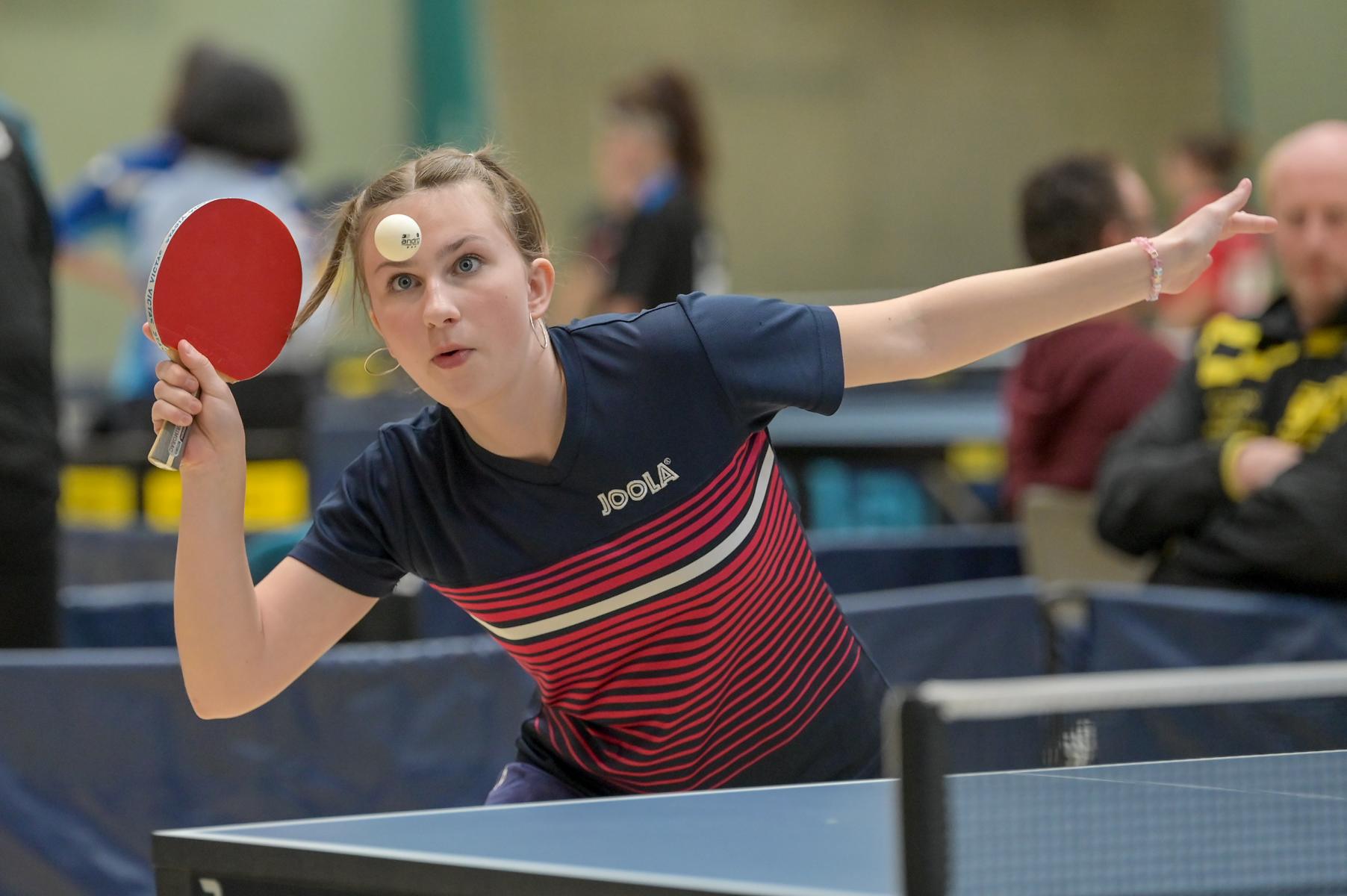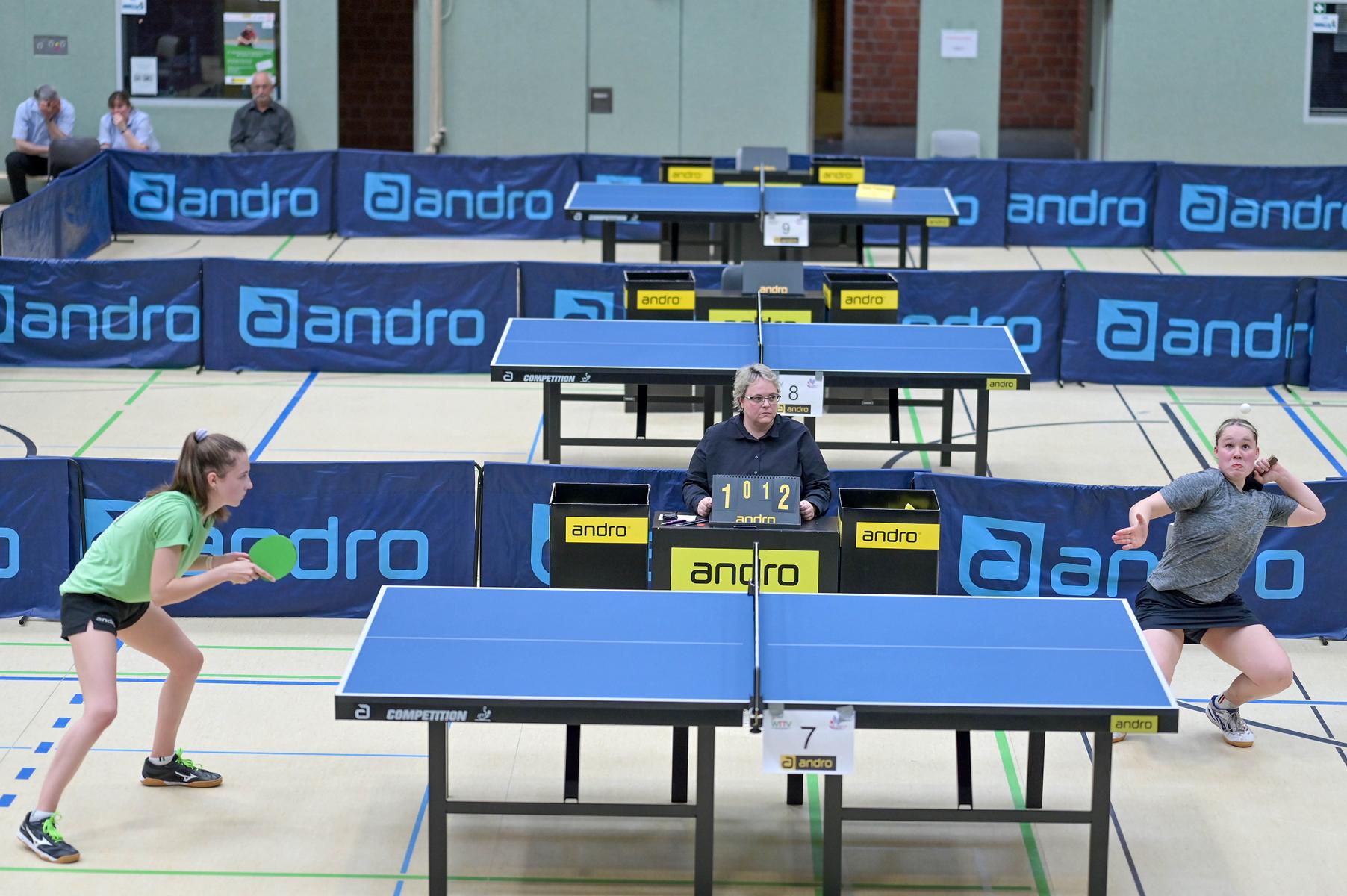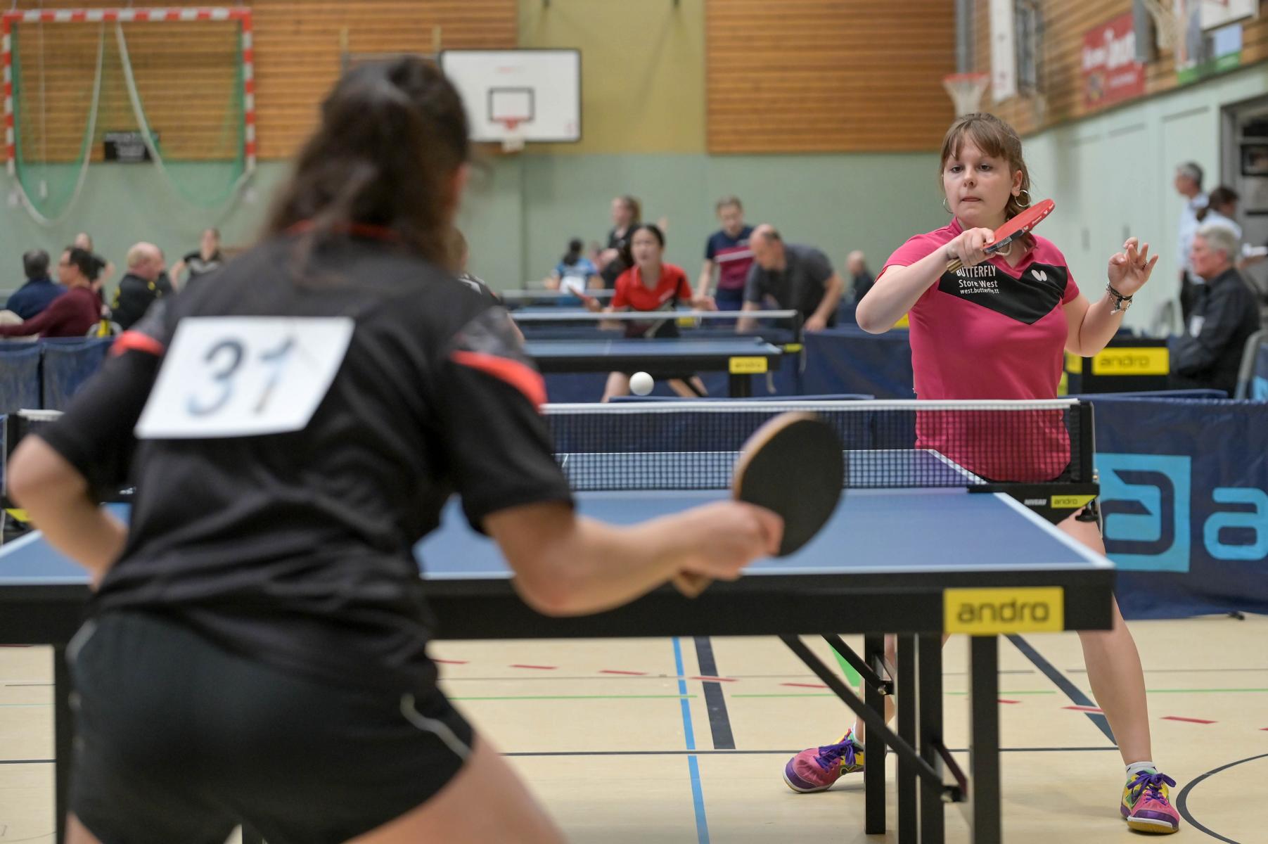 Auch bei den Mädchen 18 gab es in der Vorrunde keine Überraschungen und alle Favoritinnen zogen in die KO-Runde ein. Im Viertelfinale musste sich dann aber die an Position eins gesetzte Melinda Maiwald (TTV Hövelhof) Luisa Düchting (TTG Langenich) mit 1:3 geschlagen geben. Luisa traf dann im Halbfinale auf Felina Busch (SC Fortuna Bonn) und die beiden zeigten gerade im ersten Satz ein sehr spannendes Spiel, denn dieser endete mit 23:21 für Felina, die am Ende das Spiel dann in vier Sätzen für sich entscheiden konnte. Das zweite Halbfinale bestritten Charlotte Schönau (TTC GW Fritzdorf) und Hannah Pollmeier (TTV Hövelhof). Auch dieses Spiel gestaltete sich äußerst knapp, denn alle Sätze wurden nur mit zwei Punkten Unterscheid gewonnen. Am Ende zog Charlotte mit einem 3:1 ins Finale gegen Felina ein.