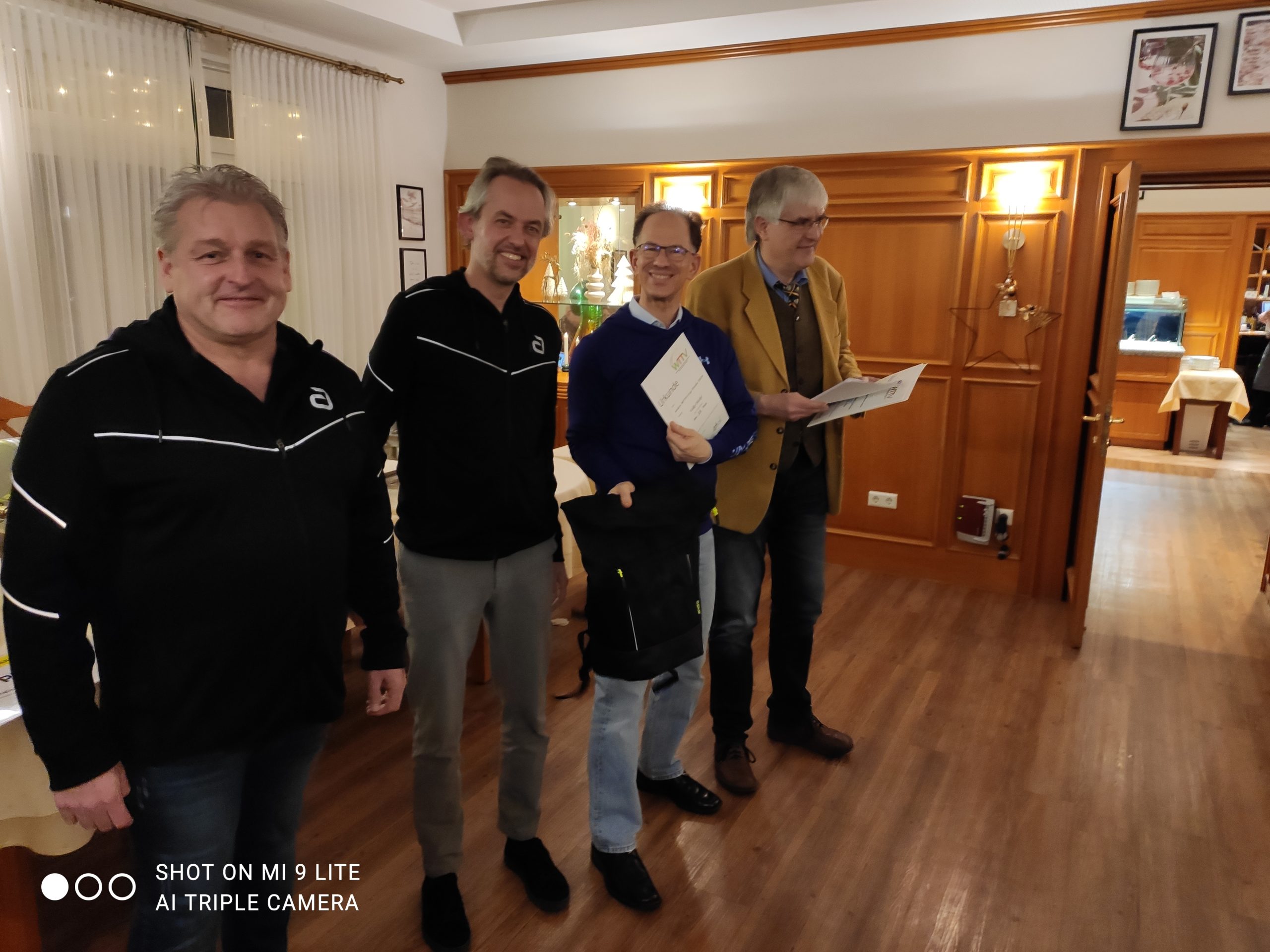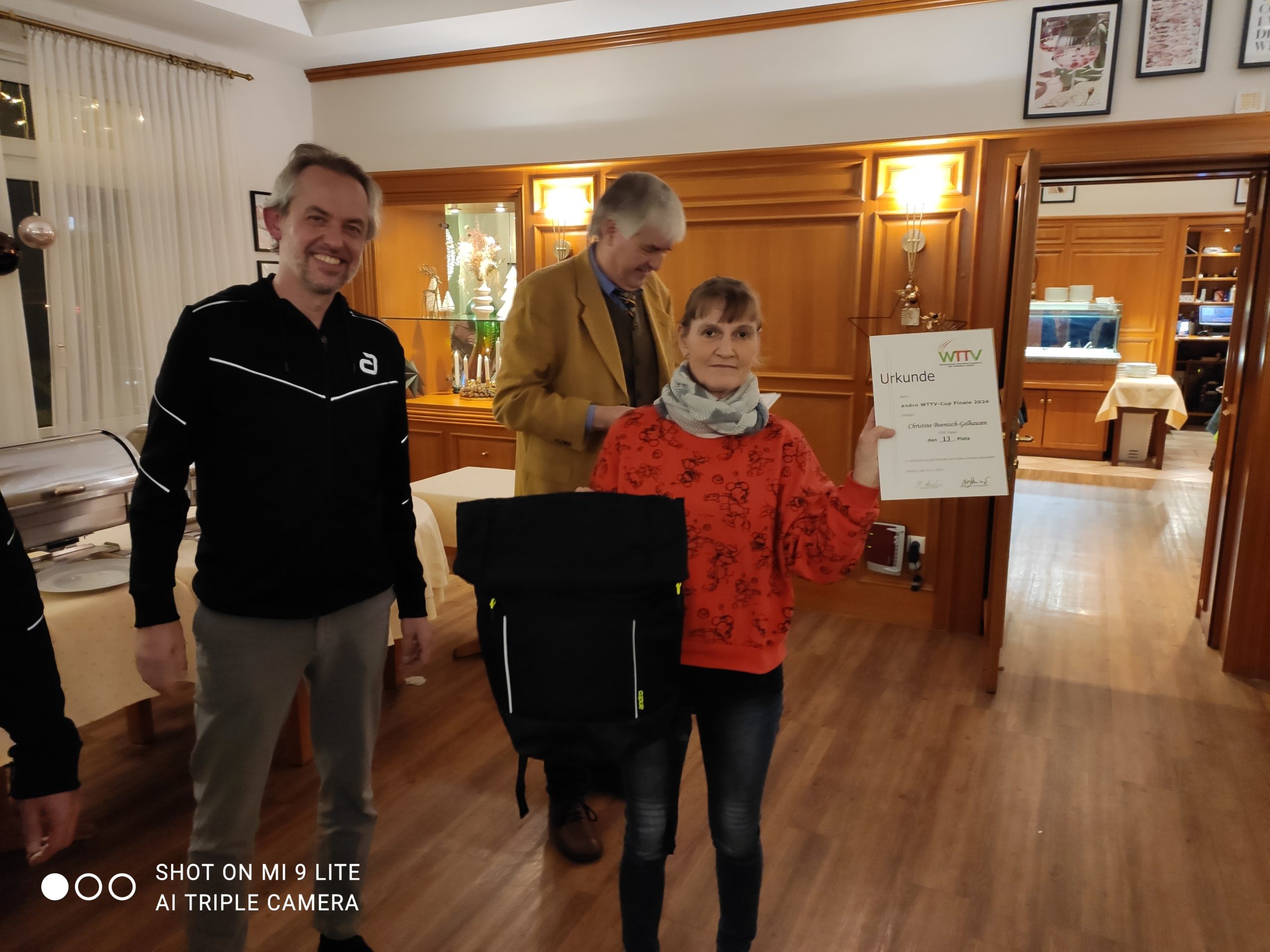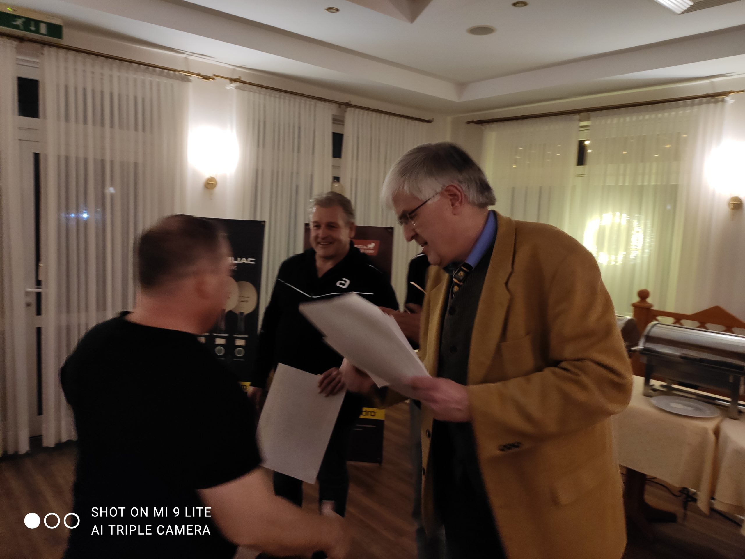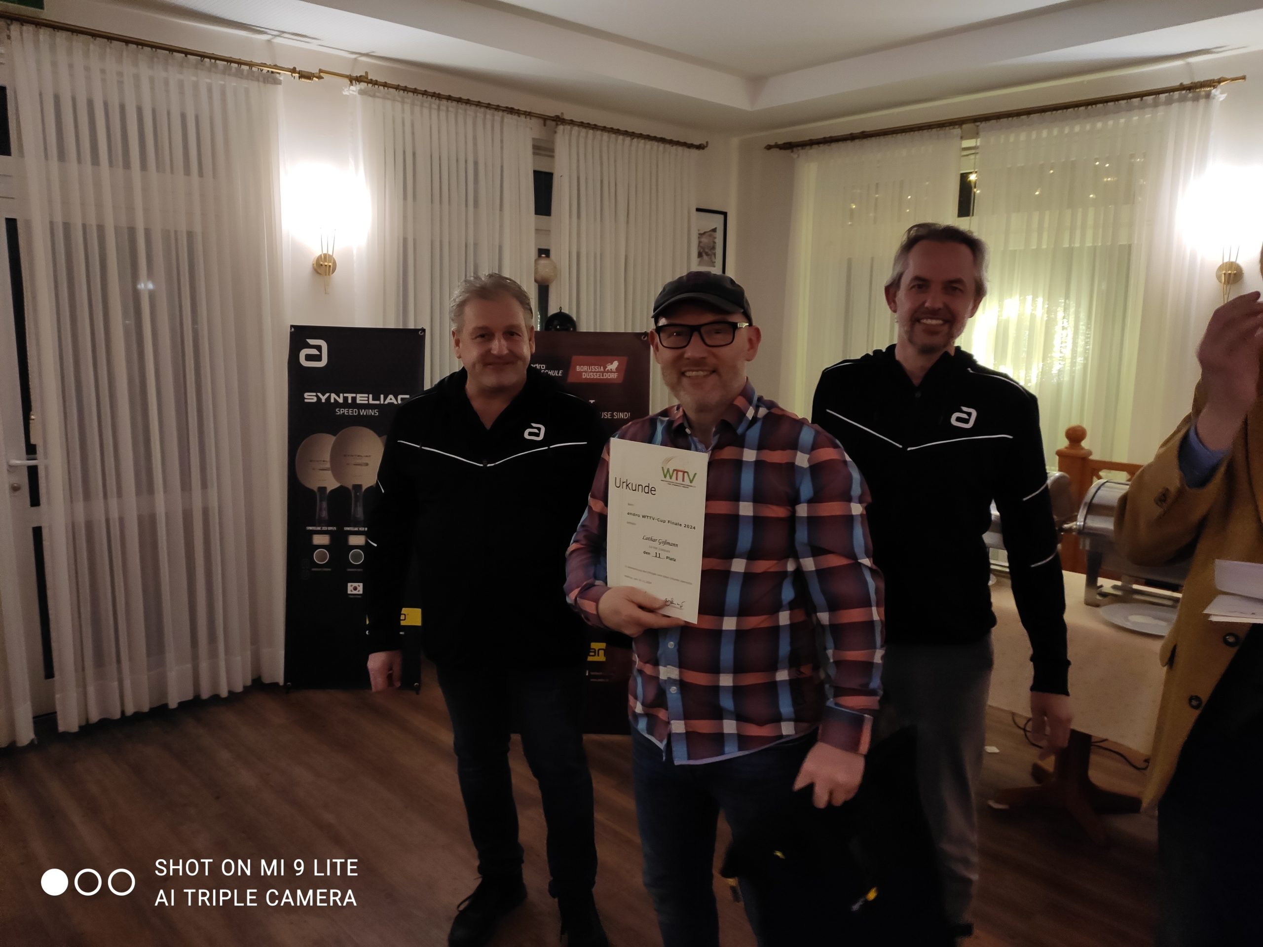 Doch der Reihe nach: Nach der Begrüßung durch Jens Korte vom gastgebenden TTV Waltrop konnte Spielleiter Reinhardt Hantke bereits die ersten Spiel-Begegnungen aufrufen. Drei Stunden mit Engagement und viel Schweiß lagen hinter den Teilnehmenden, als Sieger und Platzierte zur Siegerehrung im Hotel am Park eilten. Hier warteten Rainer Schmidt und David Daus mit Anerkennung und stattlichen Peisen auf die Akteure, die unter dem Beifall der Spieler/innen zur Ausreichung kamen.