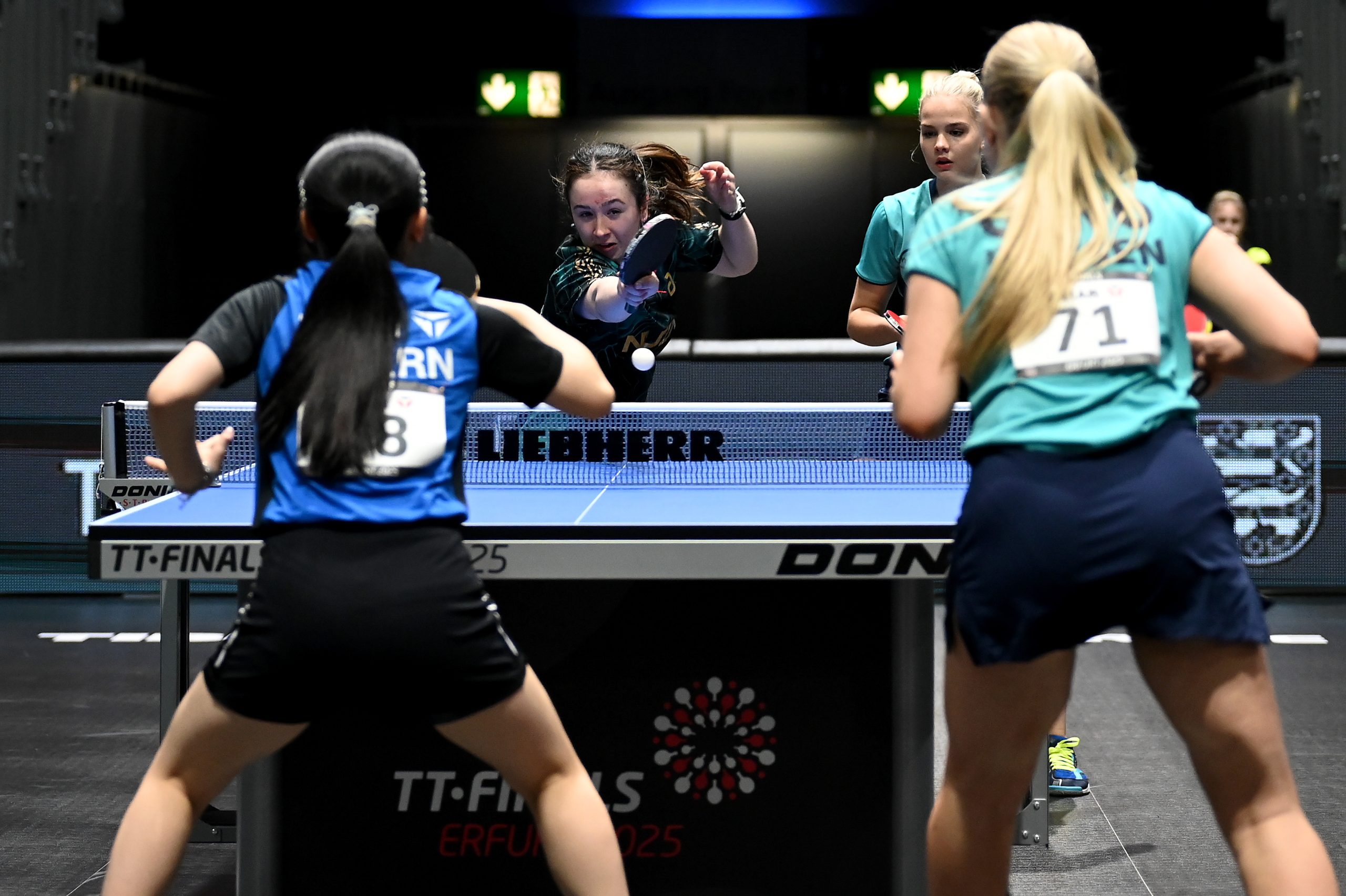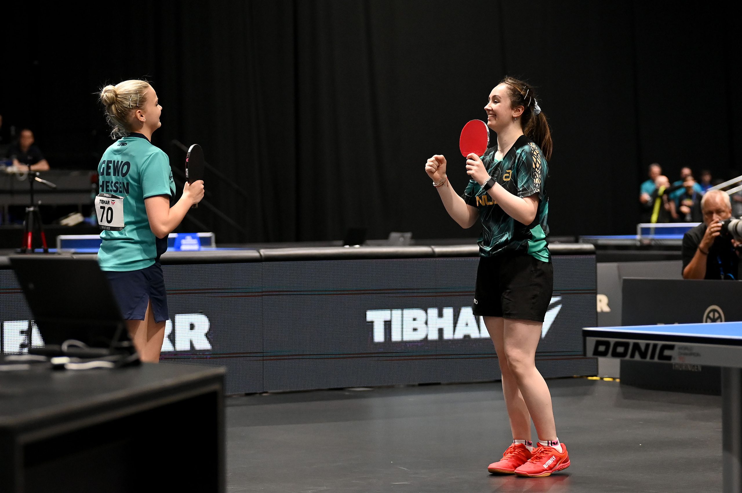 Allen voran Eireen Kalaitzidou (Borussia Düsseldorf)! Zunächst sicherte sie sich einen dritten Platz bei den Mädchen 19. Erst im Halbfinale scheiterte sie mit 1:4 an der Erstligaspielerin Koharu Itagaki. Im Doppel hielt sich die Düsseldorferin dann aber schadlos. An der Seite ihrer Partnerin Lorena Morsch holte sie den Meistertitel. In einem erstklassigen Finale bezwangen sie das hoch gehandelte Duo Itagaki/Neumann mit 3:1. Nach klar verlorenem erstem Satz gelang es ihnen mit einer taktischen Meisterleistung, das Spiel zu drehen und die folgenden drei Sätze deutlich für sich zu entscheiden.
