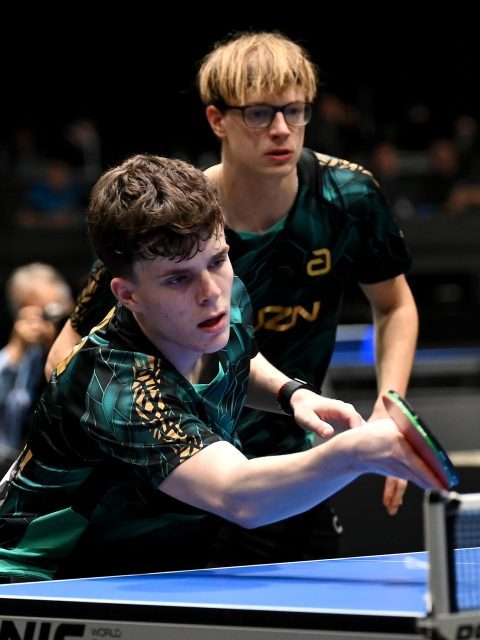 Samstagabend starteten endlich auch die Damen und Herren mit der Mixed-Konkurrenz. Hier hatte der WTTV zwei heiße Eisen im Feuer. André Bertelsmeier vom 1. FC Köln ist mit seiner Partnerin Mia Griesel an Nr. 1 gesetzt. Und schon an Nr. 2 folgt Wim Verdonschot (SC Union Velbert) mit Sophia Klee. Aber während Bertelsmeier/Griesel sicher mit 3:0 die erste Runde überstanden, konnten Verdonschot/Klee gegen Altmeister Torben Wosik mit seiner erst 16 Jahre alten Partnerin Elisa Nguyen eine 2:0-Satzführung nicht durchbringen. Sie verloren den Faden und schafften es auch im Entscheidungssatz nicht, eine 6:2-Führung nach Hause zu bringen.
