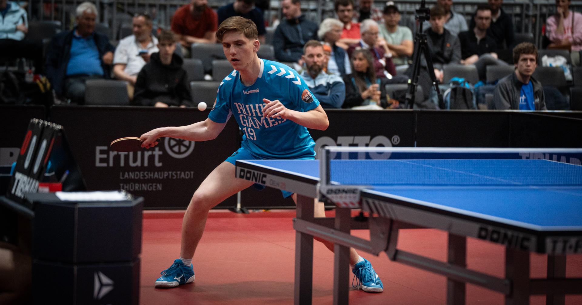 Jiahe Tong (Borussia Düsseldorf) schaffte es bis ins Viertelfinale – unterlag dort allerdings Philip Brosch (TTF Bönen), der mit einer bärenstarken Leistung bis ins Finale stürmte und sich dort Silber sicherte. Herzlichen Glückwunsch!