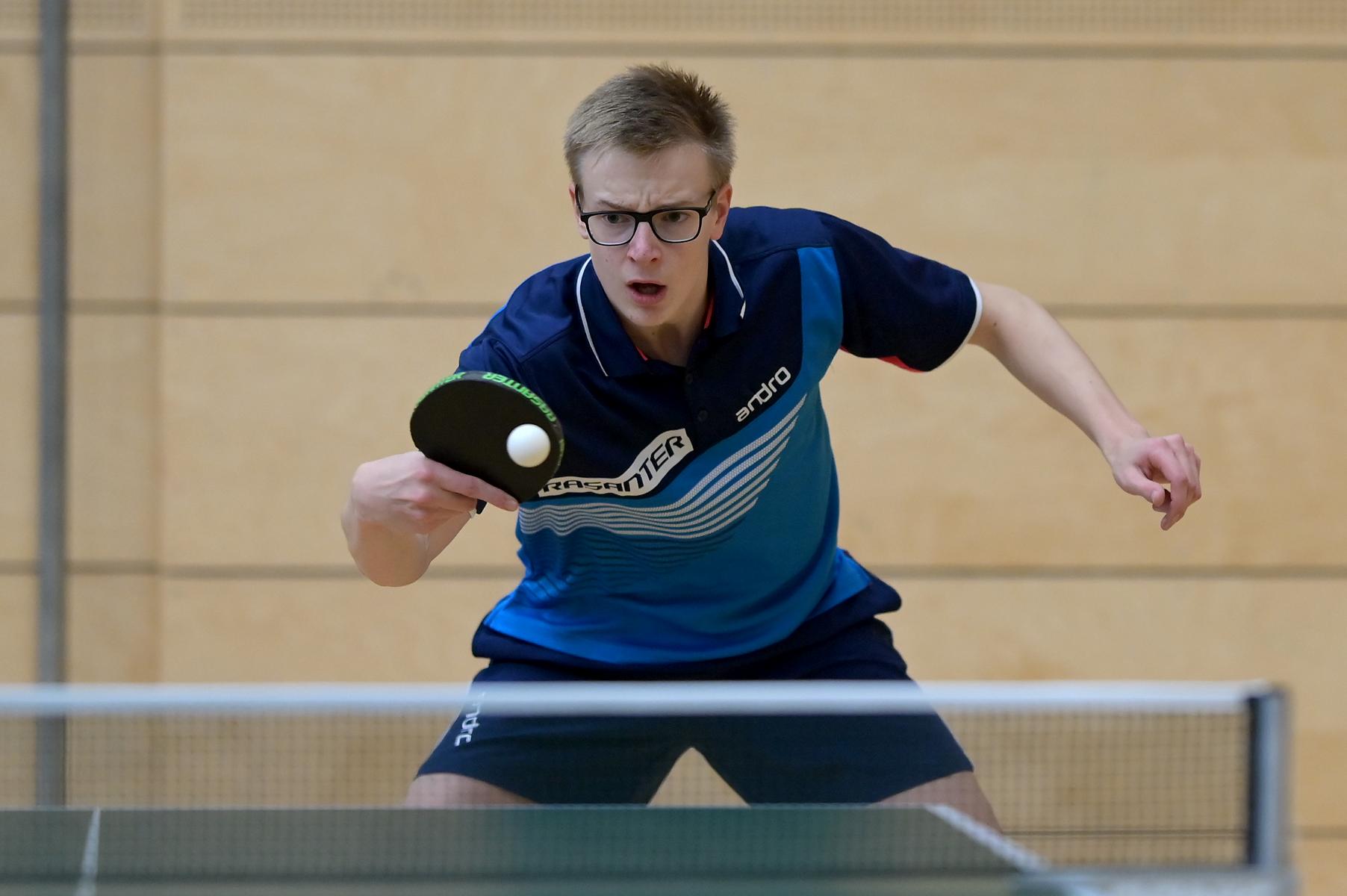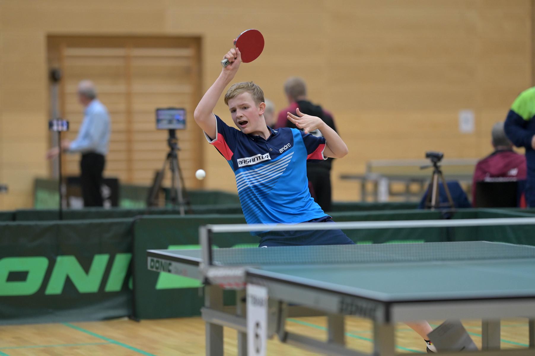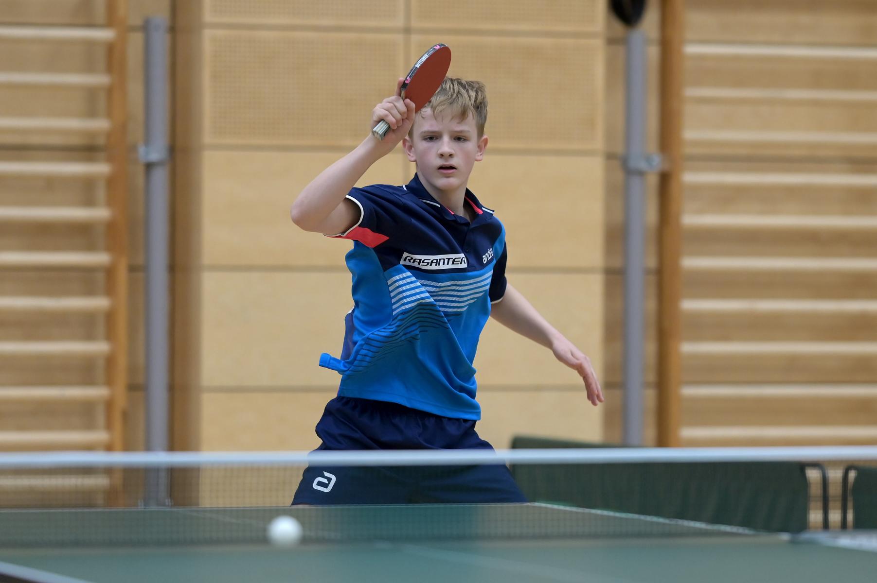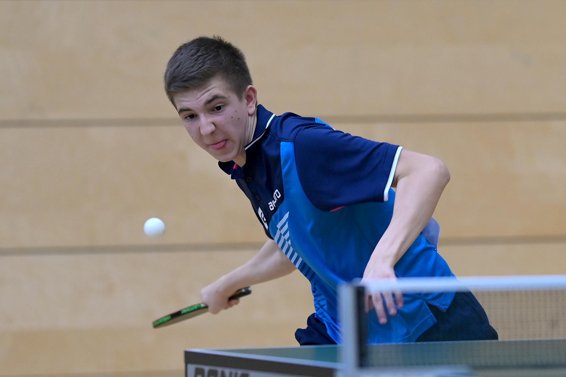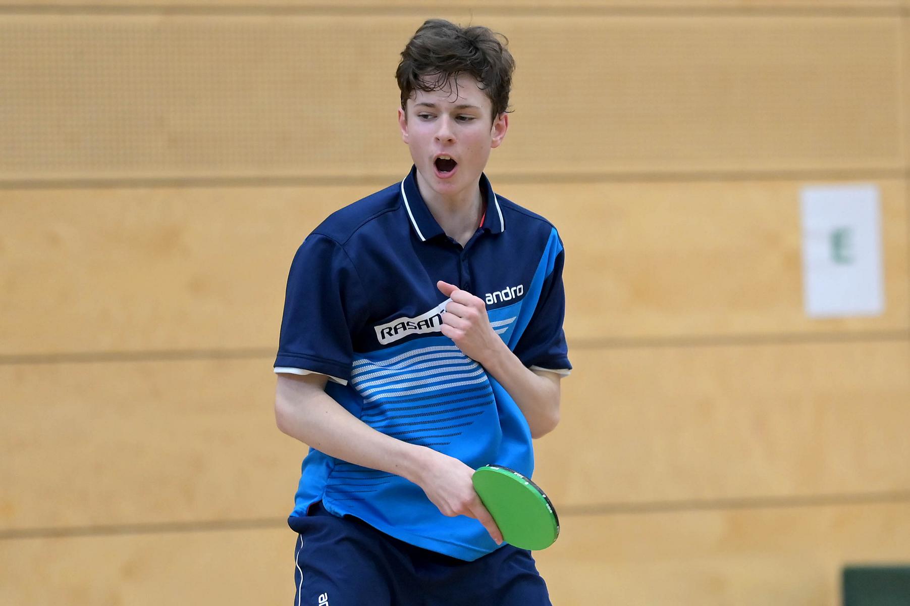 Friedrich Kühn von Burgsdorff bliebt in der Gruppenphase ohne Satzverlust, bis er auf den topgesetzten Matej Haspel aus Bayern traf. In diesem letzten Vorrundenspiel kassierte Friedrich eine deutliche Niederlage und zog als Gruppenzweiter in die Endrunde ein. Aber er musste nicht lange warten, bis er die Chance zur Revanche gegen den Bayern hatte. Denn beide trafen im Endspiel erneut aufeinander. Hier zeigte Friedrich ein spielerisch und taktisch unglaublich gutes Matche und siegte nach dem Verlust des ersten Satzes souverän mit 3:1. Herzlichen Glückwunsch!