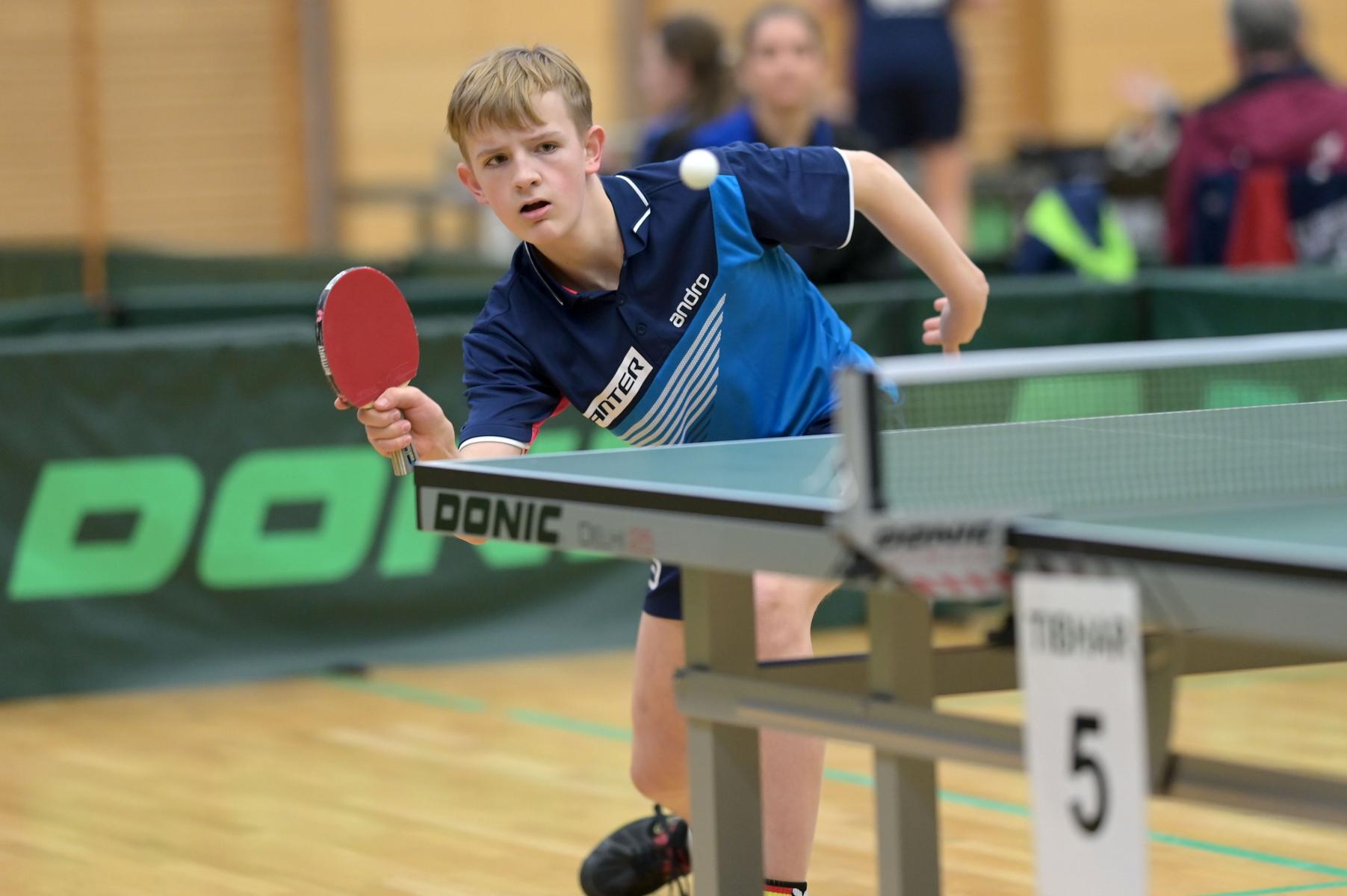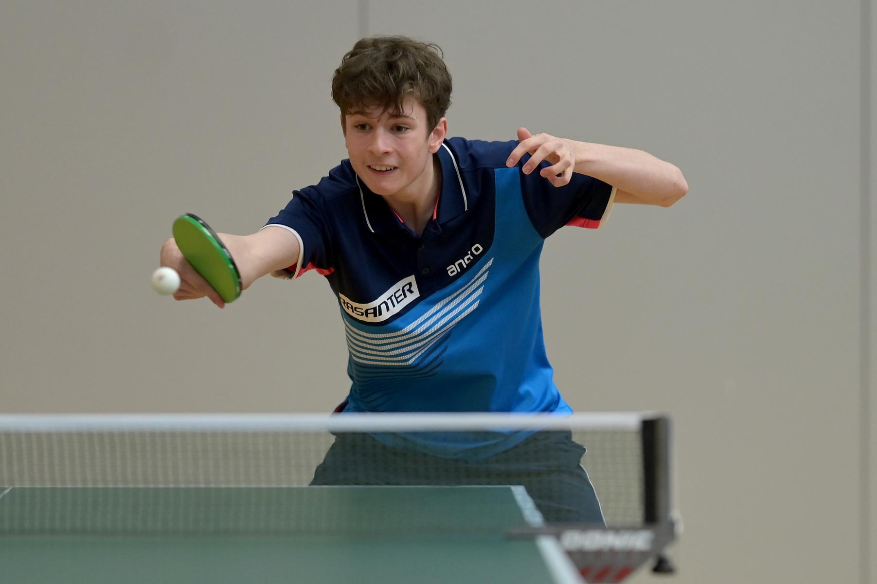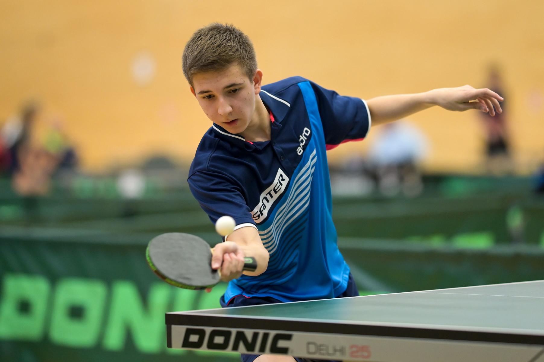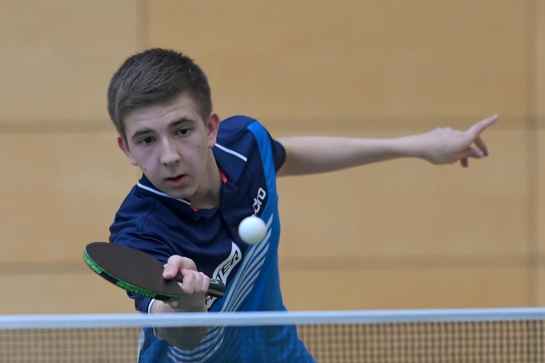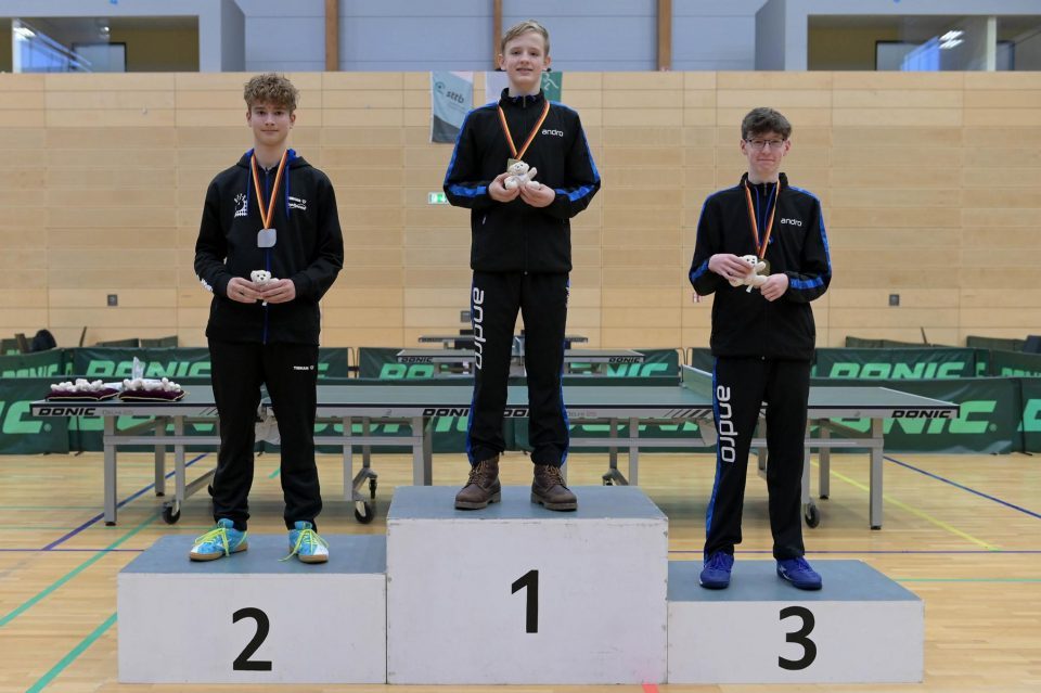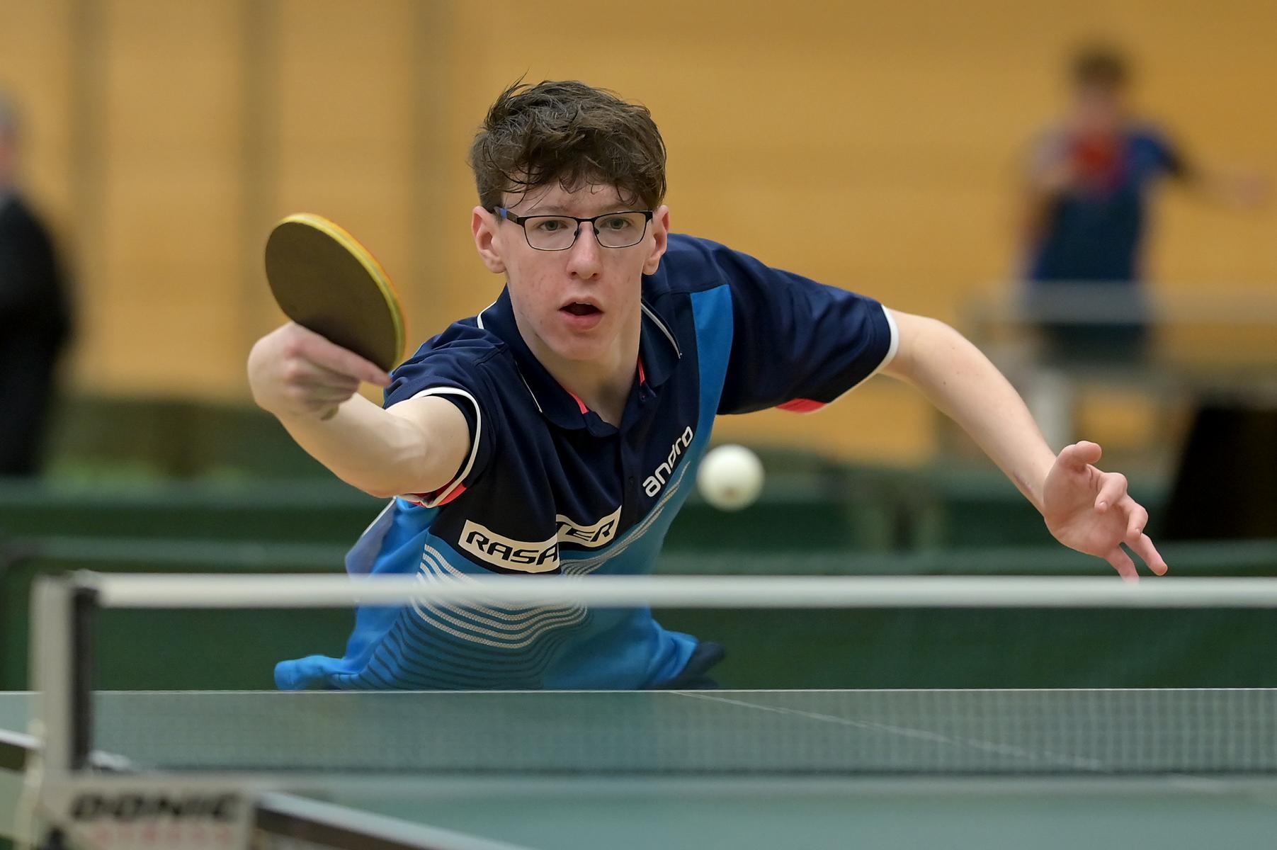 Friedrich Kühn von Burgsdorff bliebt in der Gruppenphase ohne Satzverlust, bis er auf den topgesetzten Matej Haspel aus Bayern traf. In diesem letzten Vorrundenspiel kassierte Friedrich eine deutliche Niederlage und zog als Gruppenzweiter in die Endrunde ein. Aber er musste nicht lange warten, bis er die Chance zur Revanche gegen den Bayern hatte. Denn beide trafen im Endspiel erneut aufeinander. Hier zeigte Friedrich ein spielerisch und taktisch unglaublich gutes Matche und siegte nach dem Verlust des ersten Satzes souverän mit 3:1. Herzlichen Glückwunsch!