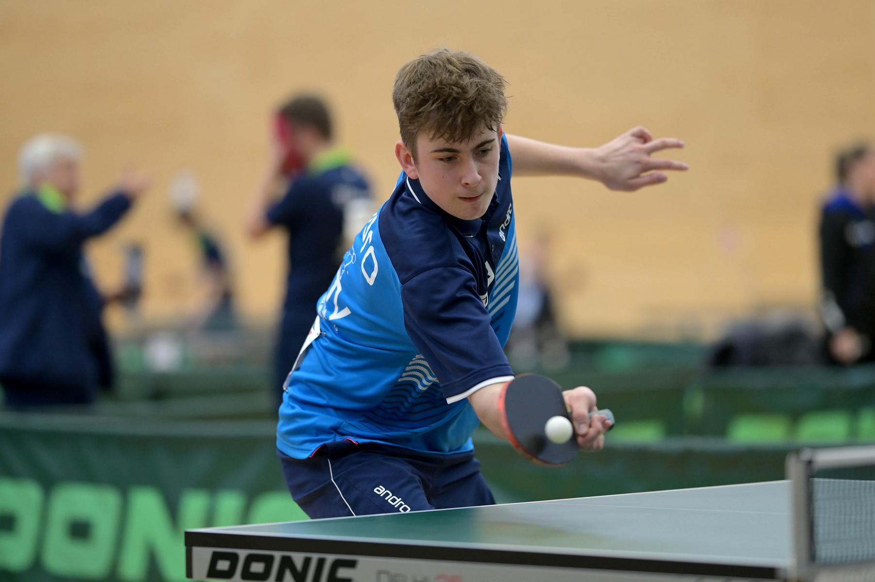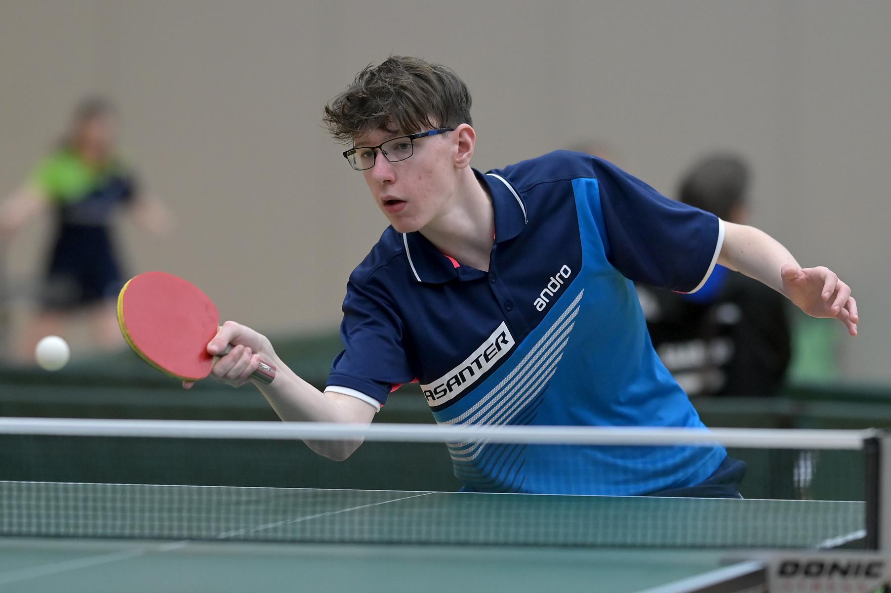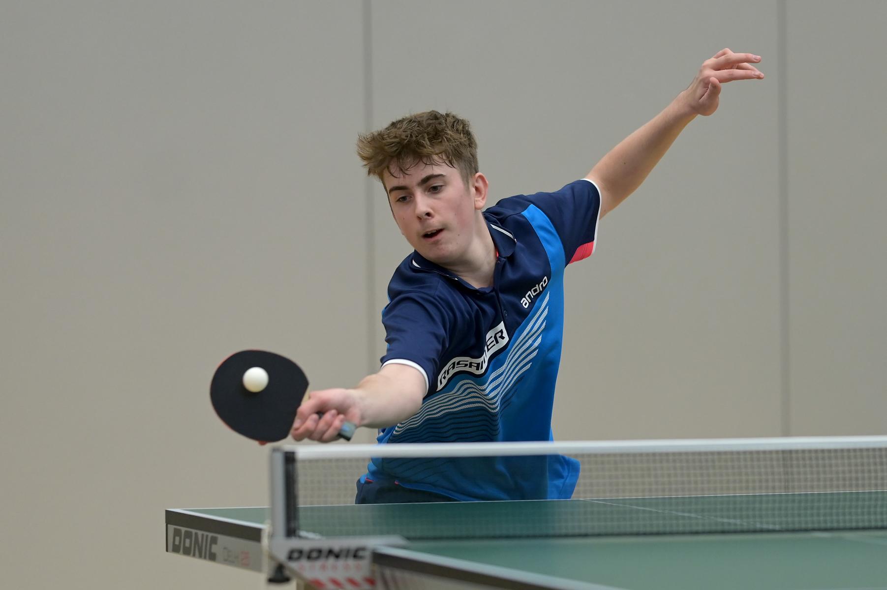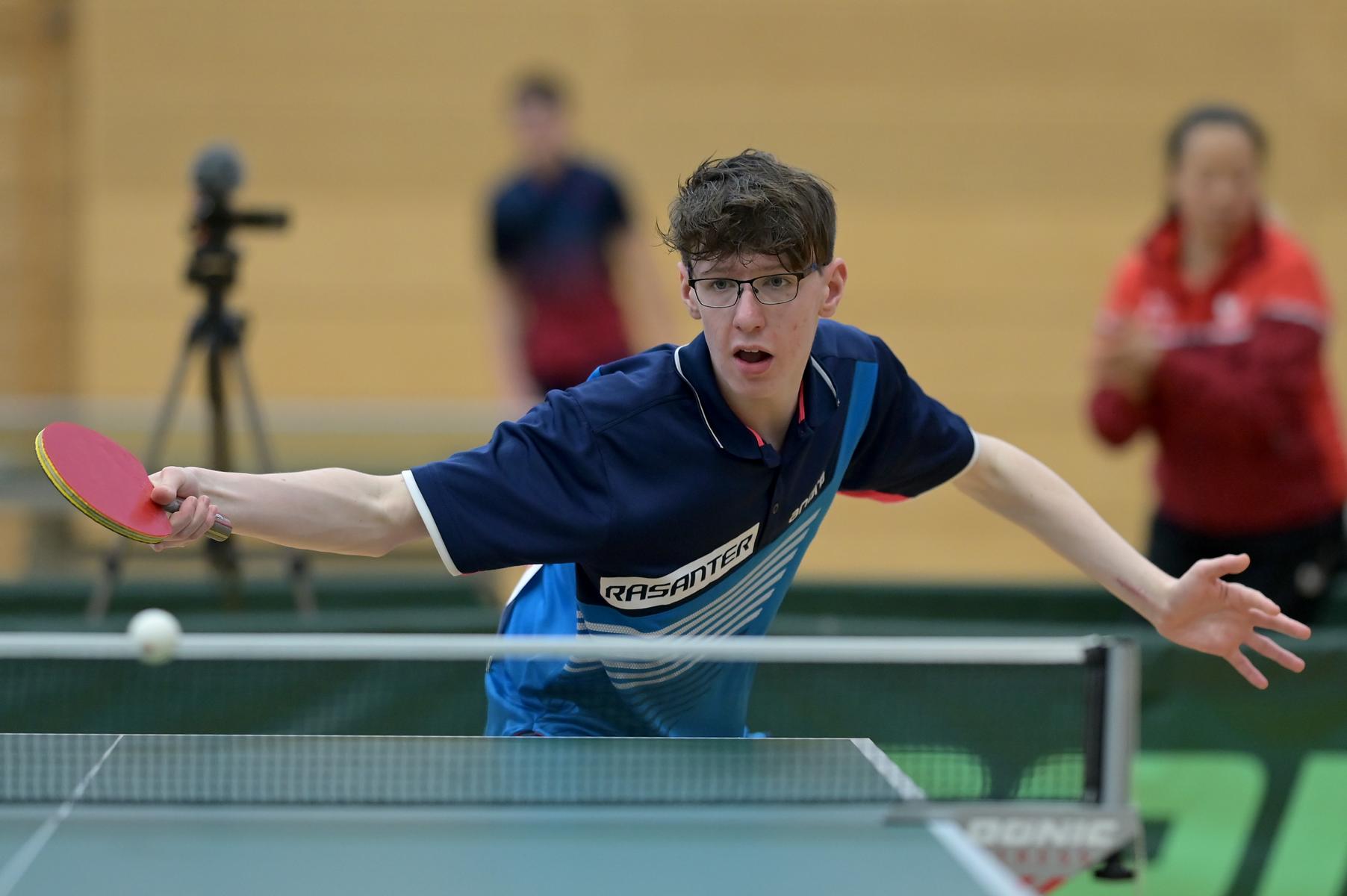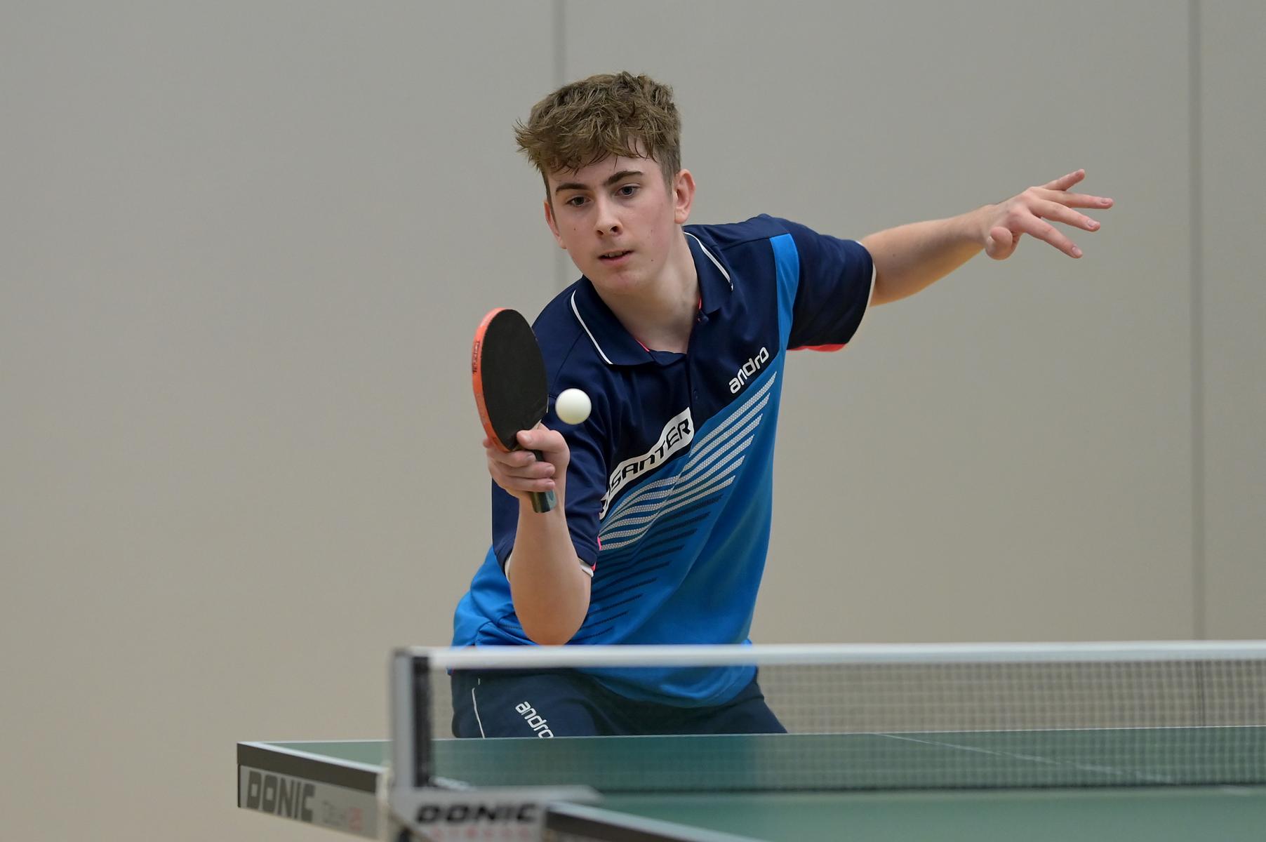 Friedrich Kühn von Burgsdorff bliebt in der Gruppenphase ohne Satzverlust, bis er auf den topgesetzten Matej Haspel aus Bayern traf. In diesem letzten Vorrundenspiel kassierte Friedrich eine deutliche Niederlage und zog als Gruppenzweiter in die Endrunde ein. Aber er musste nicht lange warten, bis er die Chance zur Revanche gegen den Bayern hatte. Denn beide trafen im Endspiel erneut aufeinander. Hier zeigte Friedrich ein spielerisch und taktisch unglaublich gutes Matche und siegte nach dem Verlust des ersten Satzes souverän mit 3:1. Herzlichen Glückwunsch!