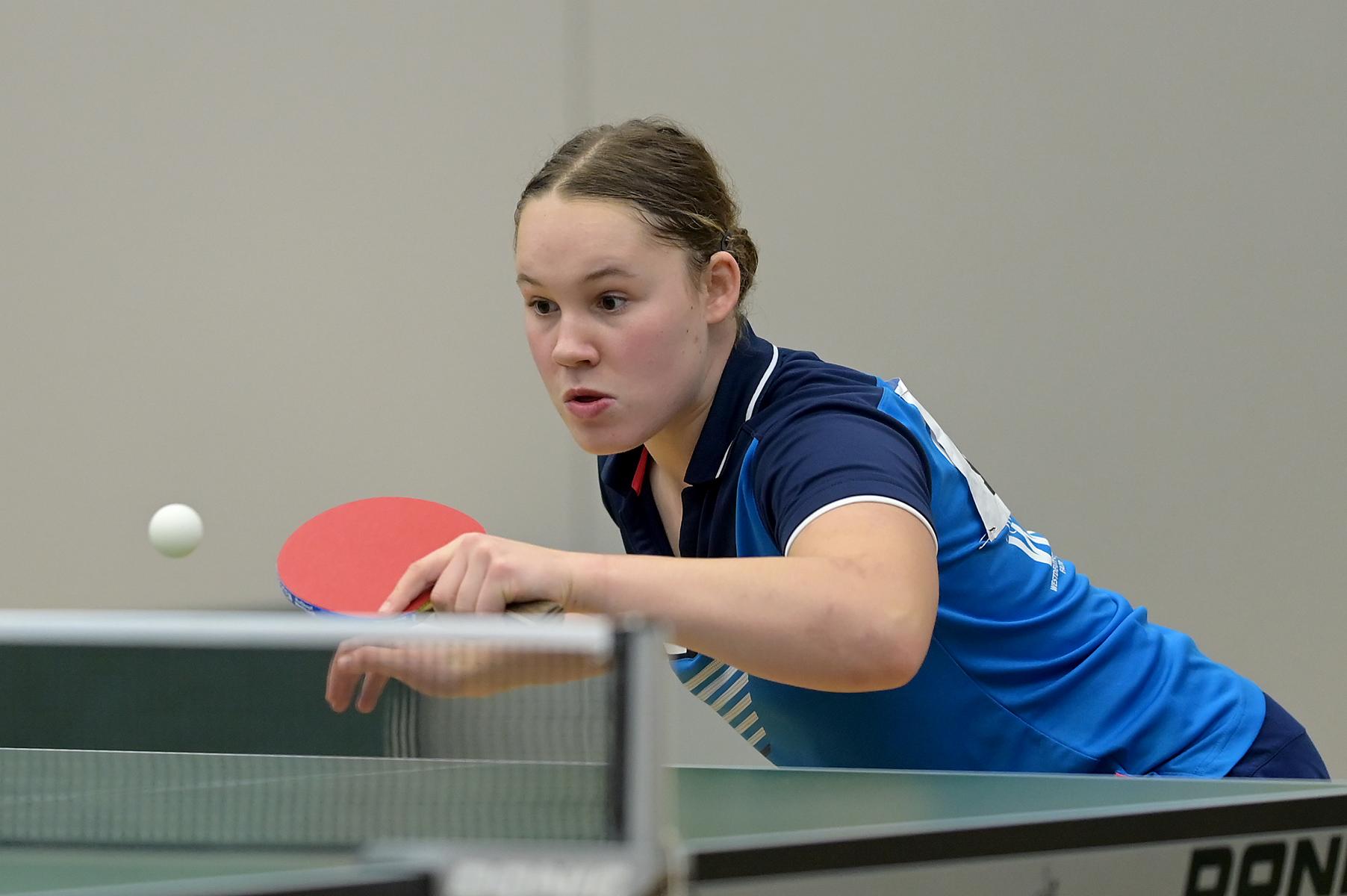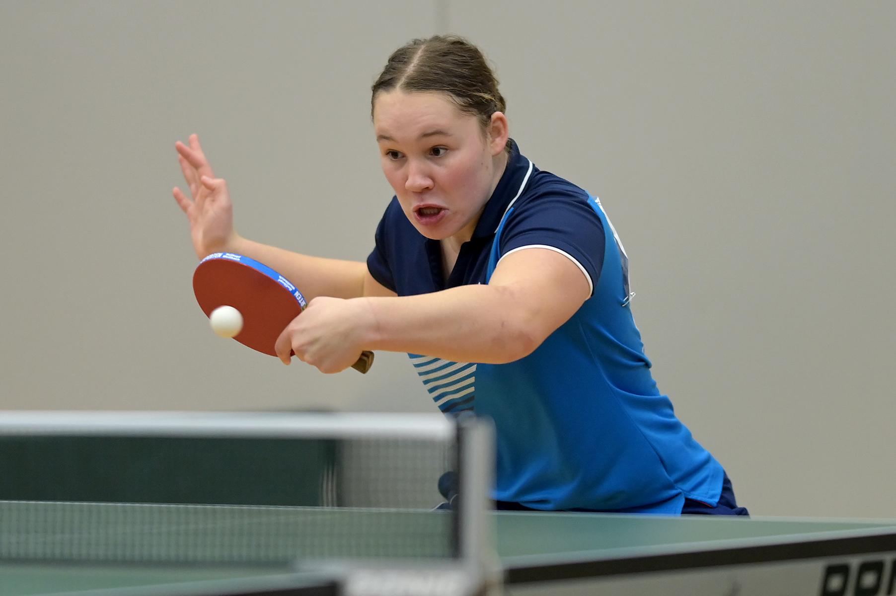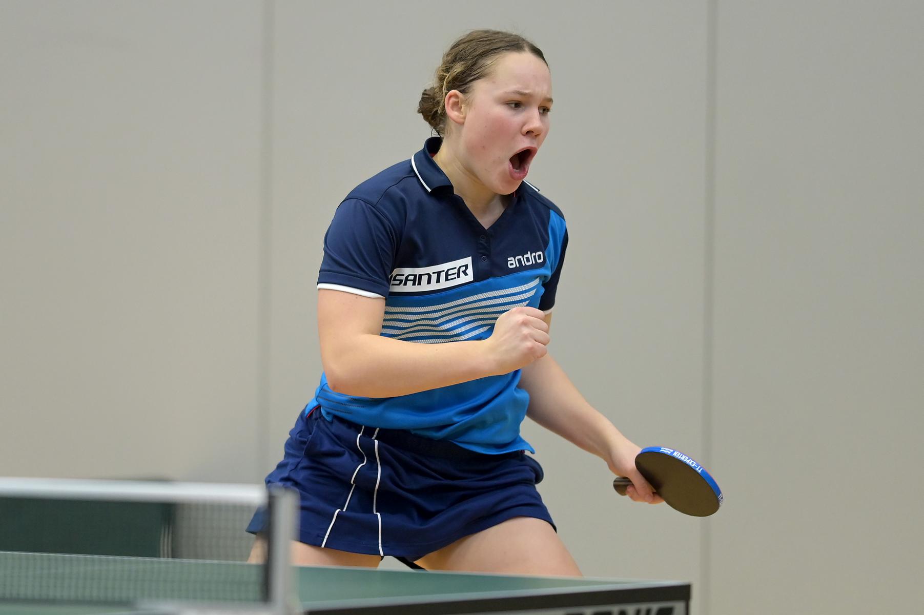 Eireen Kalaitzidou lieferte mit 5:0-Siegen eine lupenreine Vorrunde ab. In der Endrunde besiegte sie dann Lisa Göbecke und Melanie Merk deutlich mit 3:1 und 3:0 und stand damit im Finale gegen Nele Stortz. Nach einem ausgeglichenen Match über fünf Sätze auf sehr gutem Niveau, musste Eireen ihrer Gegnerin am Ende gratulieren. Ein tolles Turnier von Eireen, die am Freitag direkt aus Portugal angereist ist und in Saarbrücken in beeindruckender Weise trotz hoher Belastung agiert hat.