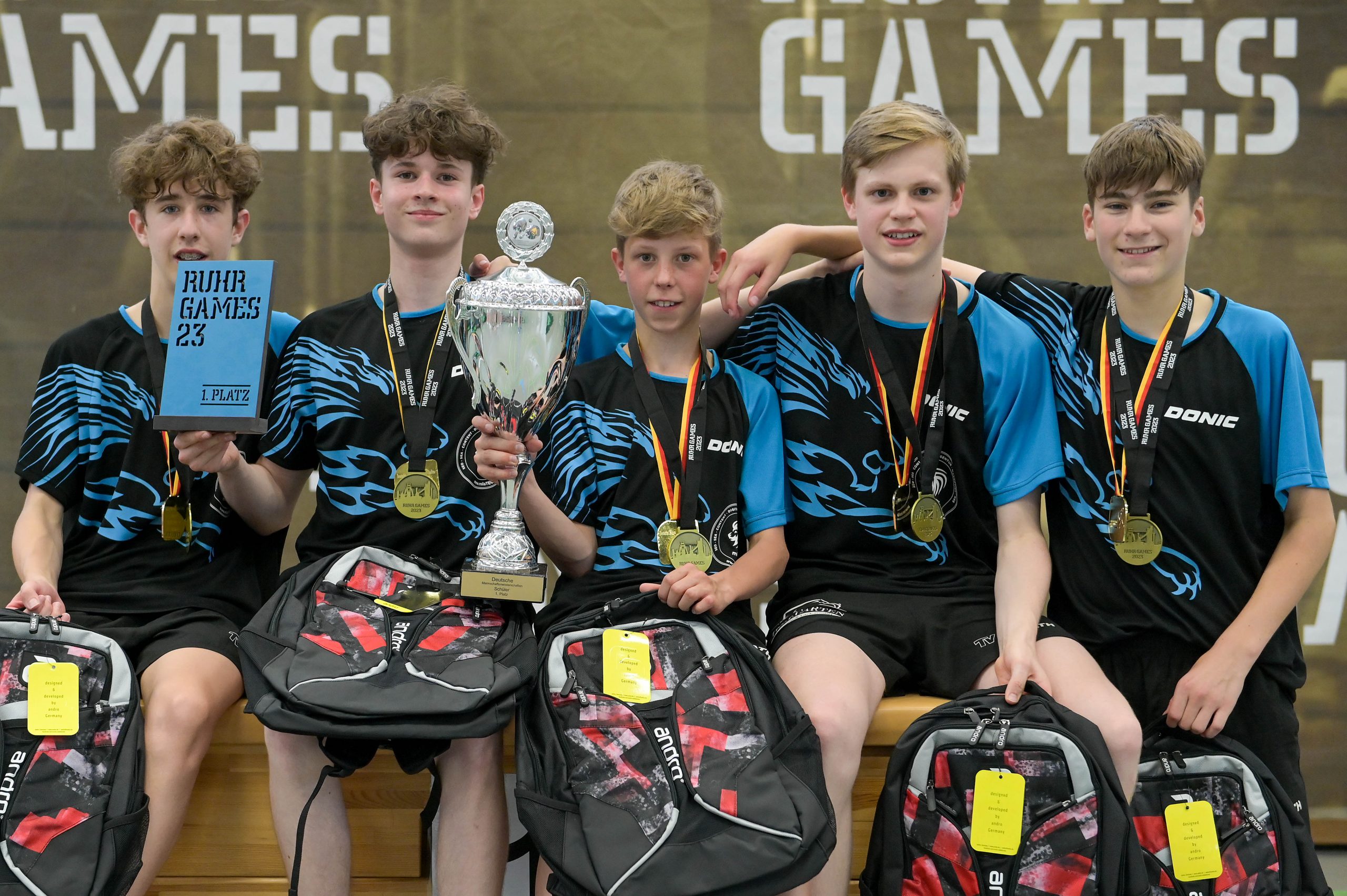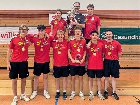 Die U19-Jungs der Borussia (Marko Panić, Tyson Tan Hasse, László Mohácsy, Micheál Kalaitzidis, Jiayu Tong und Yaroslav Chmykhalenko) haben es geschafft – sie sind Deutscher Mannschaftsmeister.