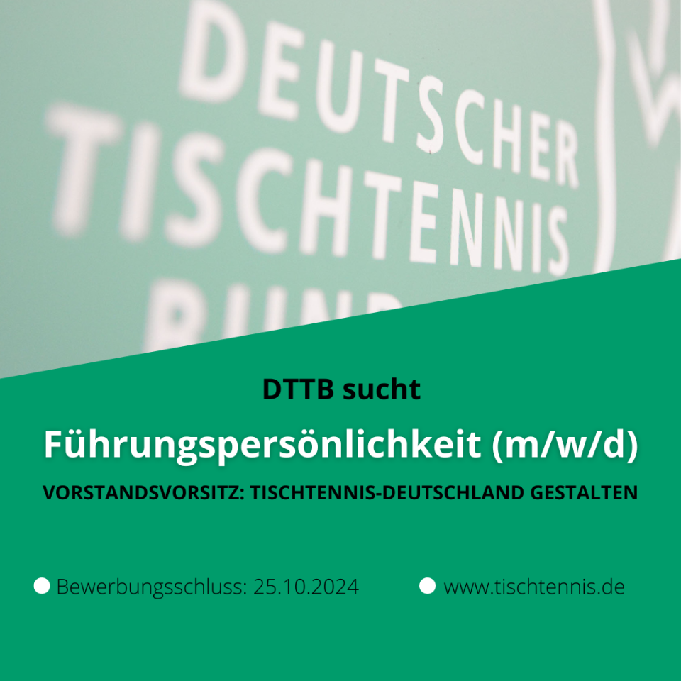 Der Deutsche Tischtennis-Bund (DTTB) sucht eine Führungspersönlichkeit (m/w/d) für den Vorstandsvorsitz.