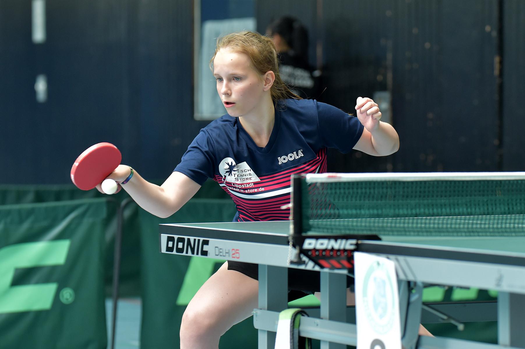 Nachdem Eireen den 3:0-Sieg gegen Sophia in der Vorrunde, mit einem 18:16 im ersten Satz, und Luisa den knappen 3:2-Erfolg gegen Medeea mit in die Endrunde nahmen und beide dann, Eireen gegen Medeea und Luisa gegen Sophia, ihre nächsten Spiele auch gewinnen konnten, kam es zum Endspiel um Platz eins zwischen den beiden Spielerinnen. Hier konnte sich Eireen eine 2:1-Satzführung erspielen, ehe Luisa immer besser ins Spiel fand, sich Satz vier mit 11:6 und dann den ausgegelichenen Entscheidungssatz denkbar knapp mit 11:9 sicherte.