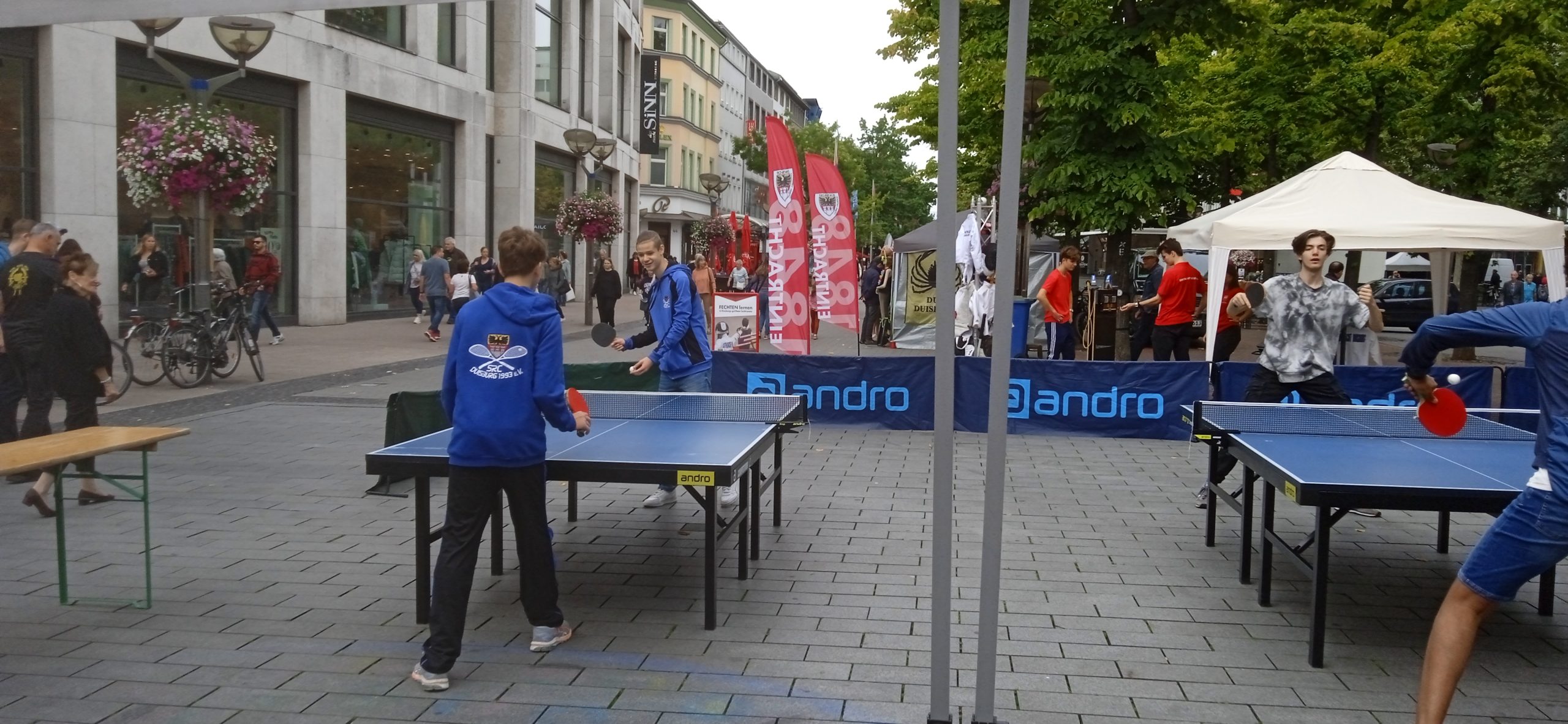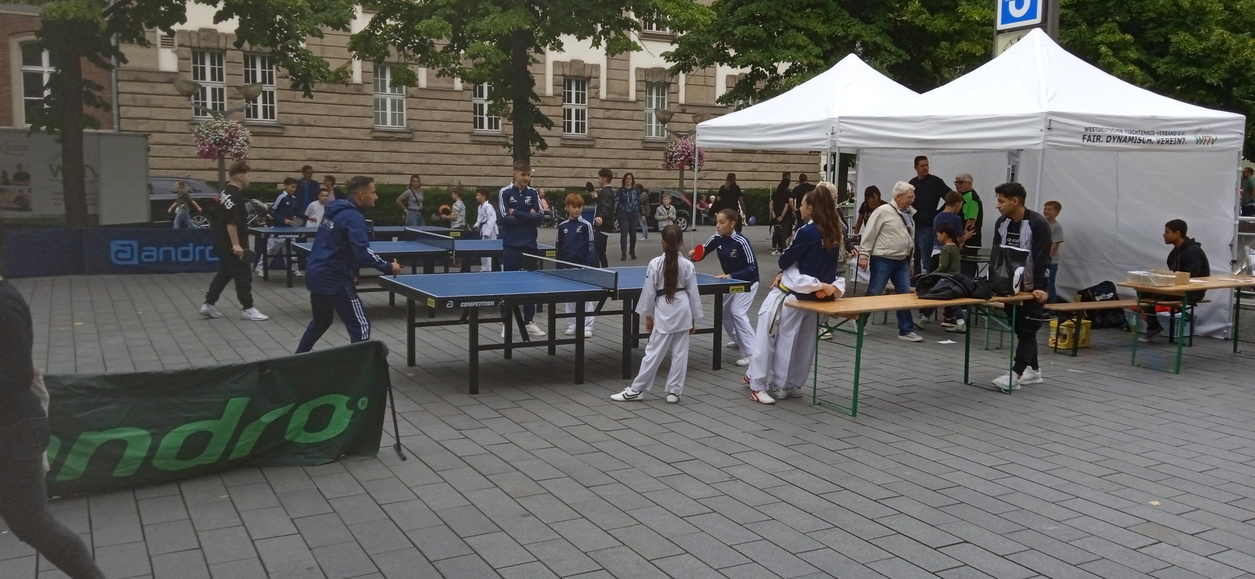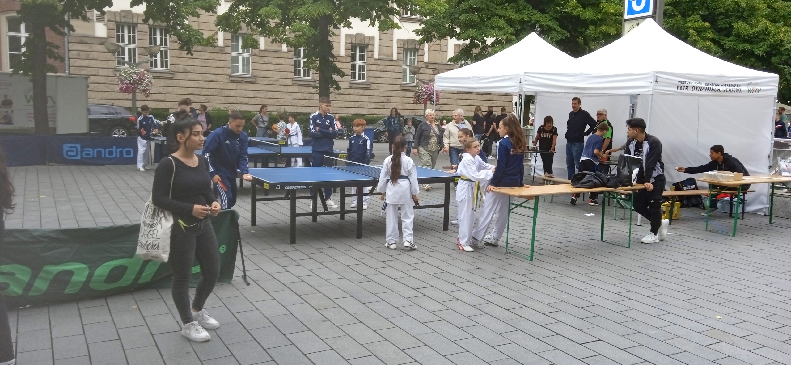 Die Fachschaft Tischtennis Duisburg meldete sich dieses Jahr an, um unseren Sport zu vertreten. Der WTTV begleitete das Event und stellte dafür das nötige Material in Form von Tischen, Spielfeldumrandungen, Pavillons, Schlägern, Bällen und Infomaterials. Es wurden viele Vereinslisten an Interessierte verteilt und auch dieses Jahr wurden die Tische wieder durchgehend bespielt. An dem hochfrequentierten Standort, direkt vor dem Forum, konnten wir die Präsenz von Tischtennis wieder weit nach vorne bringen. Wir freuen uns auf das nächste Jahr!