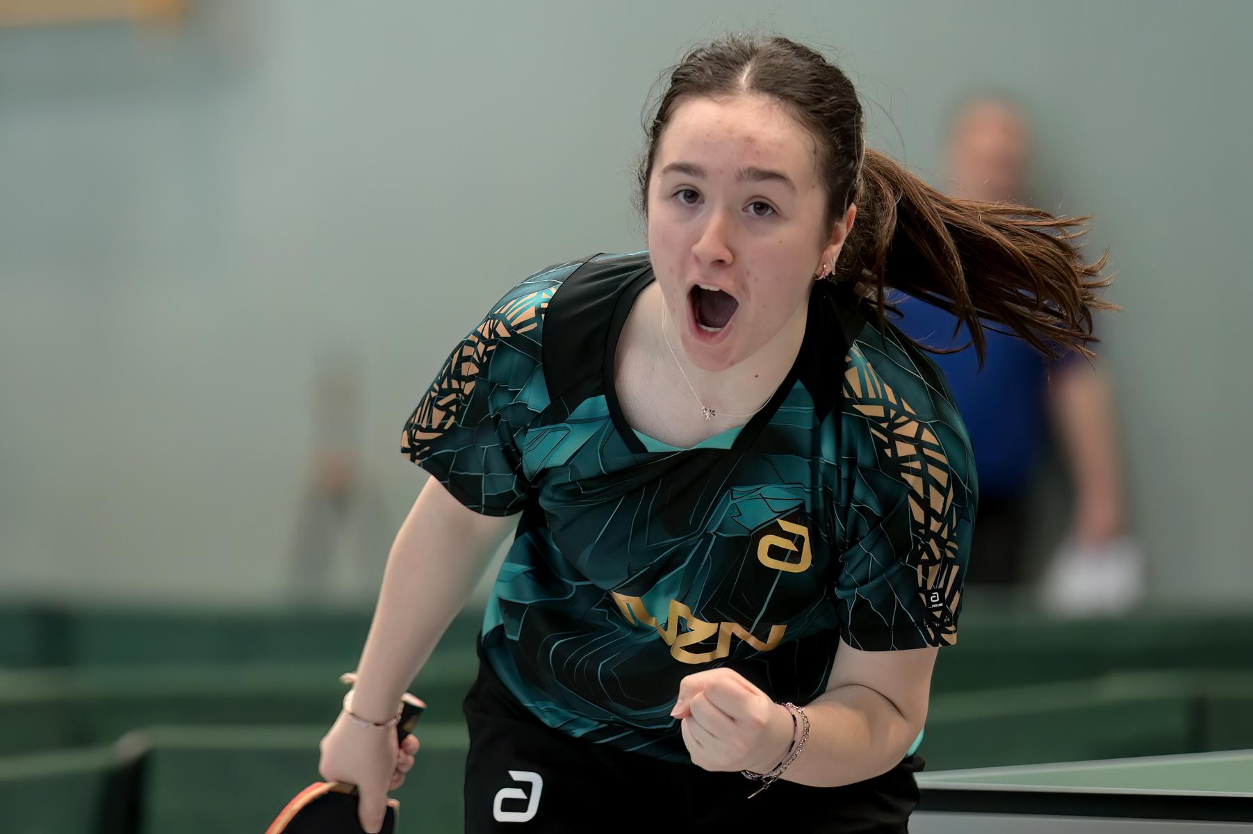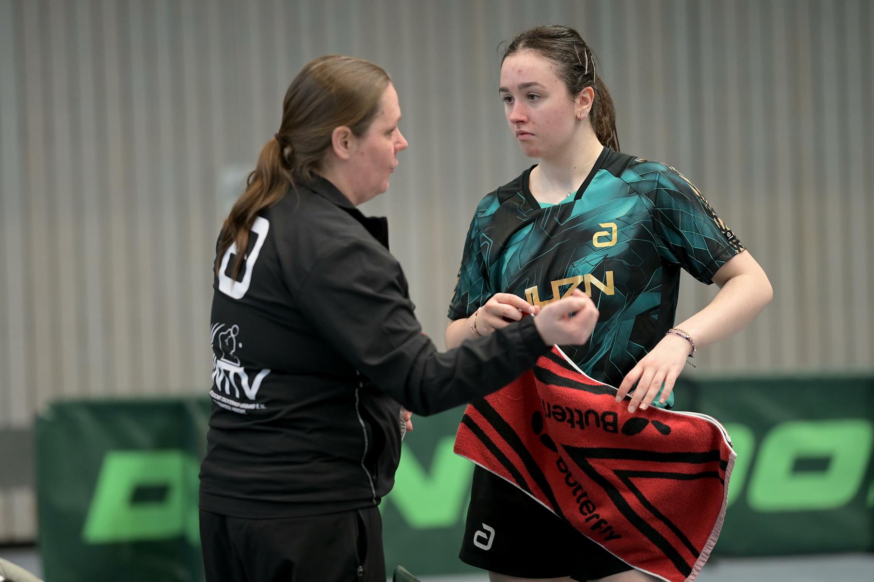 Am Sonntag kam es gleich im ersten Spiel zum Showdown gegen Lorena Morsch (Hessen), die ebenfalls am Vortag ungeschlagen blieb. Lorena erwischte den besseren Start und führte bereits 2:0 in Sätzen. Doch Eireen kämpfte sich eindrucksvoll zurück, glich zum 2:2 aus und zeigte auch im Entscheidungssatz große Nervenstärke. Nach einem 5:9-Rückstand gelang ihr die Wende und sie entschied das Spiel für sich. Damit war sie zu diesem Zeitpunkt die einzige ungeschlagene Spielerin.