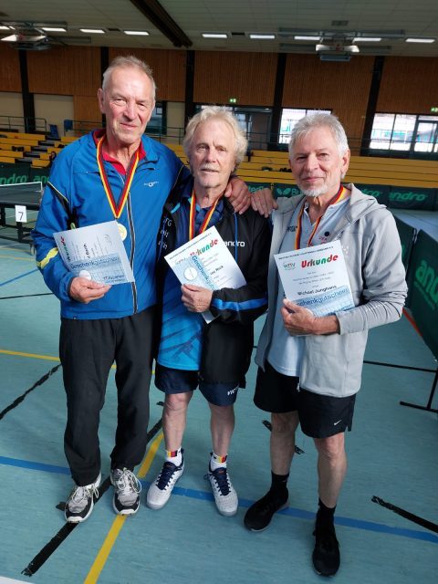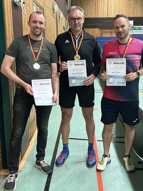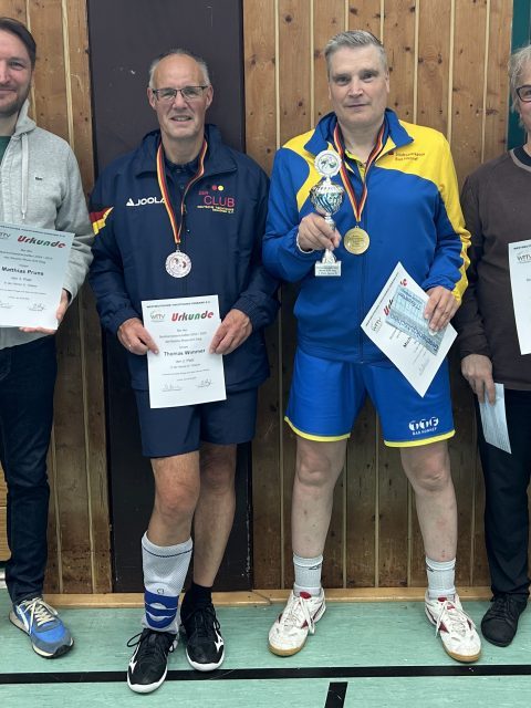 Ergebnisliste – Mit 150 TeilnehmerInnen waren 27% weniger Aktive in Lohmar dabei, als bei den BM 2023. Es wurden nur bei den Senioren der AK60 Doppel ausgetragen, in den übrigen Klassen entfiel die Doppelkonkurrenz, da die Halle um 22 Uhr geschlossen wurde!
