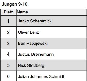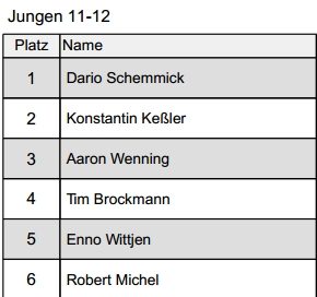 Hier die Liste der sechs Erst-Platzierten. Insgesamt waren 106 Kinder dabei. Großartig!