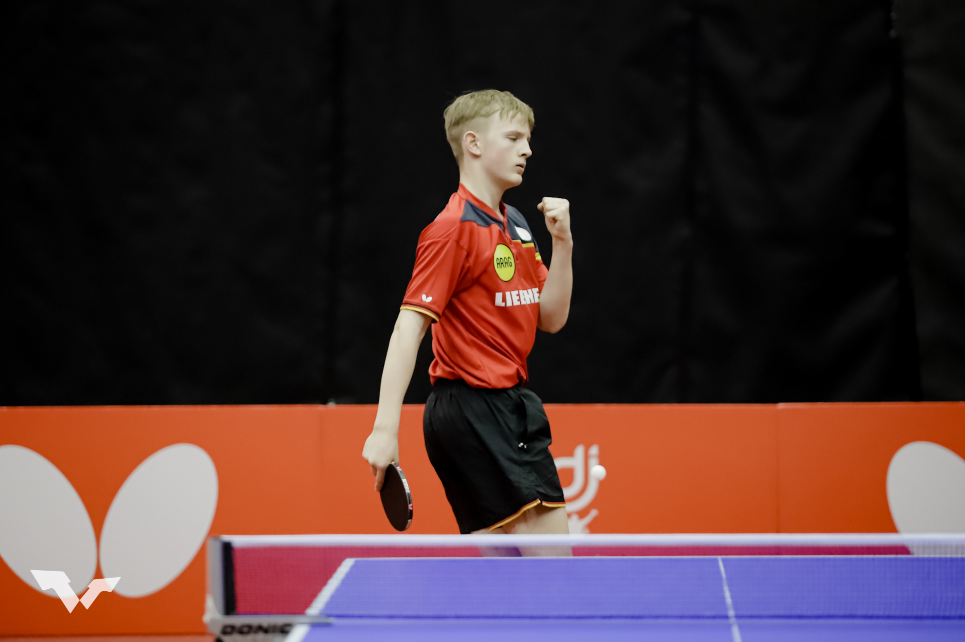 Als einziger WTTV Spieler erwischte Friedrich eine Vierergruppe und traf als erstes auf den ungesetzten Brasilianer Kim Takayasu. Immer wieder versuchte dieser mit seiner starken Vorhand zu Punkten, schlussendlich konnte Friedrich das Spiel allerdings 3:1 gewinnen. Im zweiten Spiel wartete der in der Gruppe an eins gesetzte Robert Podar, einer der Top U15 Athleten Rumäniens. Friedrich erwischte einen guten Start und konnte den ersten Satz mit 11:6 gewinnen. Im zweiten Satz führte er bereits mit 6:0 und 9:3, anschließend fand Podar deutlich besser ins Spiel und konnte zunächst auf 10:10 ausgleichen und erspielte sich bei 12:11 sogar einen Satzball. Trotzdem sollte es am Ende für keinen Satzgewinn reichen und Friedrich konnte im dritten Gruppenspiel mit einem klaren 3:0 gegen Tiago Magalhaes aus Portugal den Gruppensieg perfekt machen.