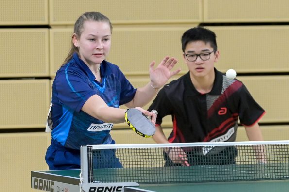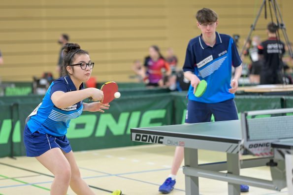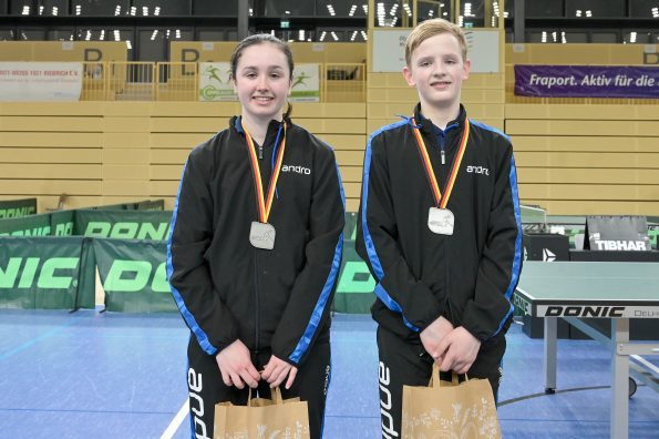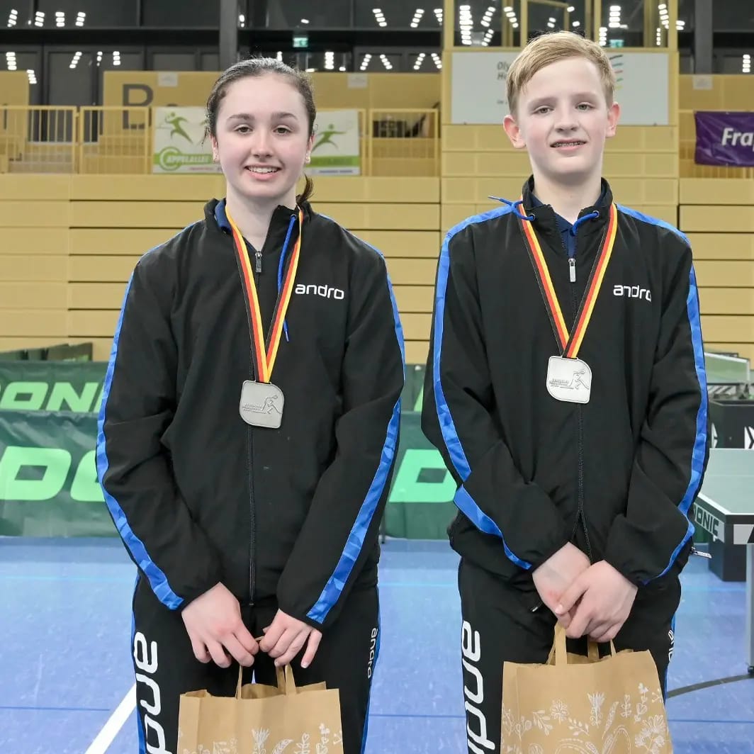Der Westdeutsche Tischtennis-Verband kehrte von den Deutschen Meisterschaften aus Wiesbaden mit fünf Medaillen zurück. Bereits am ersten Turniertag wurden im neu eingeführten Mixed-Wettbewerb die ersten Sieger gekürt. Hier hatte der WTTV mit dem Mixed Eireen Kalaitzidou/Friedrich Kühn von Burgsdorff und Noah Hersel/ Josephina Neumann (HETTV) zwei heiße Feuer im Rennen. Leider ergab die Auslosung, dass beide bereits im Viertelfinale aufeinander trafen. Nach einem hochklassigen Match konnten sich Eireen und Friedrich denkbar knapp mit 15:13 im fünften Satz durchsetzen. Nach einem deutlichen 3:0 im Halbfinale gegen Kloke/Ahn (TTVN) wartete im Finale das topgesetzte bayrische Mixed Itagaki/Haspel. Auch dieses Spiel ging über die volle Distanz und trotz einer 2:1 Satzführung mussten Eireen und Friedrich dem bayrischen Mixed am Ende nach einem tollen Spiel gratulieren. Herzlichen Glückwunsch, Silber gewonnen!!!