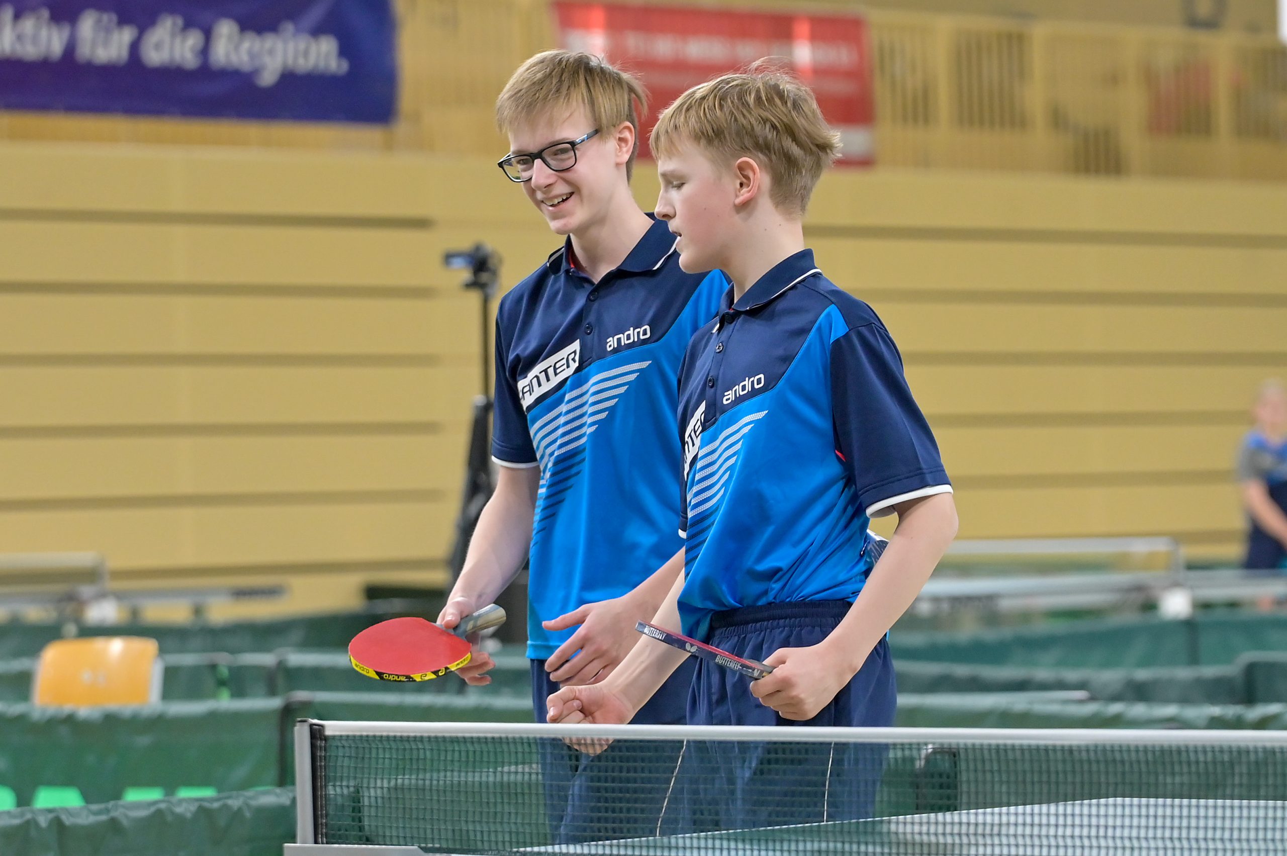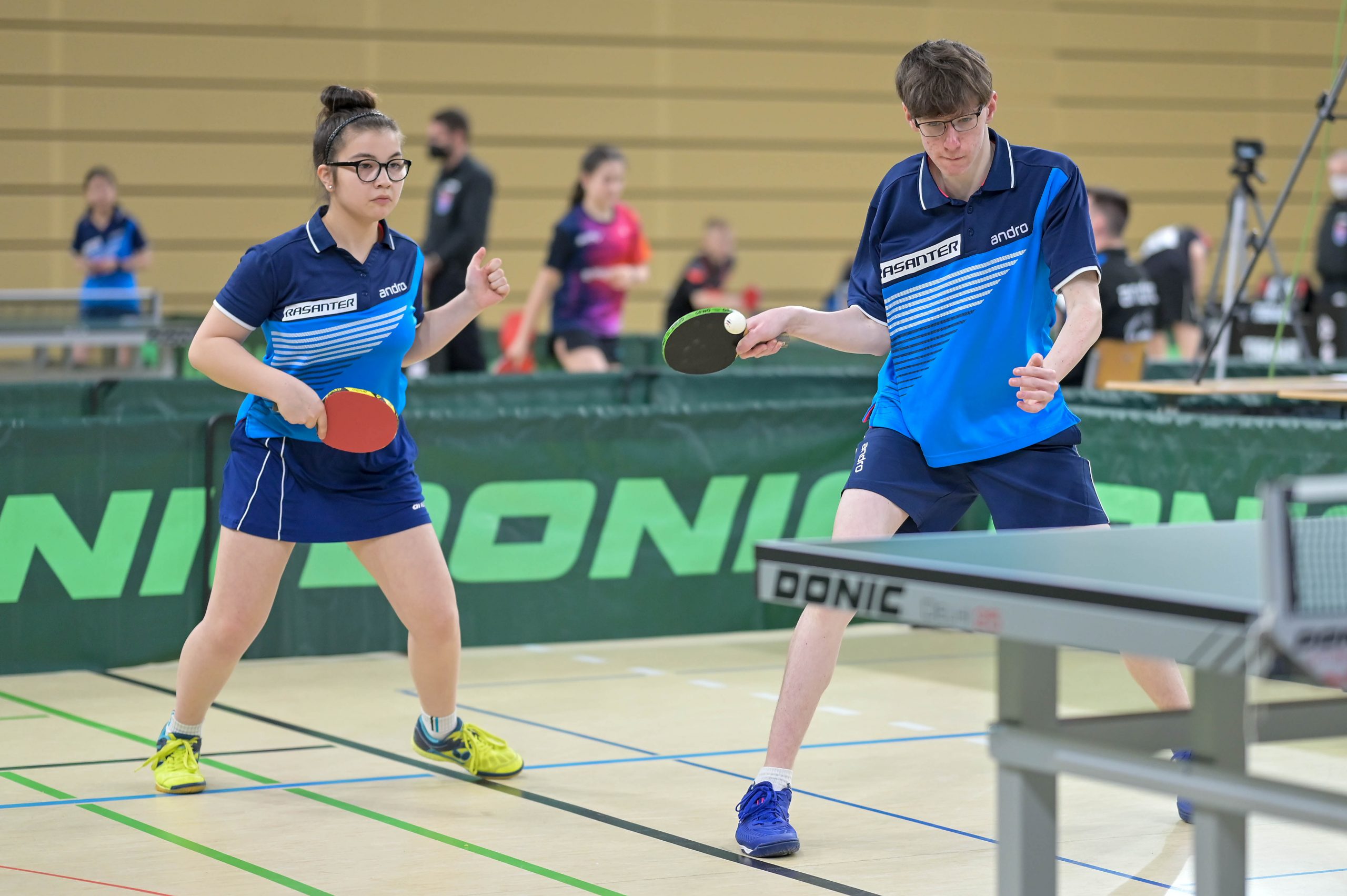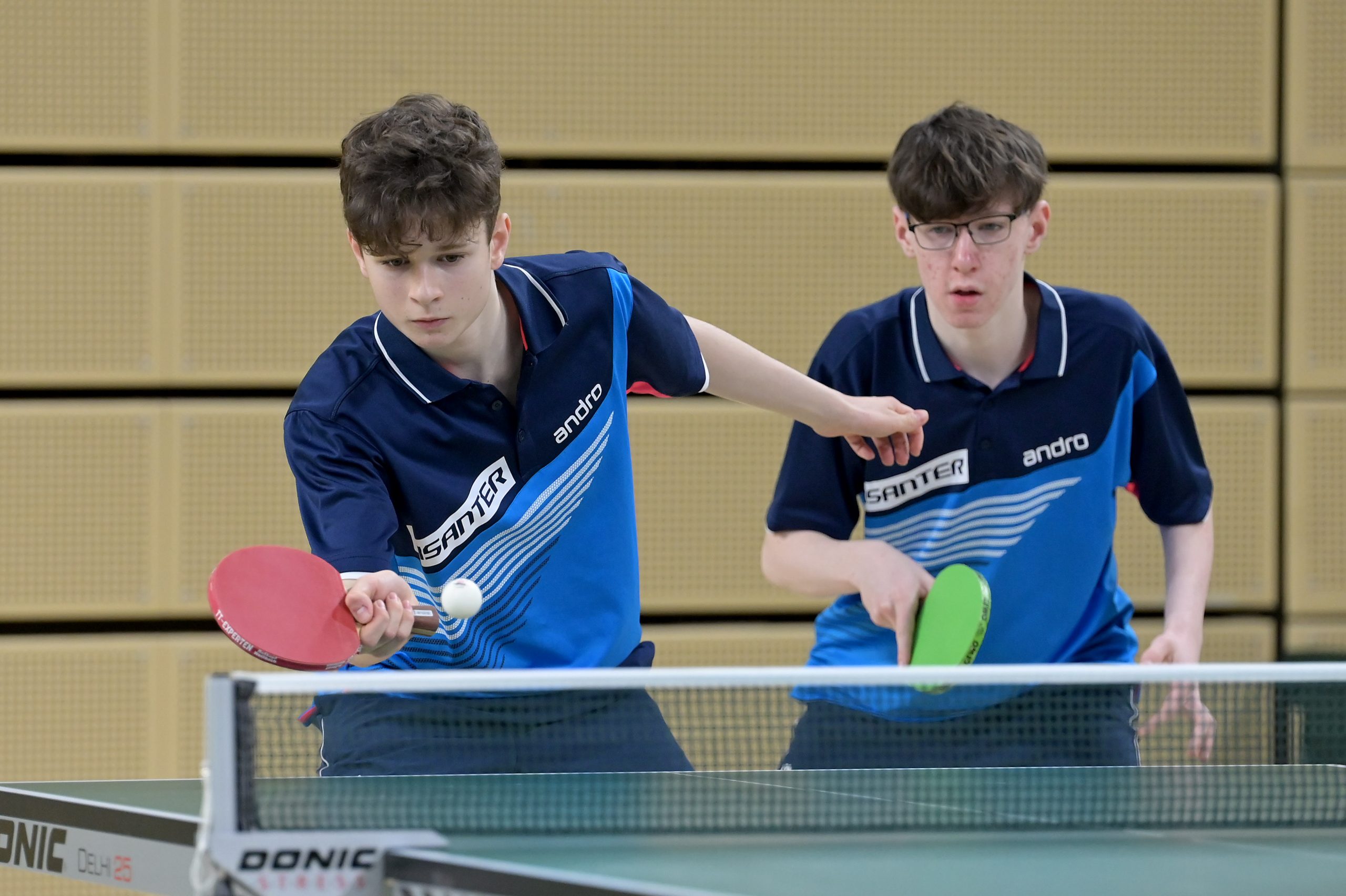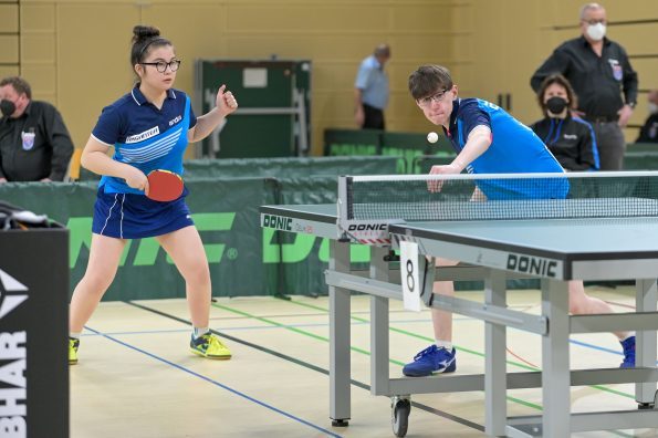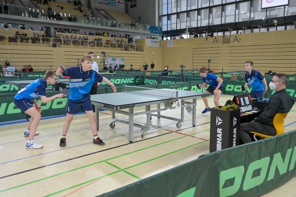 In der Jungen Doppel-Konkurrenz war im Finale dreimal das WTTV-Trikot vertreten. Denn hier trafen Noah Hersel mit seinem bayrischen Partner Matej Haspel auf Chris Andersen und Friedrich Kühn von Burgsdorff. Beide Doppel besiegten auf dem Weg ins Finale die in ihrer Hälfte topgesetzten Doppel und zeigten zum Teil unfassbare und spektakuläre Ballwechsel auf sehr hohem Niveau. Die Goldmedaille sicherten sich am Ende Noah und Matej durch ihren 3:0-Erfolg im Endspiel. Herzlichen Glückwunsch!