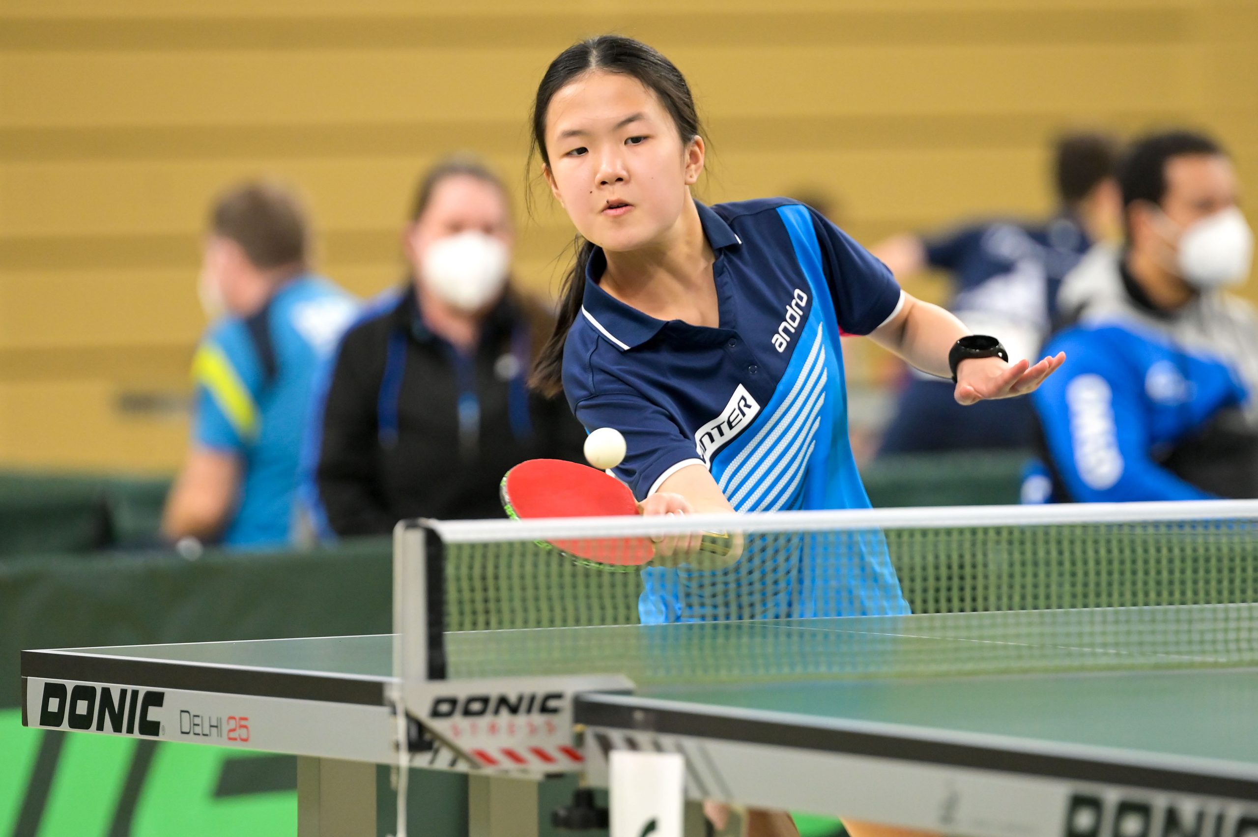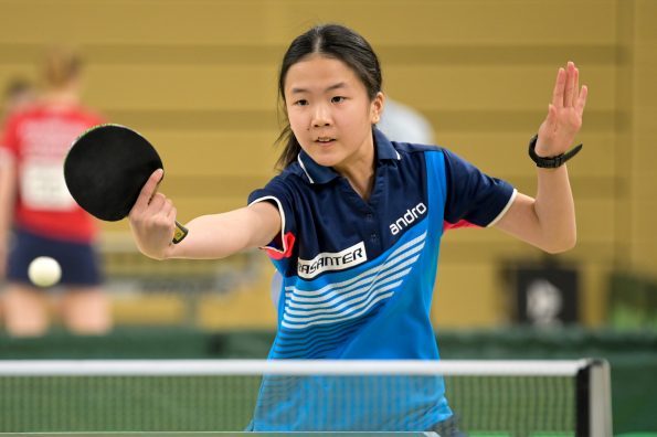 Luisa ließ in dieser Runde gegen Krießbach (HETTV) nichts anbrennen und folgte mit einem souveränen 3:0-Sieg Eireen ins Achtelfinale. Hier wartete nun allerdings die Favoritin auf den Einzeltitel, Koharu Itagaki aus Bayern. Aber davon zeigte sich Luisa keineswegs beeindruckt und spielte in dieser Partie ihr bestes Tischtennis. Nachdem sie den ersten Satz knapp mit 9:11 verloren hatte, kam Luisa immer besser ins Spiel und konnte die „kleine Sensation“ schaffen und die nächsten drei Sätze zu 10, 6 und 8 gewinnen. Das bedeutete den Viertelfinaleinzug. Dieses wollte natürlich auch Eireen erreichen, aber in ihrer Partie gegen Kloke (TTVN) kam die Düsseldorferin von Anfang an nicht so richtig ins Spiel und musste am Ende eine deutliche 0:3-Niederlage kassieren.
