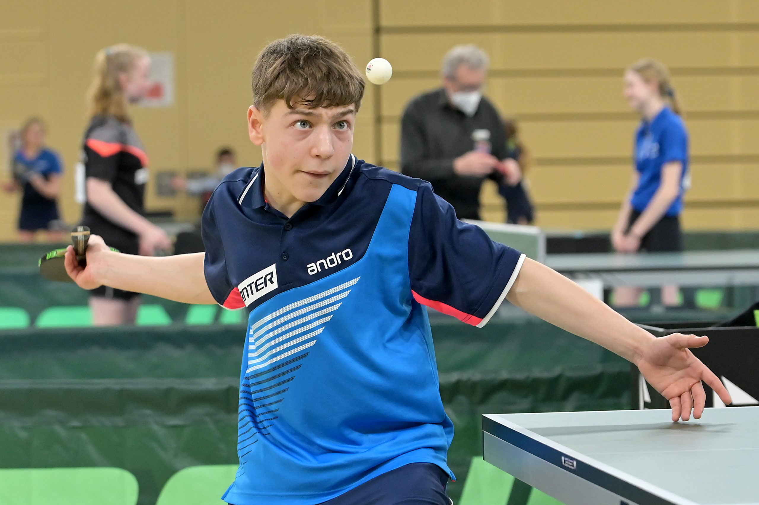 Bei den Jungen konnten mit Chris Andersen, Noah Hersel, Friedrich Kühn von Burgsdorff, Jamal Oudriss und Alexander Sahakiants gleich fünf WTTV-Starter alle ihre Gruppenspiele gewinnen, wobei Alex dabei den in seiner Gruppe an Position ein gesetzten Jager (BYTTV) mit 3:2 bezwingen konnte.