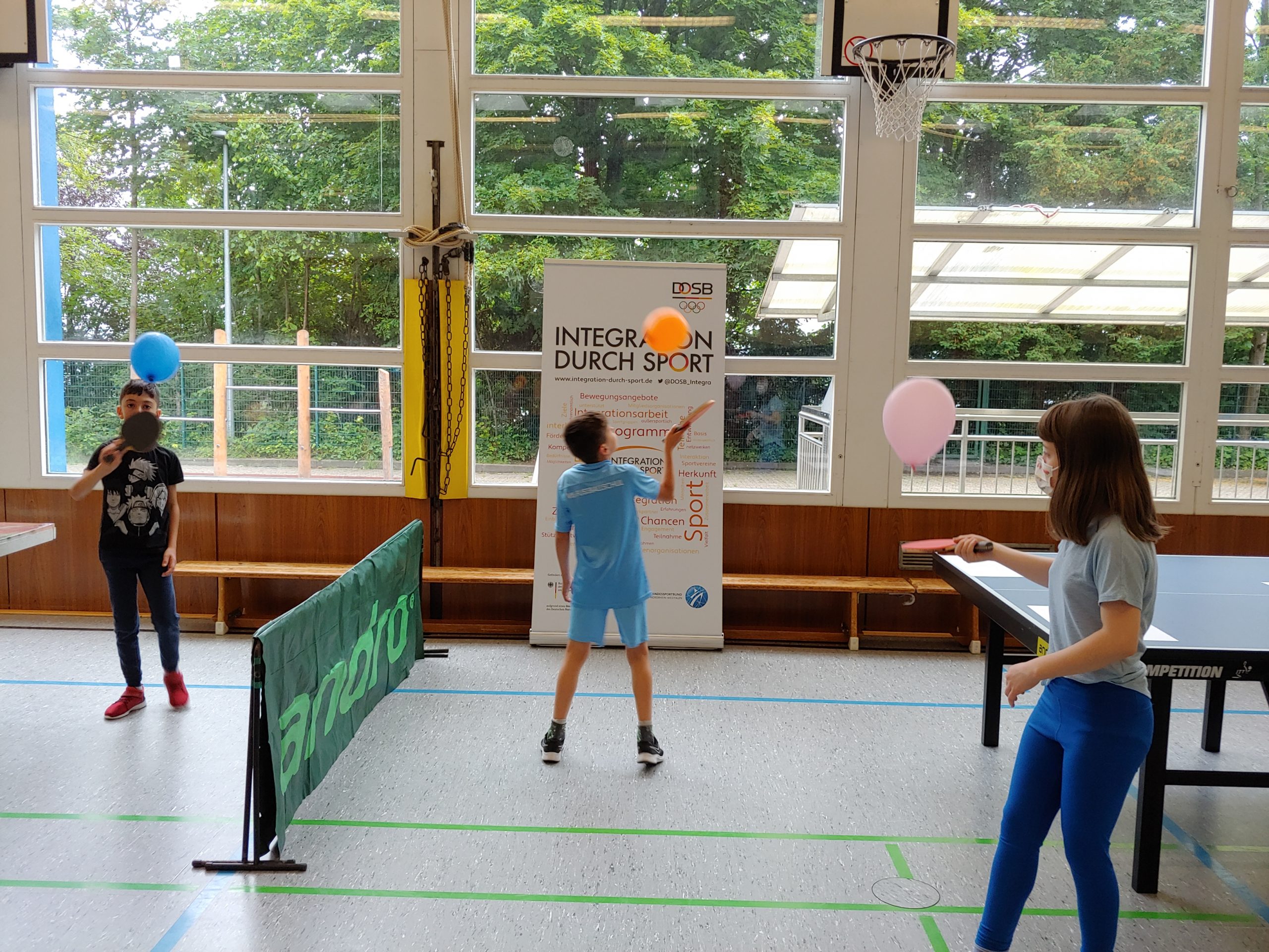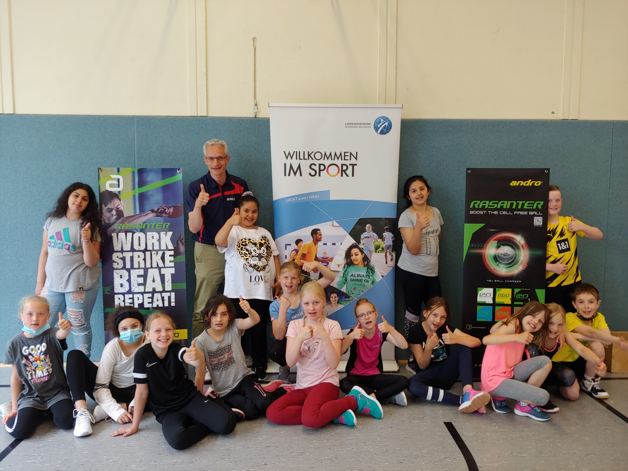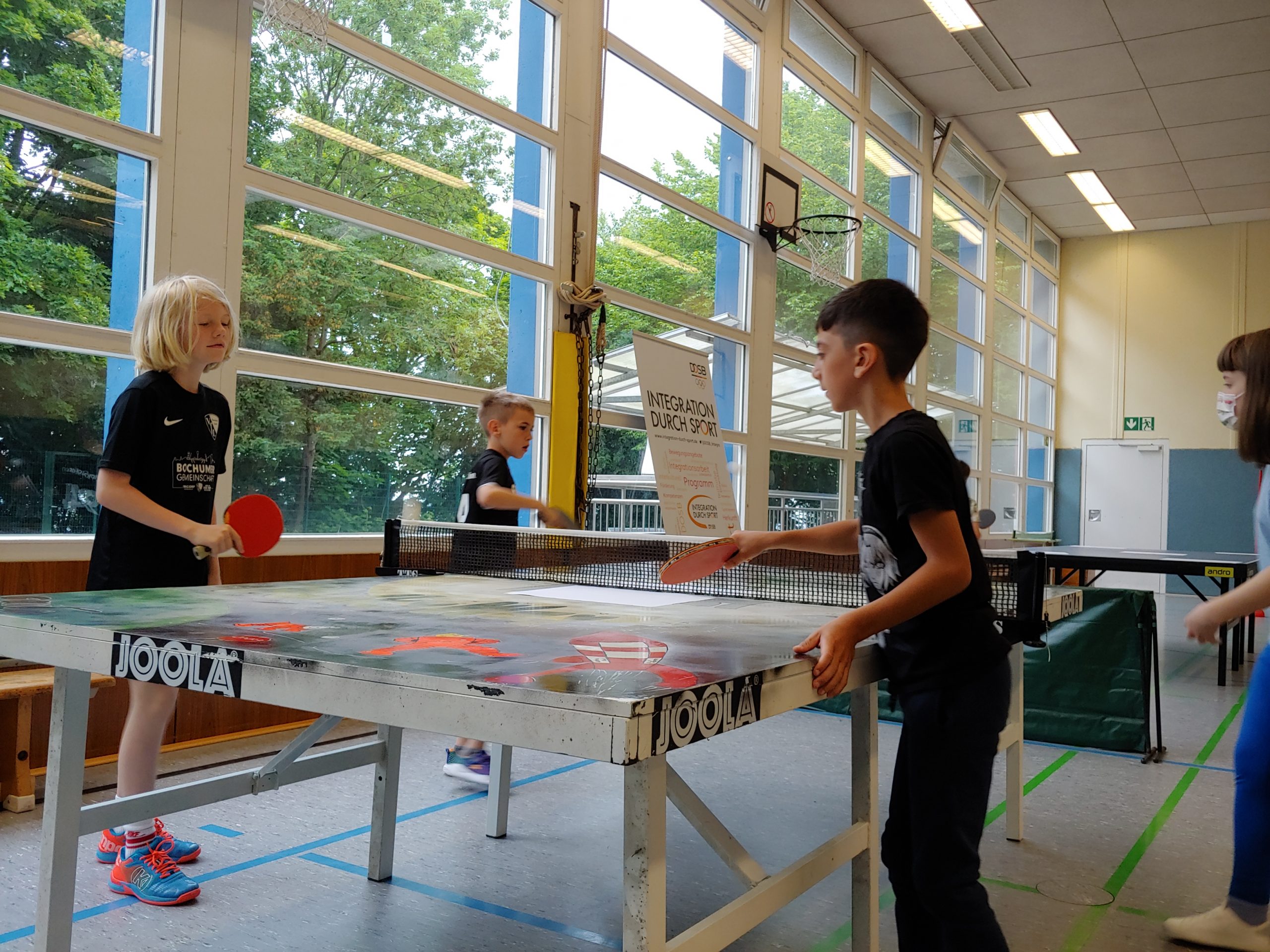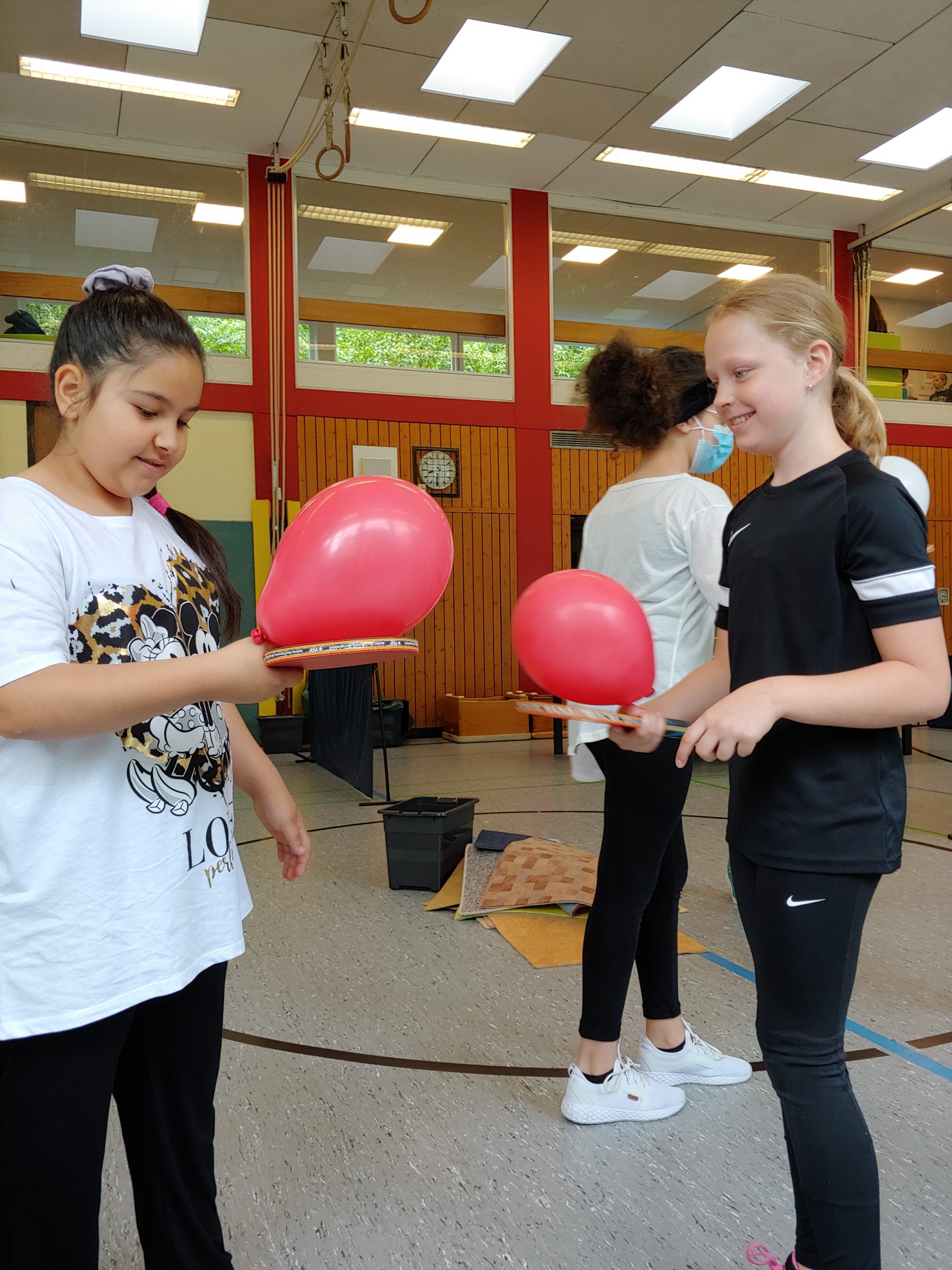 In der Woche vom 1.-10.06.2022 führte die Grundschule am Strückerberg eine Projektwoche durch. Unter dem Motto „Integration durch Sport“ boten sich dabei den Schülerinnen und Schülern des 3. und 4. Jahrgangs auch die Möglichkeit, an vielen verschiedenen Stationen und in abwechslungsreichen Spielformen Freude am Tischtennisspielen zu entwickeln. Ein Vorhaben, das durch die Bereitstellung eines großen Angebots an verschiedenen Mini-, Maxi- und Rundtischen des WTTVs neben den Standardtischen auch tatsächlich in die Tat umgesetzt werden konnten. Dabei war mit dem „Spacytisch“ auch schnell der Lieblingstisch der Kinder ausgemacht.