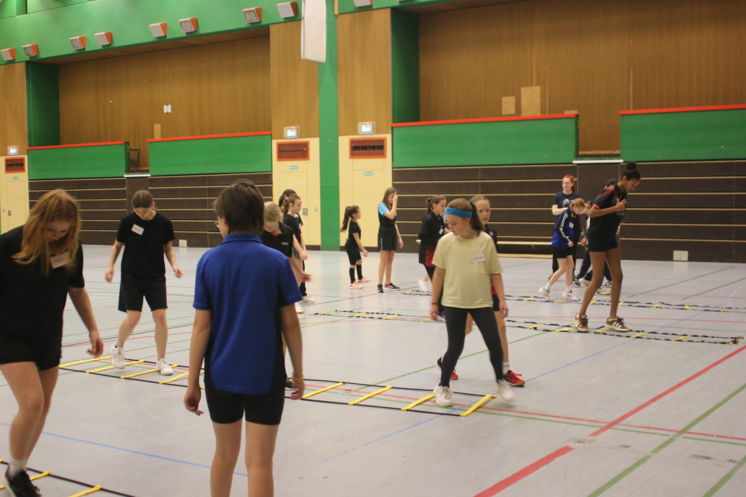 Der Tag begann früh für die Betreuer und Trainer, die sich bereits um 9:30 Uhr trafen, um letzte Vorbereitungen zu treffen und die verschiedenen Stationen einzurichten. Die ersten Teilnehmerinnen trafen pünktlich um 10:30 Uhr ein, und die Vorfreude in der Luft war spürbar. Nach einer herzlichen Begrüßung durch Sabine Potschinski um 10:50 Uhr startete das Programm mit voller Kraft.