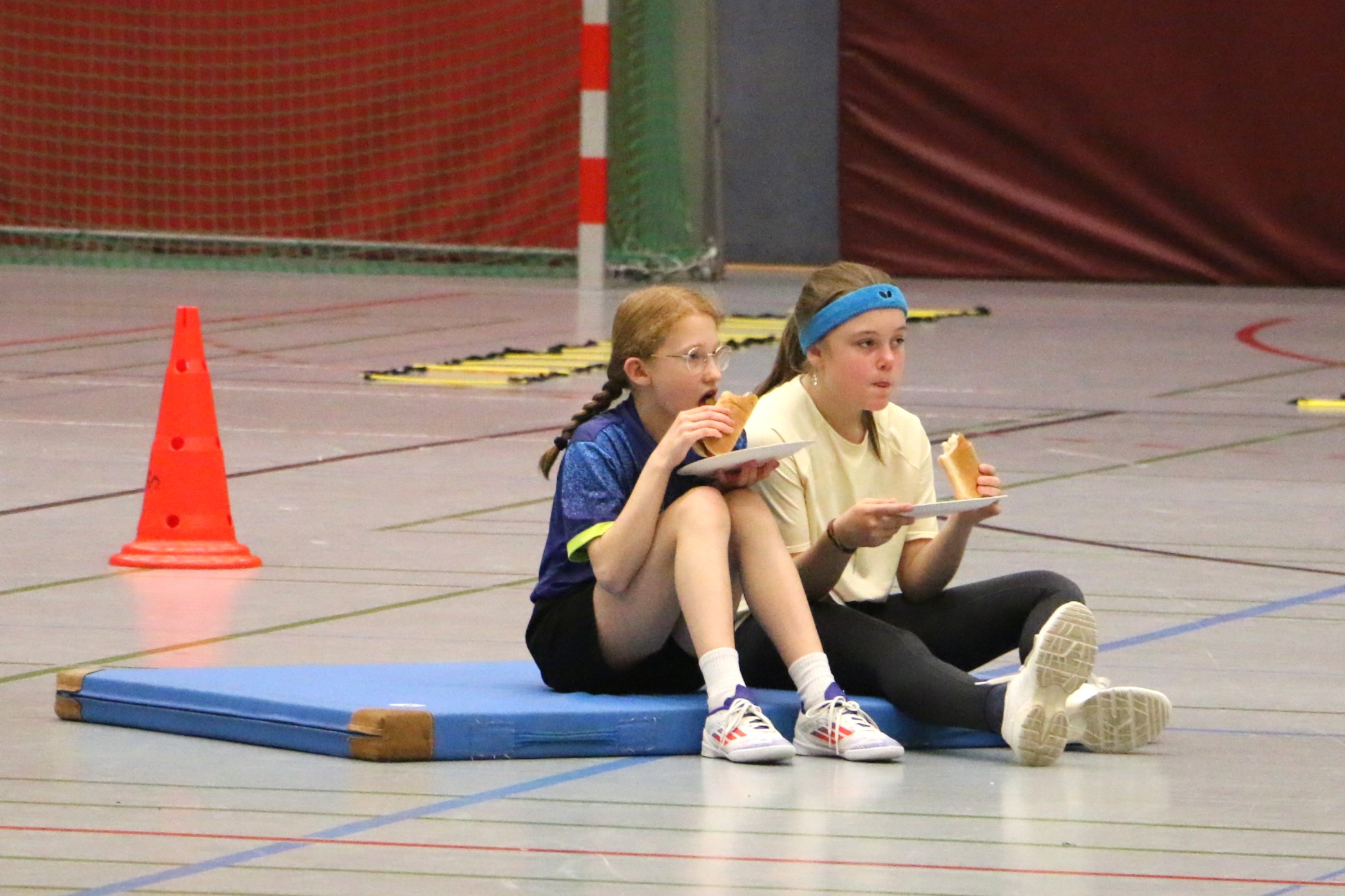 Nach dieser intensiven Trainingseinheit war es Zeit für eine wohlverdiente Stärkung. Die Mädchen versammelten sich zum Mittagessen, wo Hot Dogs serviert wurden – ein echter Hit! Während des Essens wurden Geschichten ausgetauscht und neue Freundschaften geknüpft.