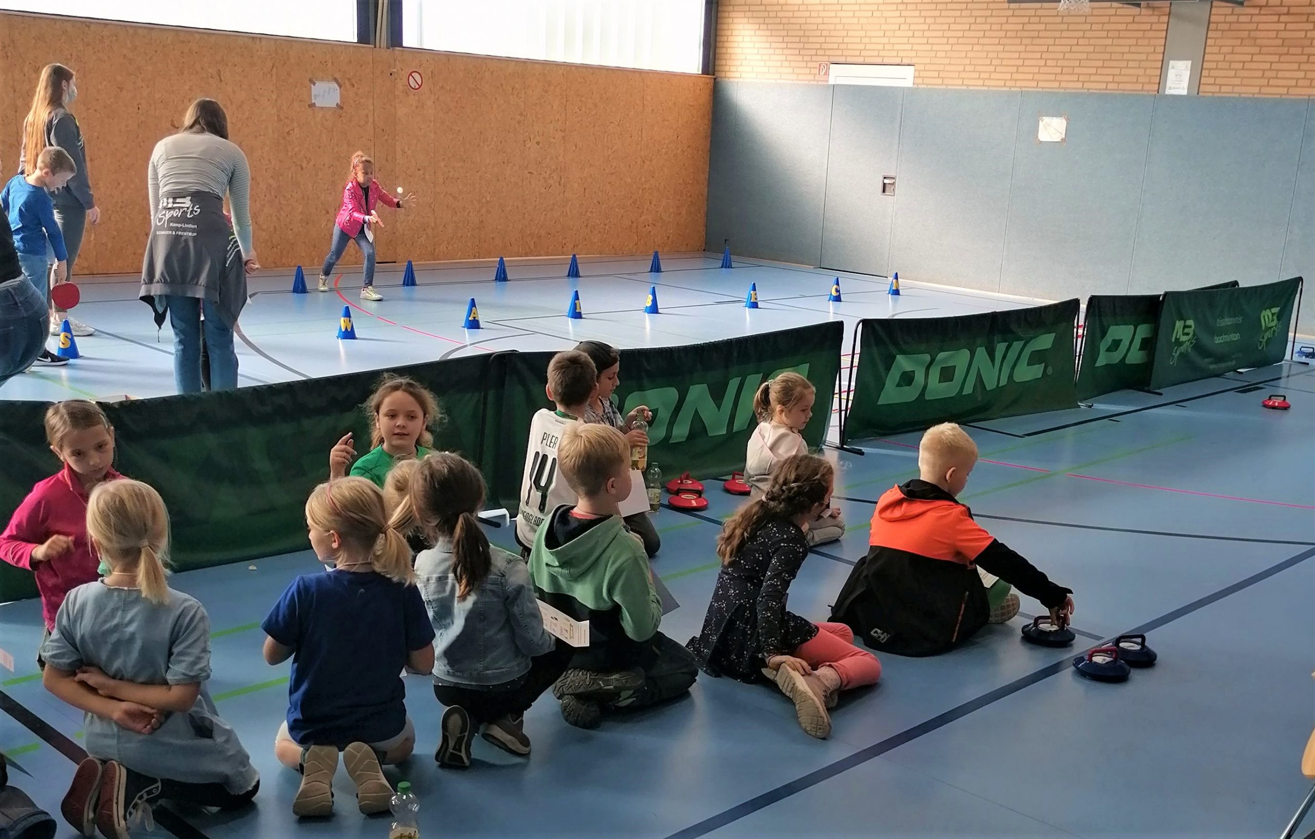 Für jedes Kind war etwas dabei – sei es TT-spezifisch (Jonglieren eines Balles auf dem Schläger durch einen Parcours, Platzieren von TT-Bällen mit der Hand, Spiel am TT-Roboter) oder anderweitig (Torwand-Werfen, Curling). Über 20 Vereinsmitglieder halfen mit, dass der Spaßfaktor keinesfalls zu kurz kam.